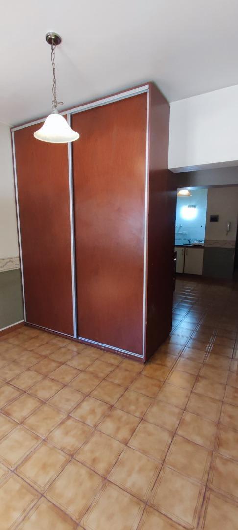 Квартира-студия площадью в Quilmes Centro на 1-м этаже, без лифта, вход по лестнице. Пространство разделено большим встроенным шкафом; установлены кухонный гарнитур под столешницей с конфорочной плитой на 2 зоны и ванная с душем. Угловое расположение, есть обеденный стол и стулья, кондиционер. Аренда включает оплату: аркив (arqui), коммунальные платежи здания (expensas) и услуги, а также страхование. Максимум 2 человека, без домашних животных; коммунальные услуги: электричество, газ, вода.