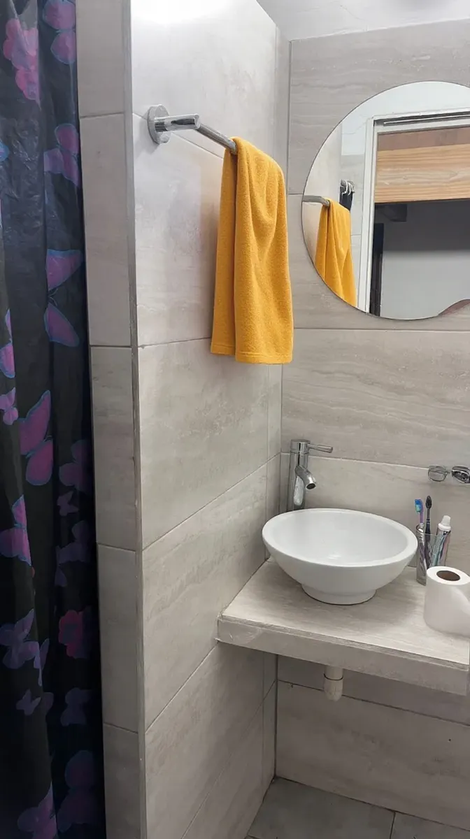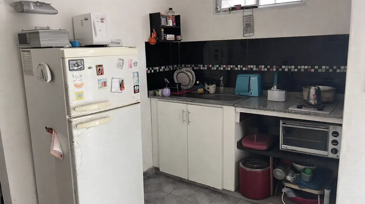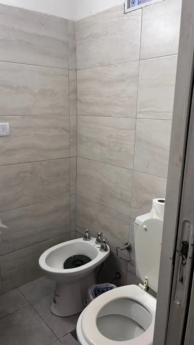 Квартира-студия площадью около 40 m² (общая и крытая) в Quilmes. Кухонная зона с нижними шкафами и столешницей, предусмотрено место для бытовой техники. Ванная комната с керамической отделкой, современная раковина и биде. Основное помещение с окном на улицу, предусмотрен антресольный уровень.