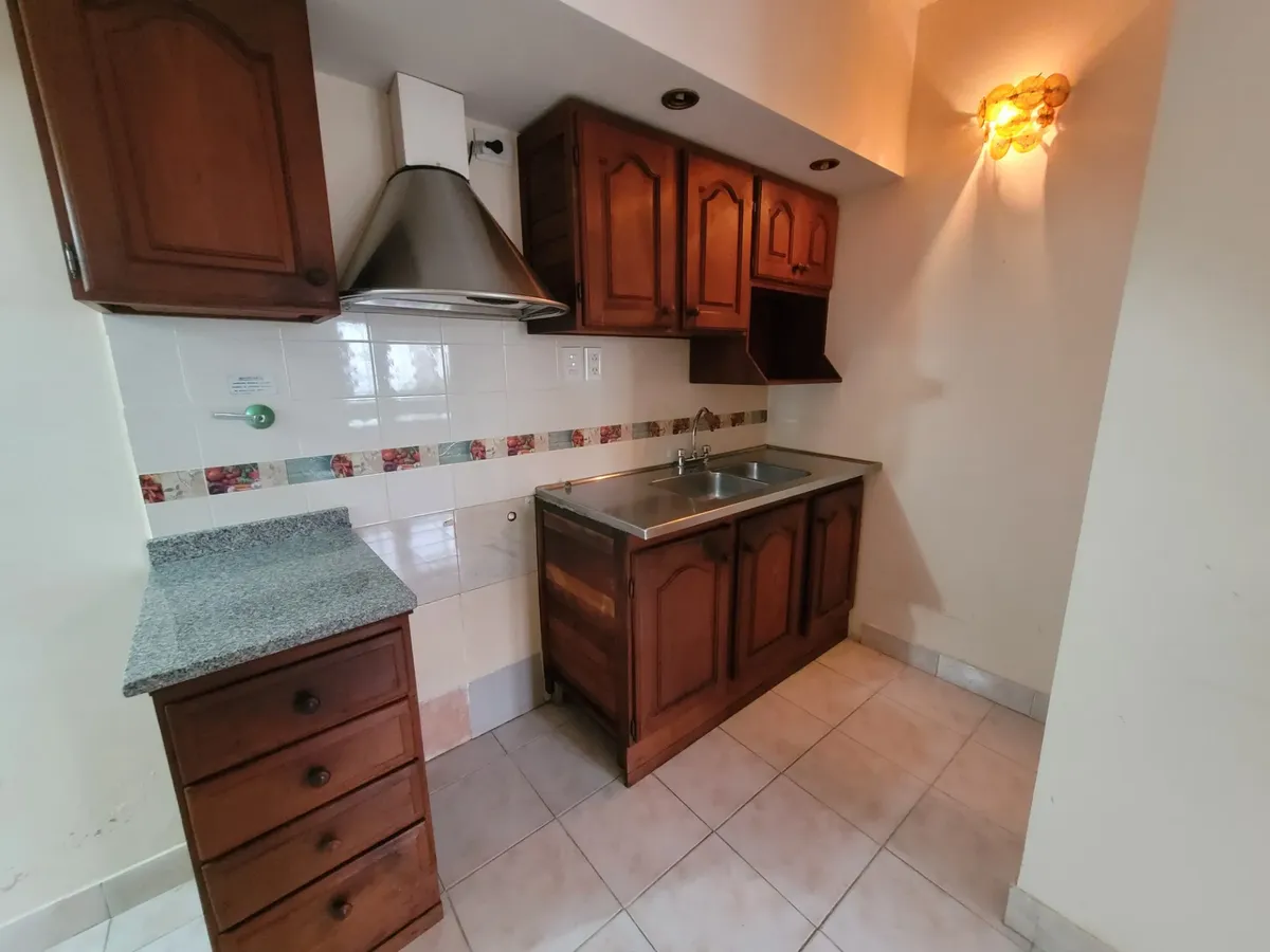 Квартира-студия с окнами на улицу. Внутри керамические полы, большое окно на фасад. Разделённая кухня с барной стойкой, нижними шкафами и навесными модулями из дерева, мраморной столешницей, есть зона для стирки. Полная ванная с керамической отделкой. Указаны условия аренды: $ 350.000 в месяц плюс коммунальные платежи, TSG и страхование от пожара. Договор на 2 года с квартальным пересмотром по ICL. Требуются гарантия собственника и документы о доходах либо страхование финансовых гарантий и докум