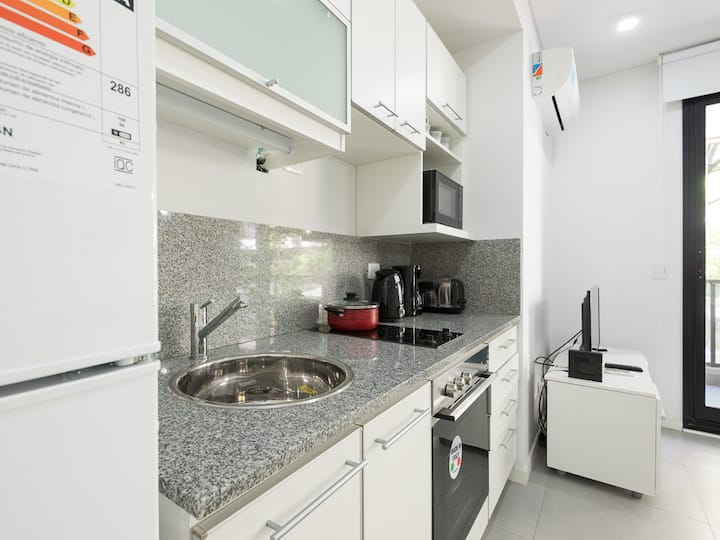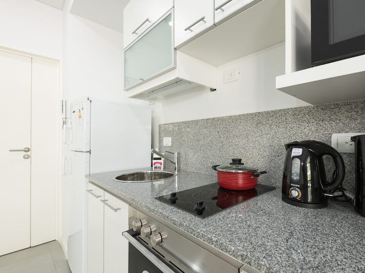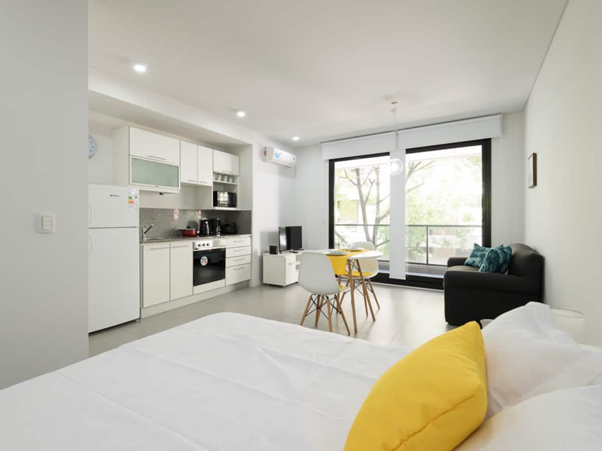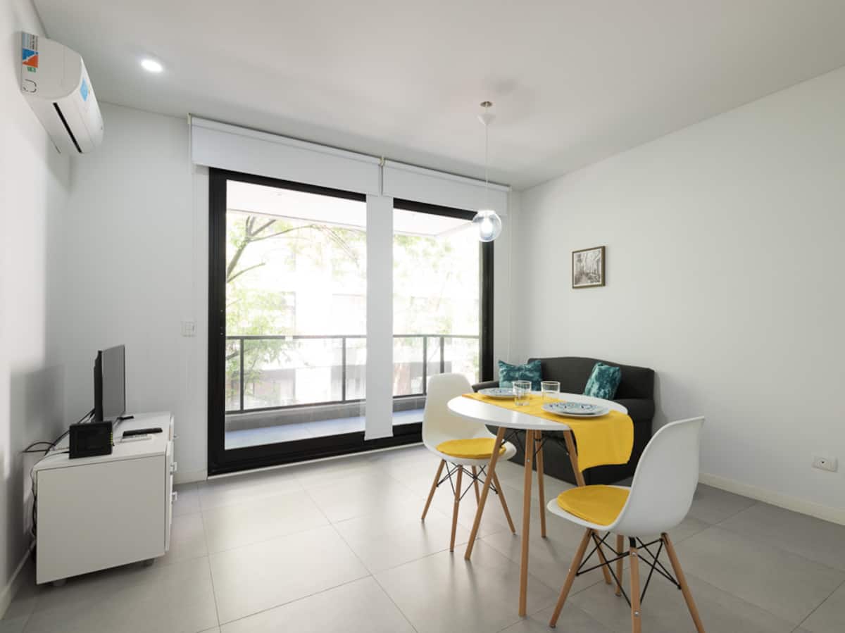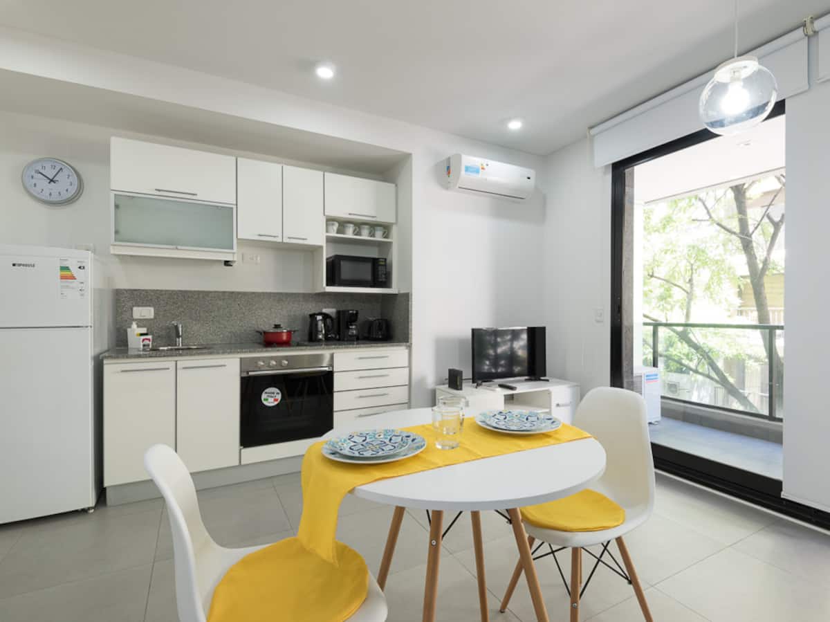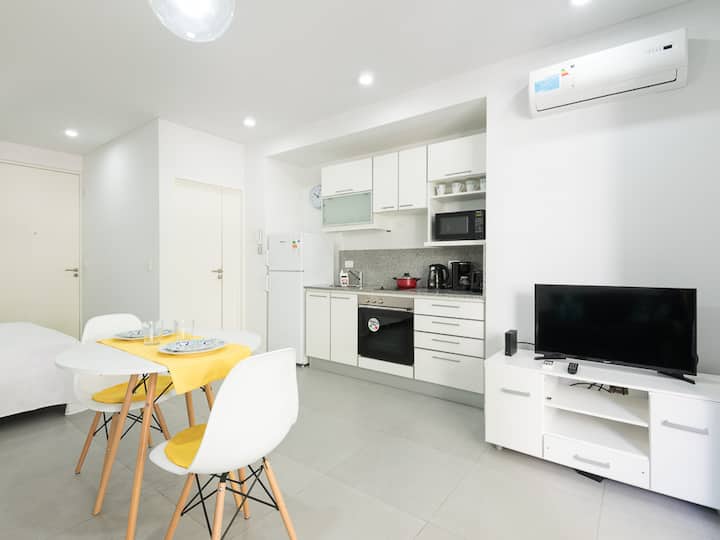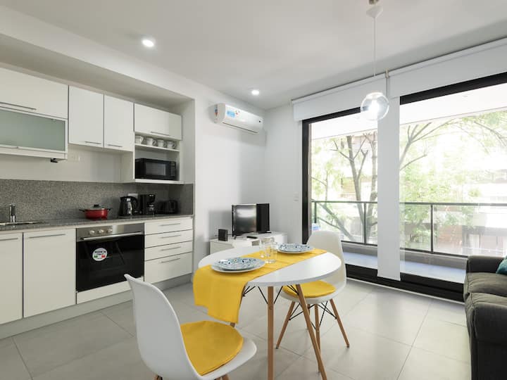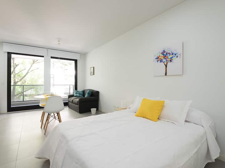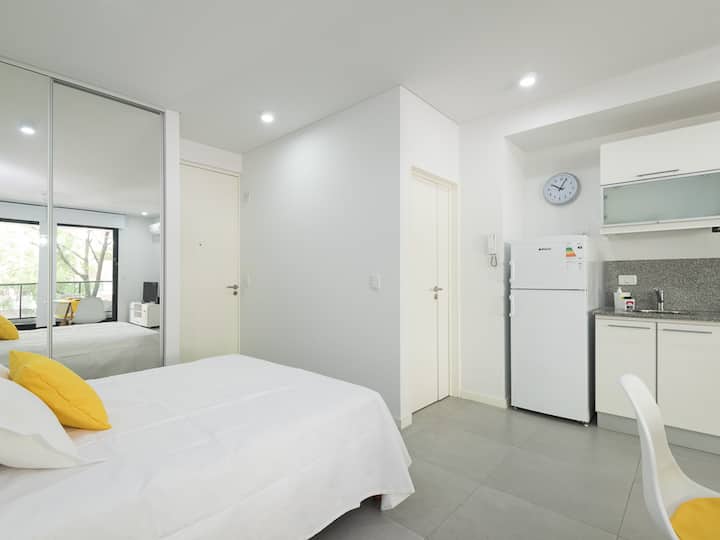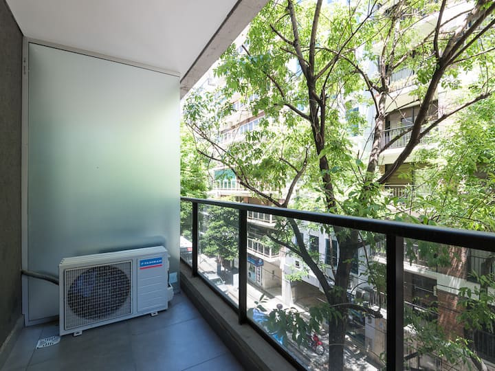 Квартира-студия в Recoleta, с балконом, меблирована и оборудована. В планировке предусмотрена двуспальная кровать. Сообщается, что квартира отличается хорошей освещённостью и находится в районе с удобным доступом к транспорту в Buenos Aires.