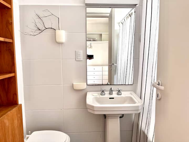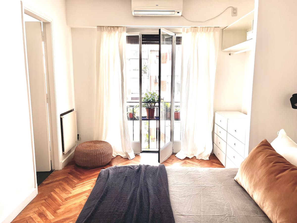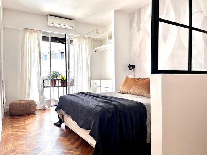 Квартира-студия в Recoleta. Планировка рассчитана на размещение с использованием раскладного кресла-кровати, которое собирают по запросу. Сообщается о недавнем ремонте. Указано, что рядом находятся парки и музеи, Национальная библиотека и Av. del Libertador, а также удобный доступ к линиям метро и автобусам.