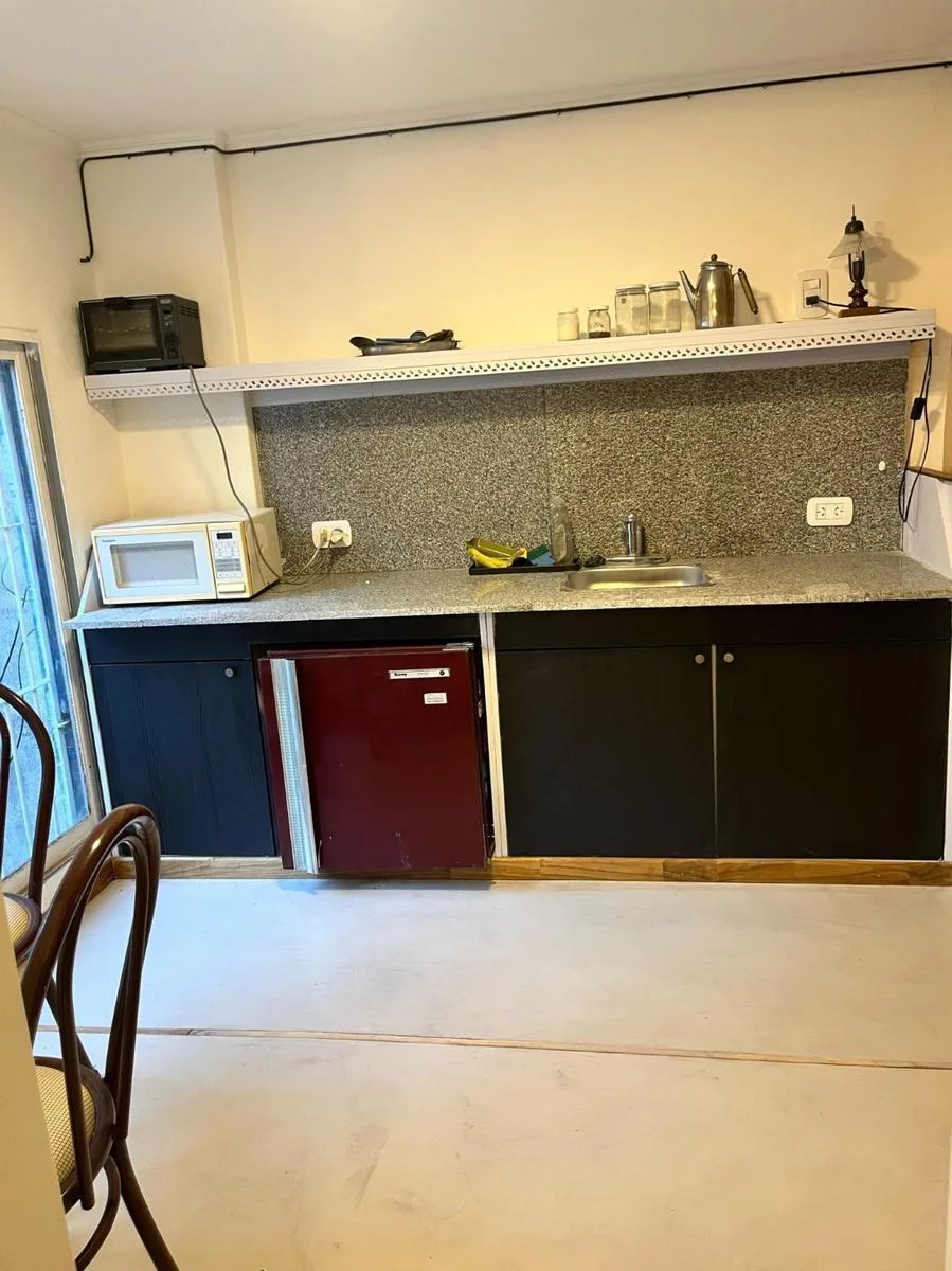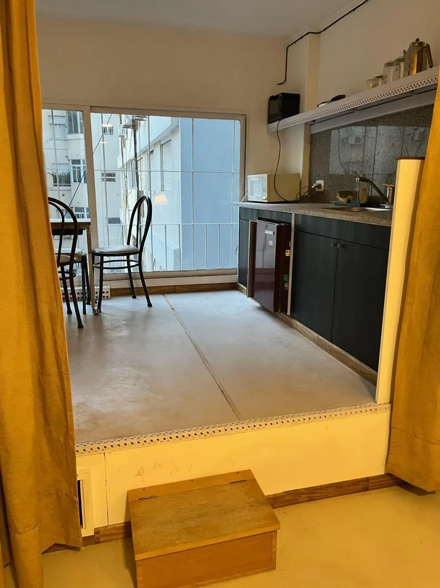Квартира-студия площадью около 45 m² расположена в Recoleta на Av. Córdoba между Paraná и Montevideo. Этаж высокий, подъезд обслуживается лифтом, окна во двор, ориентация на север. В помещении есть кухонная зона типа kitchenette с мебелью верхнего и нижнего яруса, встроенные места хранения и отдельная полноценная ванная комната. Коммунальные платежи здания на 17/11/2025 составляют около $150.000.