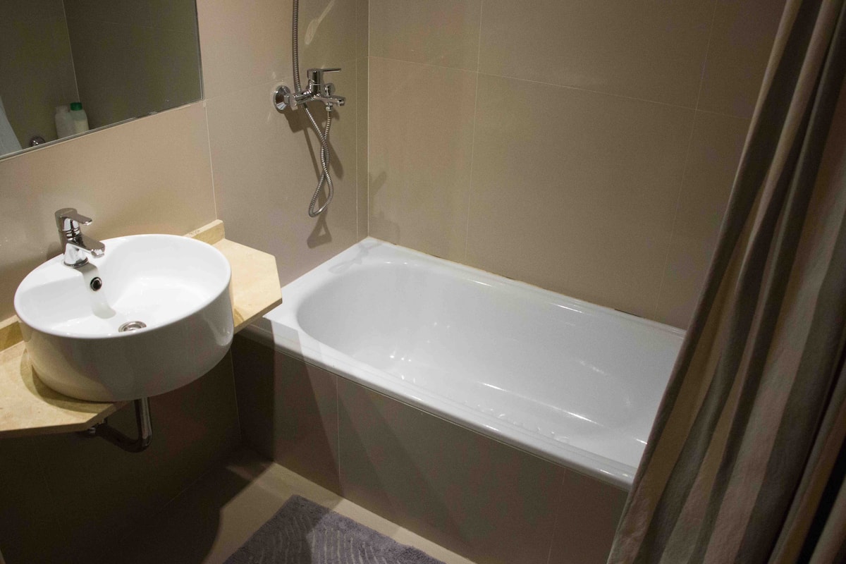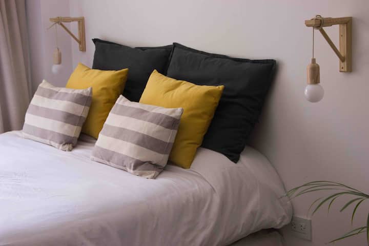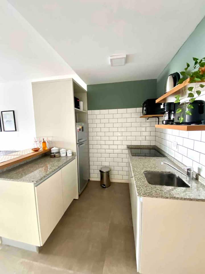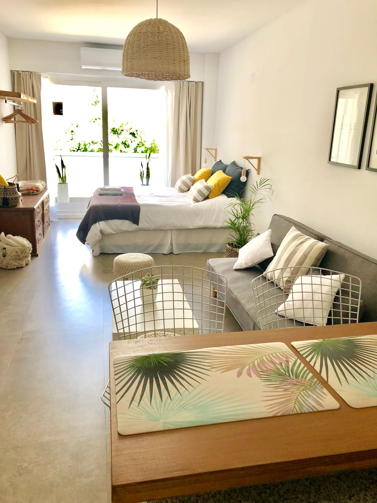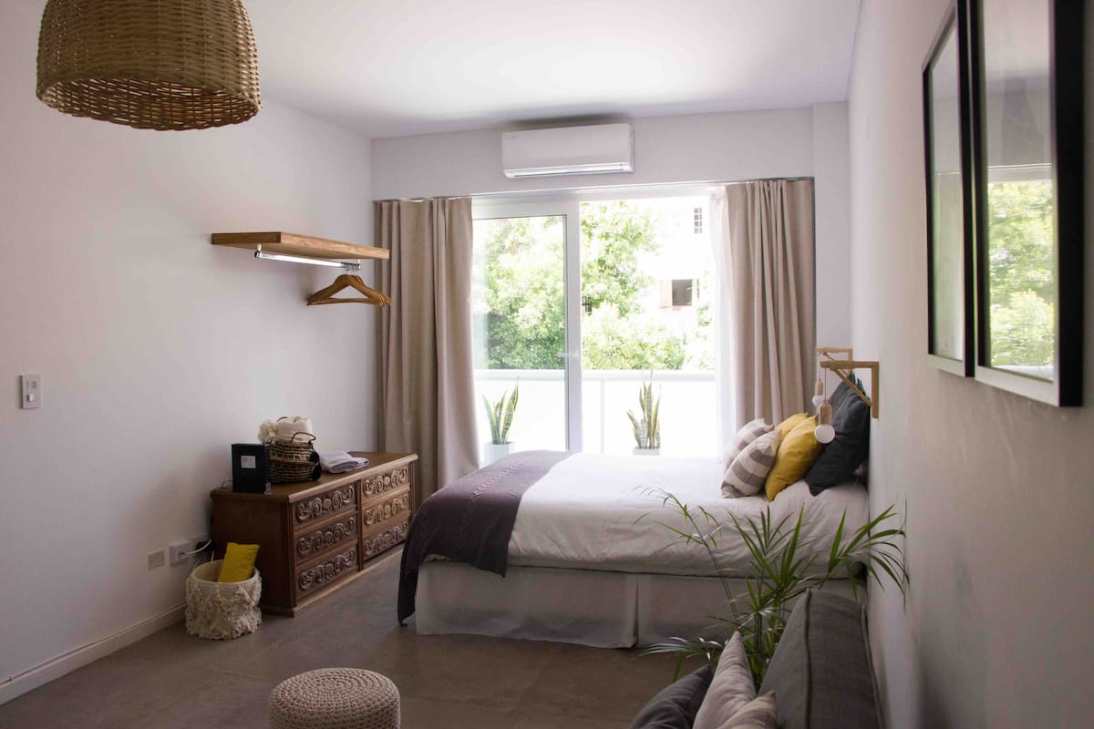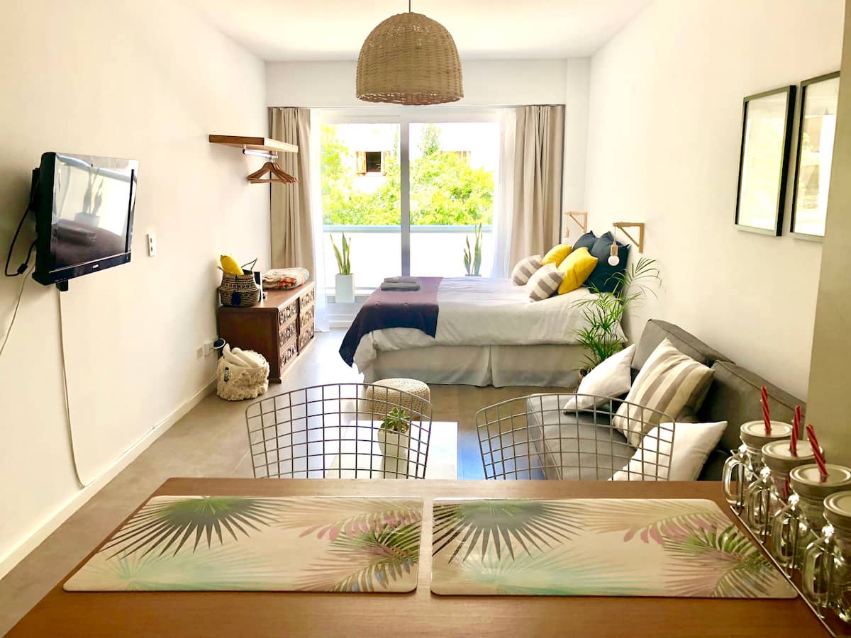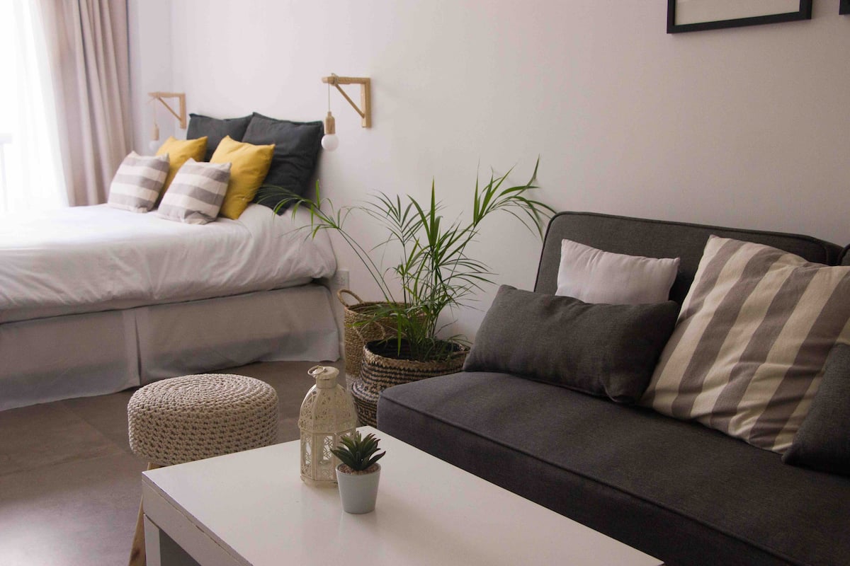 Квартира-студия в Recoleta с балконом, с мебелью и оборудованием. В студии установлен диван-кровать и кровать размера queen, отдельная зона кухни с барной стойкой и полноценная ванная комната. В общих помещениях есть бассейн; на террасе нет шезлонгов, солнцезащитных лежаков и зонта, предоставляются 2 отдельных шезлонга. В описании указаны бесплатный Wi-Fi и телевизор, а также центральное водоснабжение и электрическое отопление; адресные ориентиры: один квартал от Av. Santa Fe и Av. Pueyrredon, с