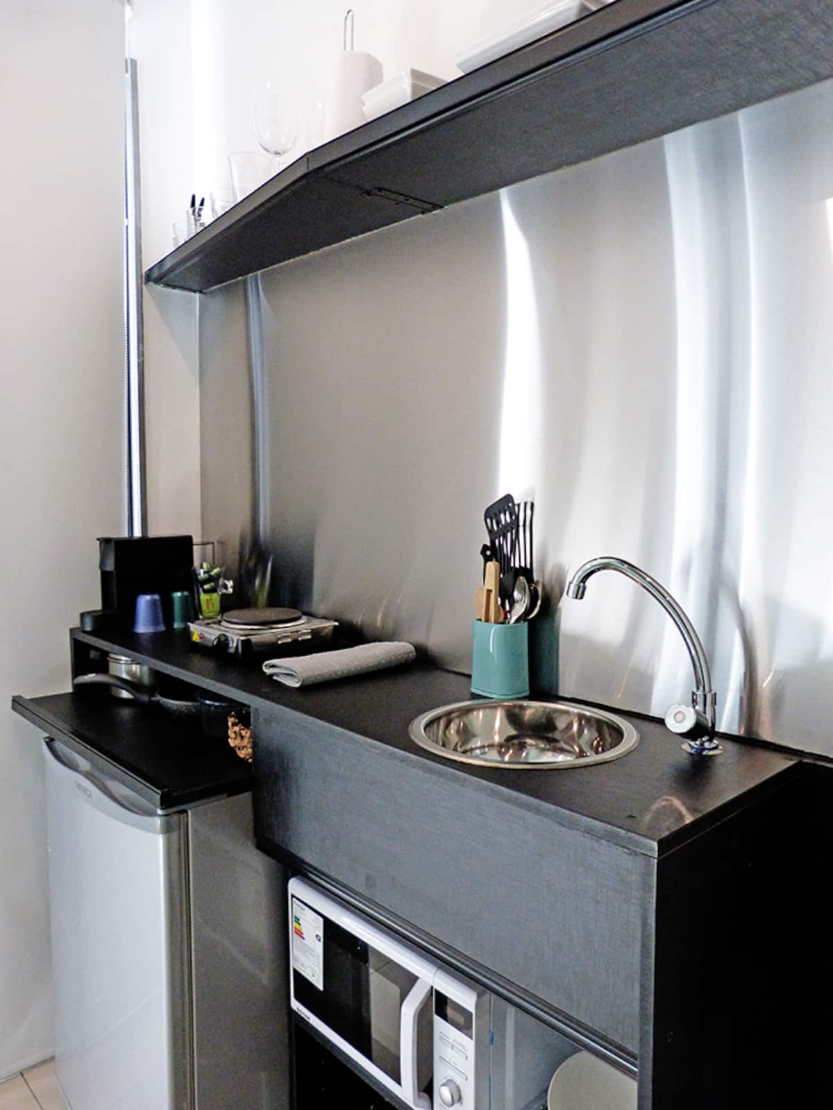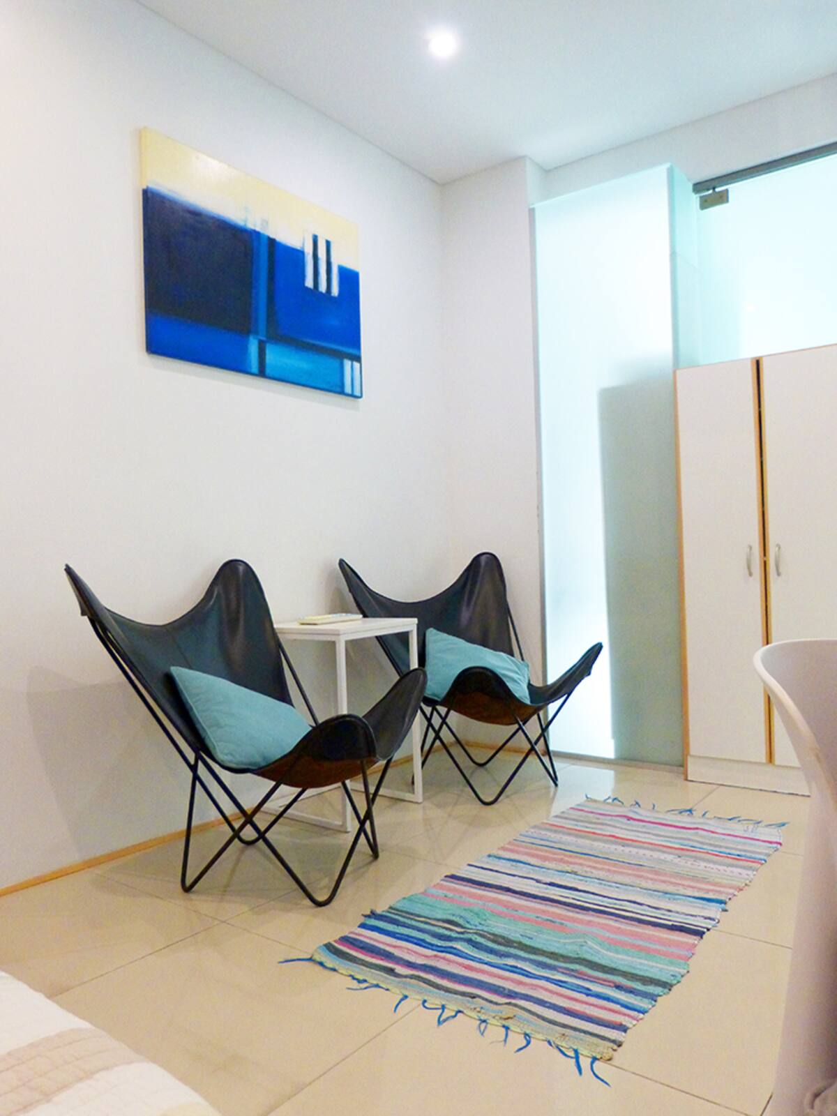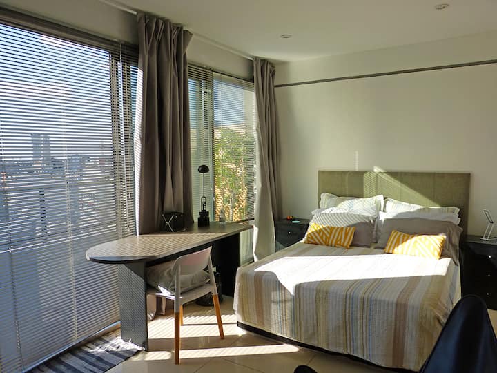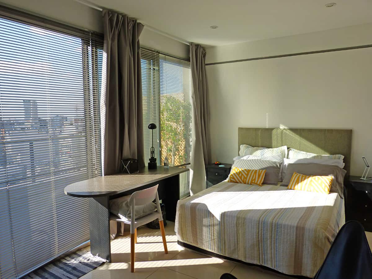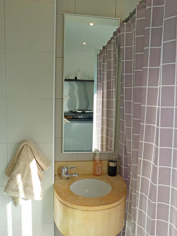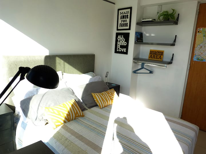 Квартира-студия в Recoleta с кроватью double bed, кондиционером и отоплением. Встроены центральное водоснабжение, Wi‑Fi и телевизор 60", кухня с anafe, кофемашиной Nespresso, морозильной камерой и тостером, ванная с душем. На террасе предусмотрен балкон с видом на город. В здании работают круглосуточная охрана, бассейн, сады, сауна и прачечная.