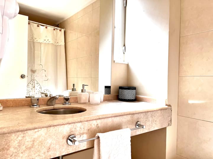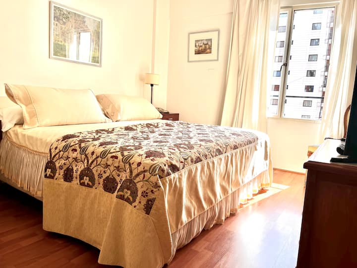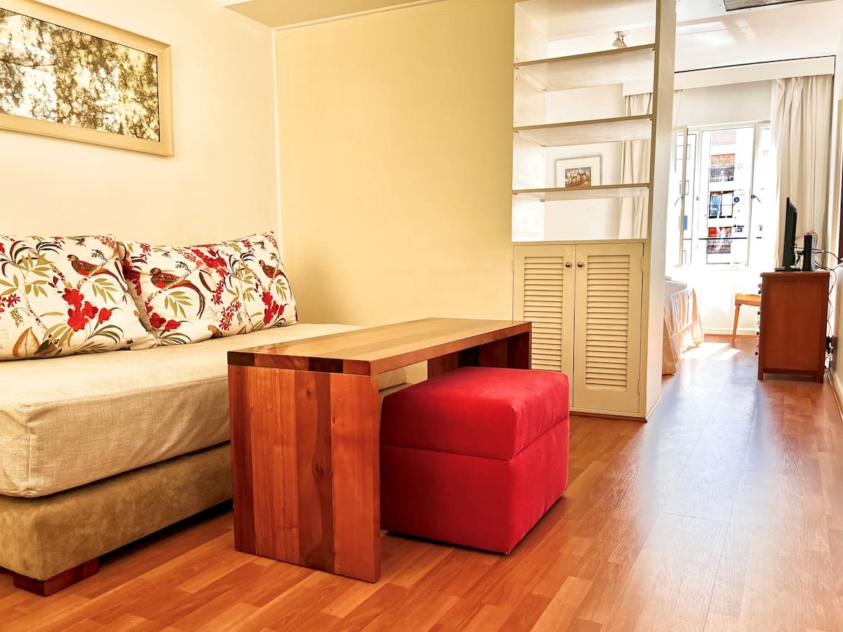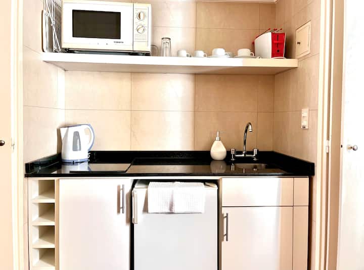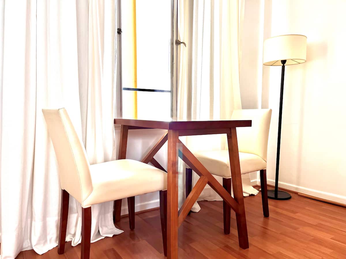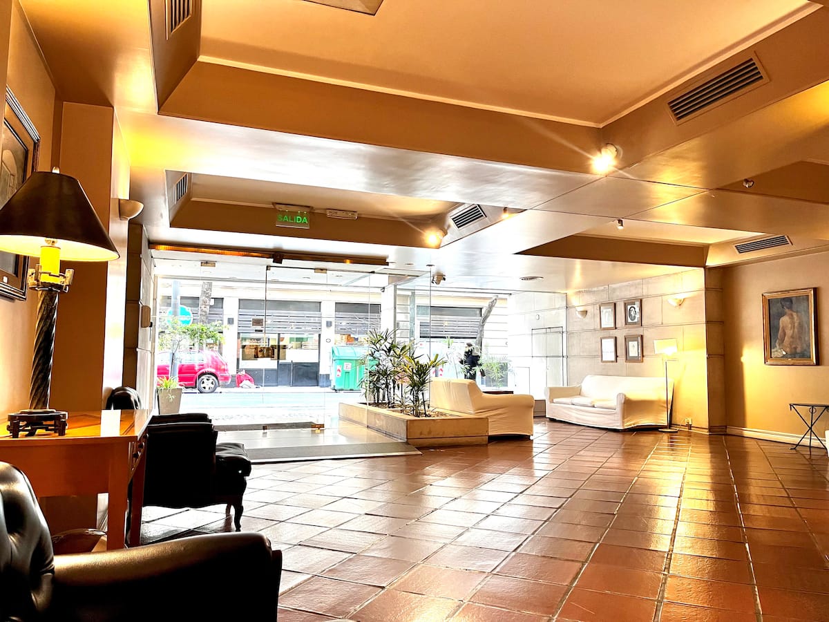 Квартира-студия в Retiro. Рассчитана на 3 человека: двуспальная кровать и односпальная в гостиной. В здании есть круглосуточная охрана, тренажёрный зал, зона для работы, прачечная с стиральной и сушильной машинами, а также внутренний дворик со столами. Рядом с Chancellery, Plaza San Martín и улицей Florida.