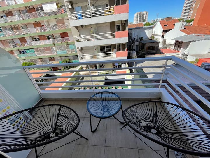 Квартира-студия в Saavedra, Buenos Aires, на Av. Balbín. Окна выходят напротив, есть балкон. В квартире предусмотрены WiFi и кабельное телевидение, стиральная машина, кухонный инвентарь и бытовая техника. Рядом станция Mitre Saavedra (следует до Retiro), 15 кварталов до Subte Línea D, маршруты автобусов 75, 67, 71, 29; 10 кварталов до General Paz и Panamericana, рядом Dot shopping; 2 квартала до Crisólogo Larralde и 4 квартала до Saavedra Park.