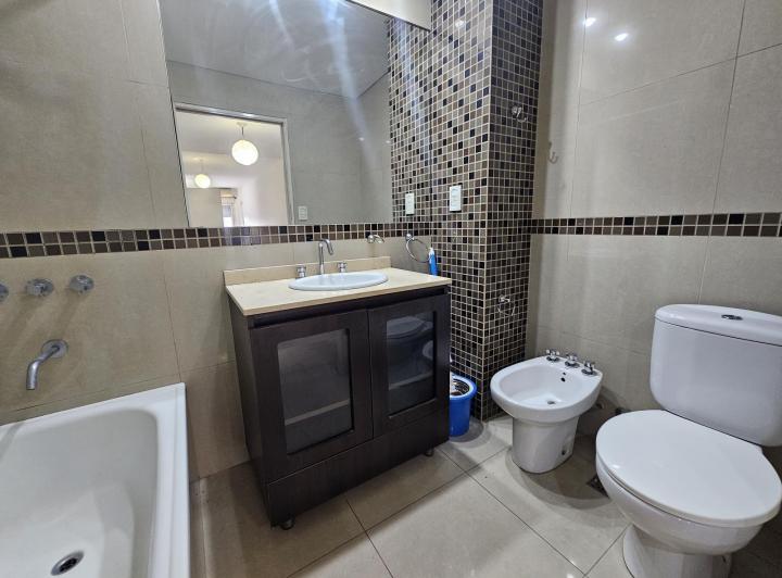 Квартира-студия с возможностью зонирования: 38,43 m² общих, 35,55 m² крытых, 2,88 m² полукрытых, 2-й этаж, окна во двор, с балконом. В помещении полы с ламинированным покрытием, кондиционер, роллеты. Кухня интегрирована, с природным газом, мебелью навесного и нижнего яруса и водонагревателем; ванная комната полностью оборудована. В здании 6 этажей (6 квартир на этаже), есть laundry, общая гостиная для жильцов (SUM) и зона гриля на последнем этаже; консьерж с проживанием. Коммунальные платежи зда