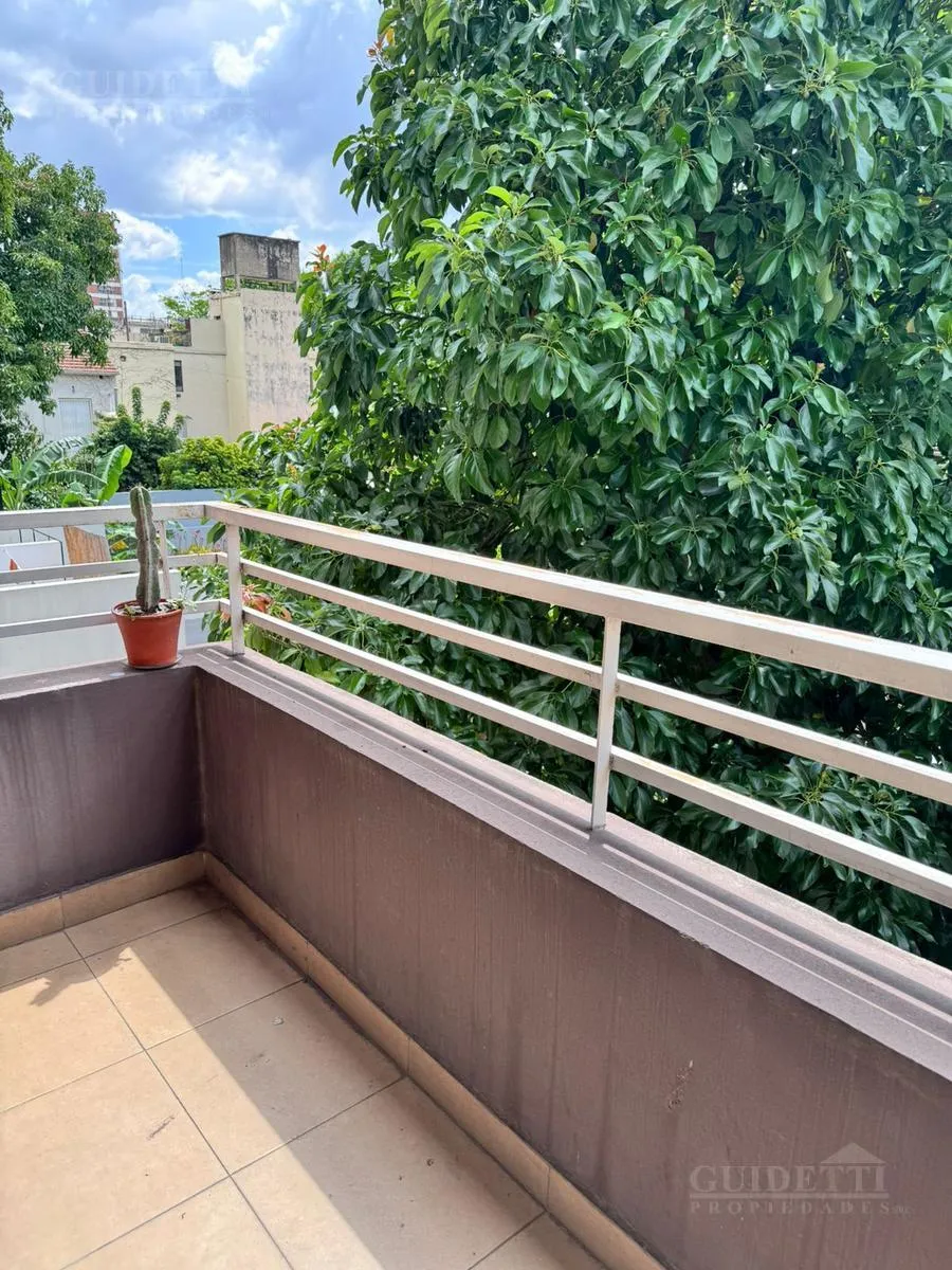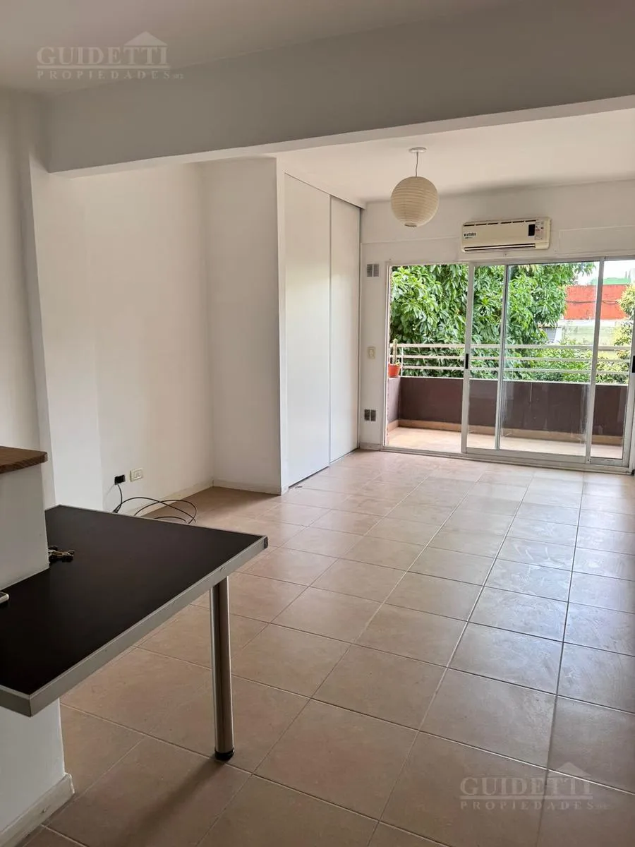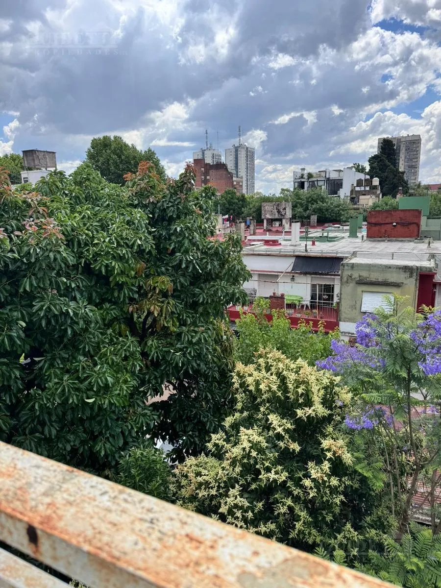 Квартира-студия площадью не указана, 2-й этаж, окна во внутренний двор квартала. Квартира с выходом на балкон, встроенной кухней с подключением для стиральной машины, полноценной ванной комнатой и большим встроенным шкафом. В объявлении указано, что коммунальные платежи здания включают AYSA и (закреплённое) парковочное место, допускаются домашние животные. Договор на 2 года, индексация раз в квартал по IPC; условия оплаты: 1 месяц вперёд и 1 месяц депозит в USD. Транспорт: автобусные маршруты 29