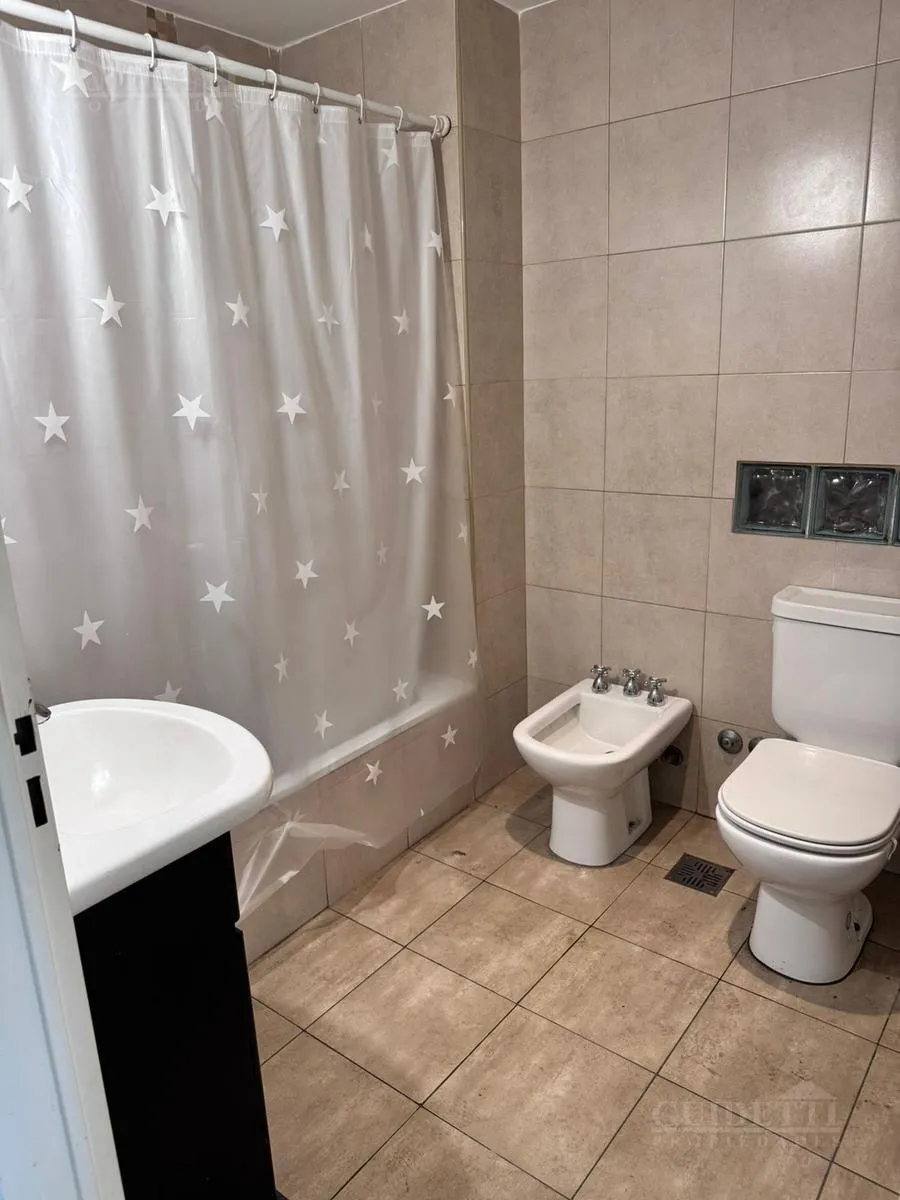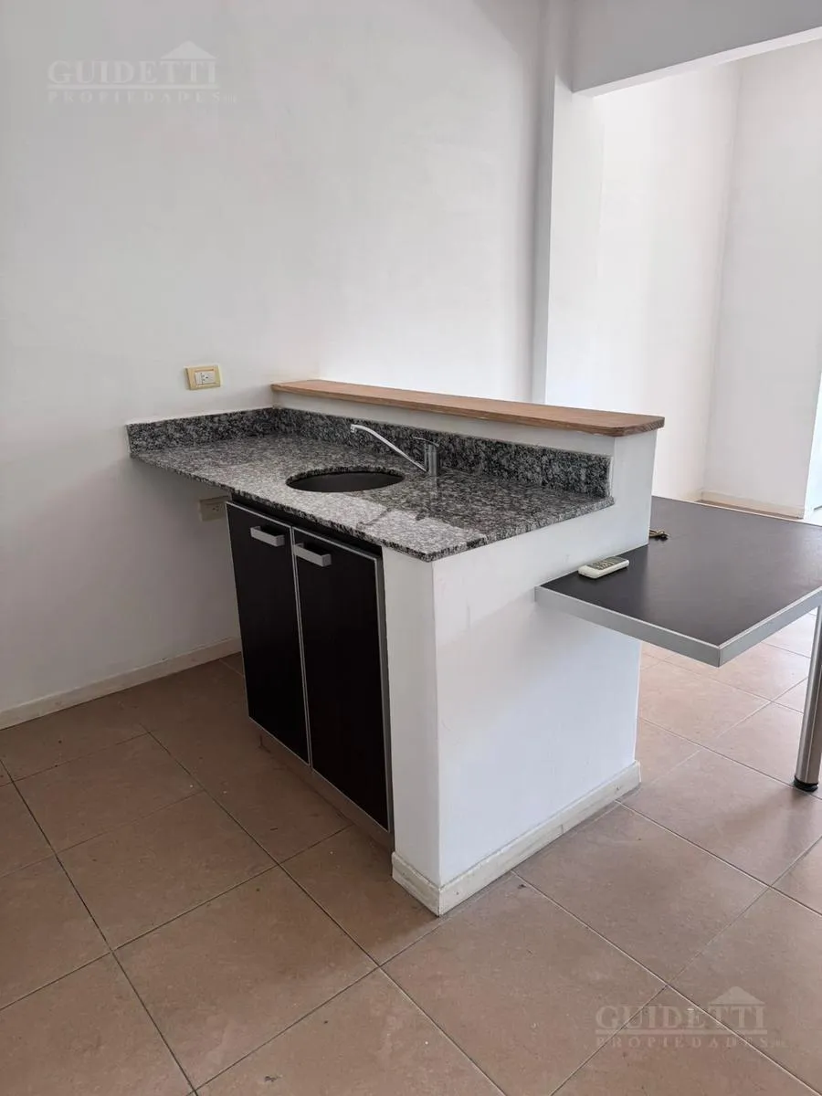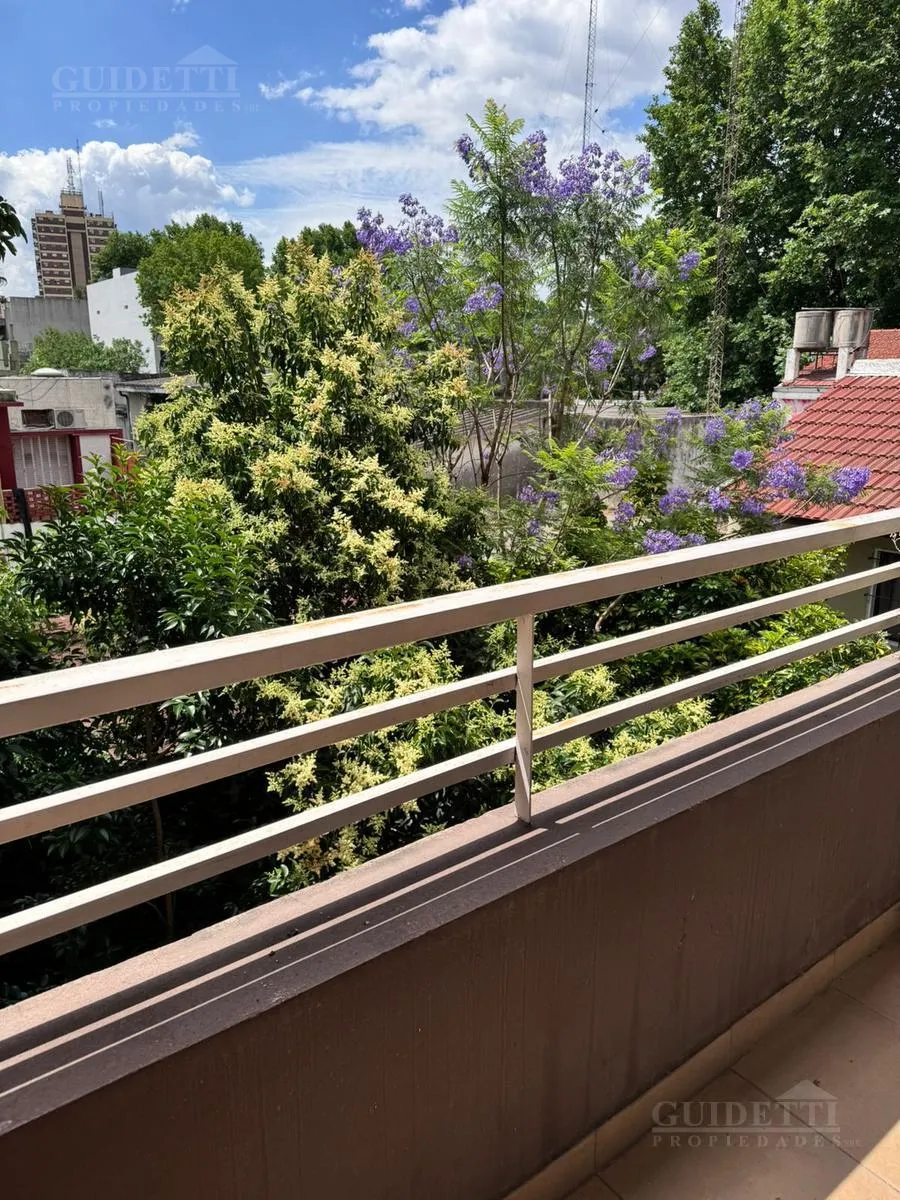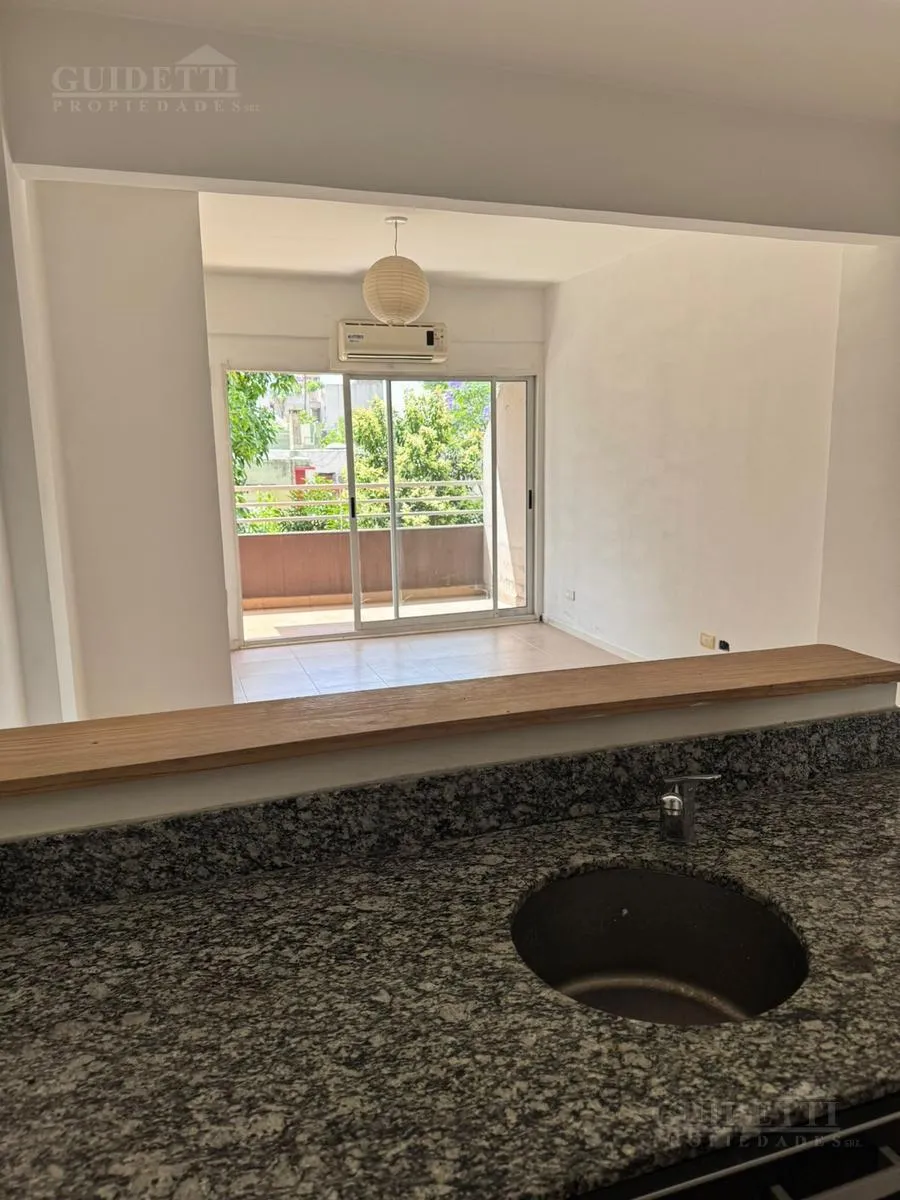 Квартира-студия площадью не указана, 2-й этаж, окна во внутренний двор квартала. Квартира с выходом на балкон, встроенной кухней с подключением для стиральной машины, полноценной ванной комнатой и большим встроенным шкафом. В объявлении указано, что коммунальные платежи здания включают AYSA и (закреплённое) парковочное место, допускаются домашние животные. Договор на 2 года, индексация раз в квартал по IPC; условия оплаты: 1 месяц вперёд и 1 месяц депозит в USD. Транспорт: автобусные маршруты 29