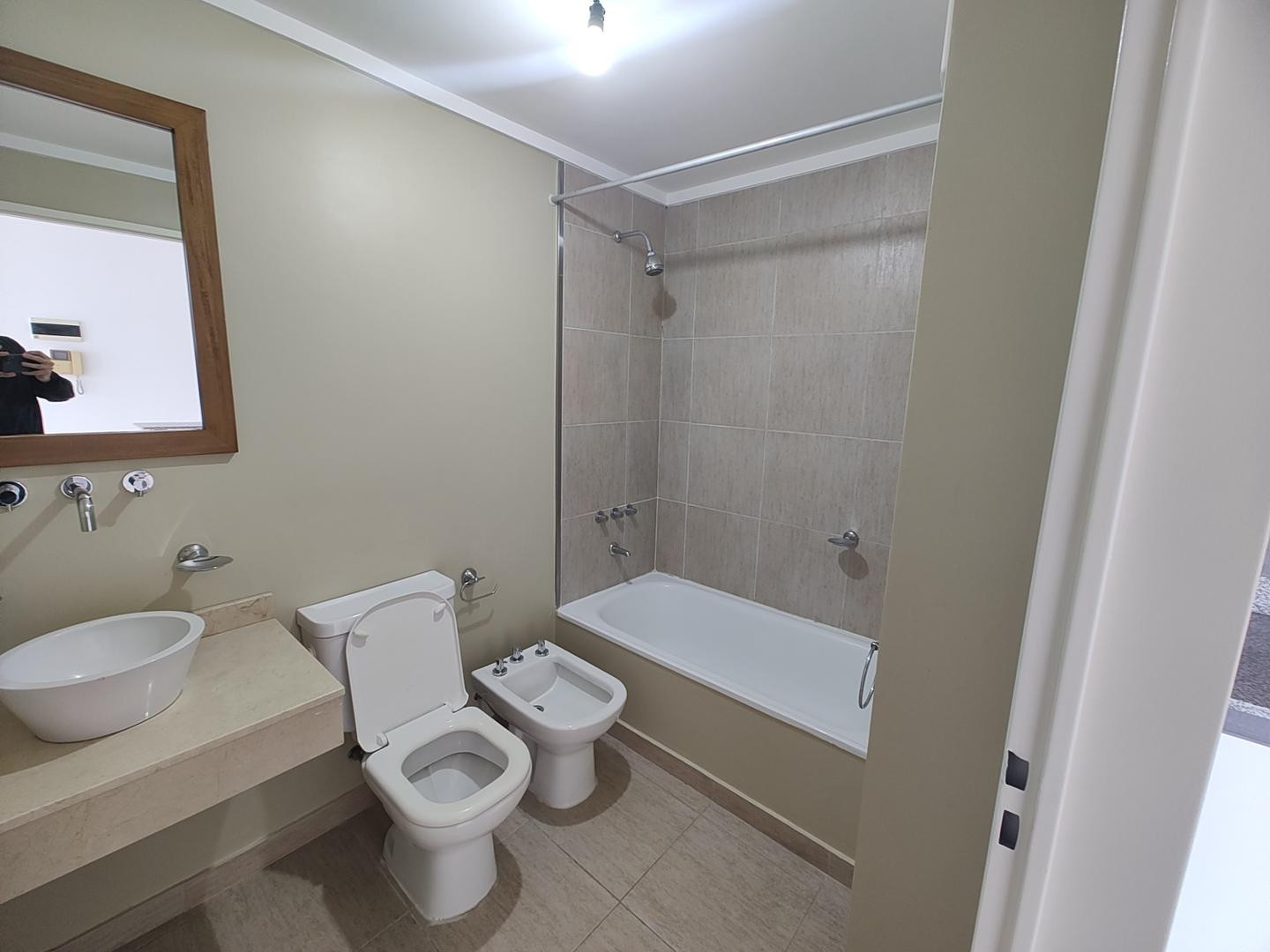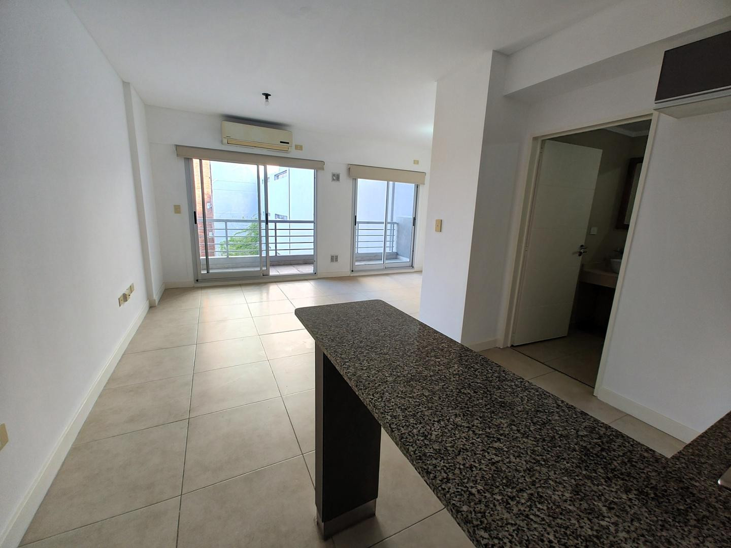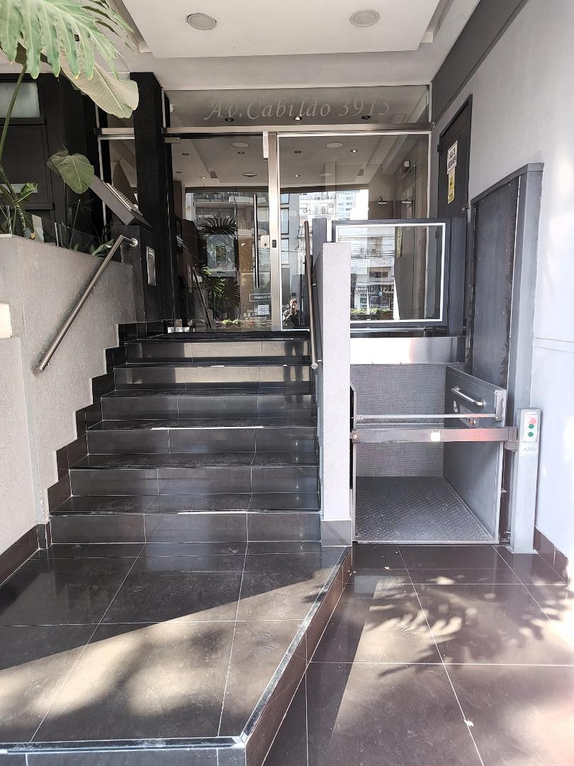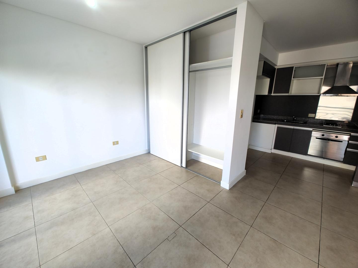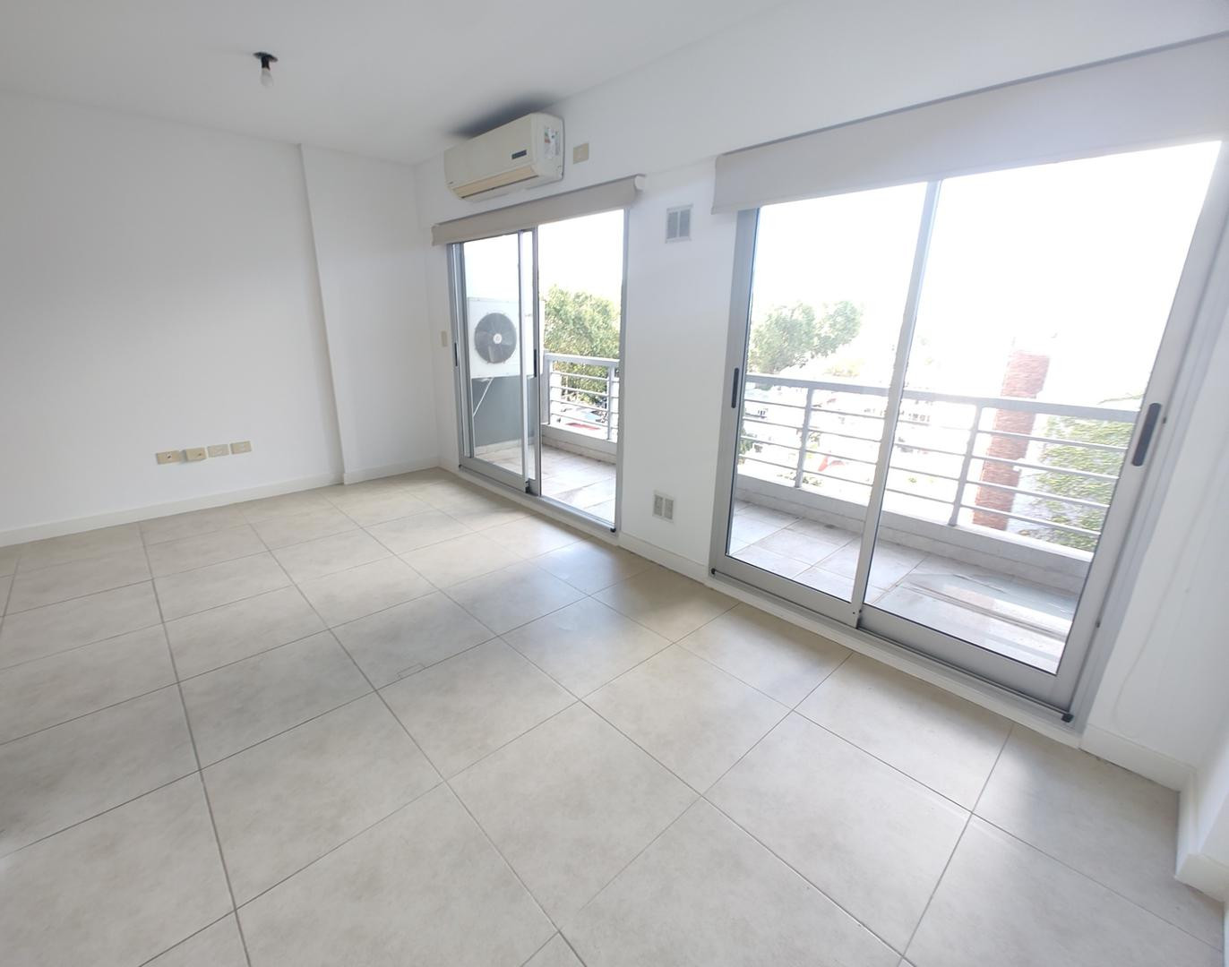 Квартира-студия в аренду в Saavedra. Площадь не указана; окна выходят во внутренний двор квартала. Есть закреплённое парковочное место и балкон на всю ширину помещения; предусмотрена возможность установки перегородки. Кухня с электрическими конфорками и духовкой, барная стойка. Полная ванная с ванной, кондиционер (холод/тепло). В объявлении указано: возможна аренда без парковочного места за $600.000. Максимальная занятость — 2 человека, допускается проживание с кошкой. Договор на 2 года с индекс