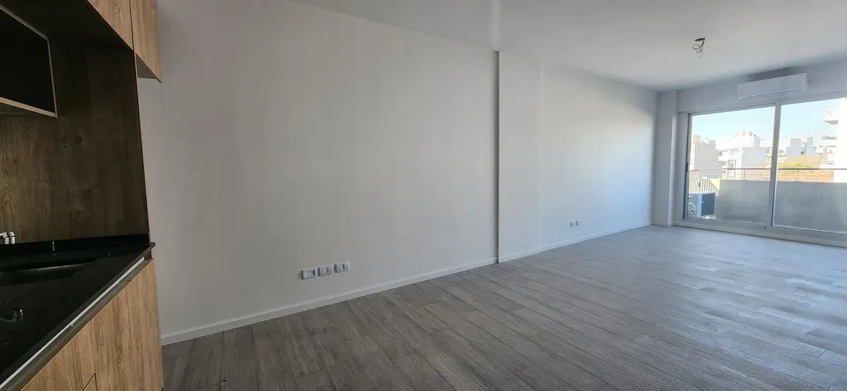Квартира-студия новая (никто не жил) в здании a estrenar, с возможностью зонирования. Кухня с мраморной столешницей, варочной панелью (индукция/витрокерамика) и электрической духовкой, с навесными шкафами и нижними модулями. Полная ванная с зеркалом; во всех помещениях установлен сплит cold-heat inverter. Окна со стеклопакетами (DVH) выходят на балкон. В здании есть зона гриля, прачечная, гидромассаж и солярий. Расположена в нескольких кварталах от Parque Saavedra, напротив бара Gorrión.