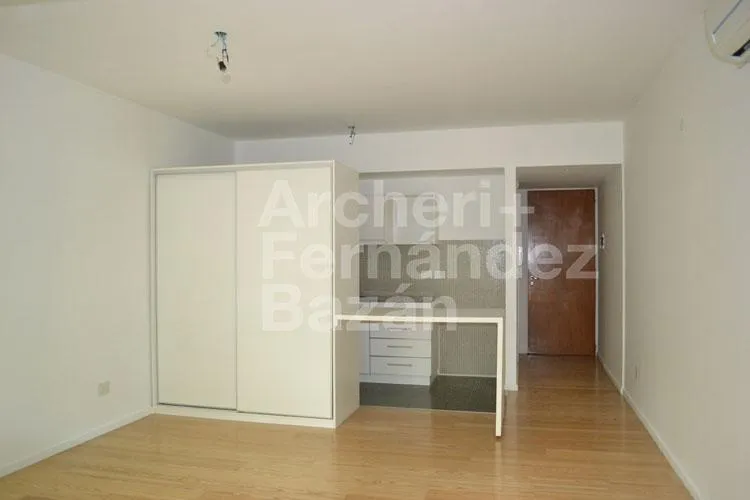 Квартира-студия в Saavedra, окна на улицу, с балконом. Кухня в едином пространстве оборудована варочной панелью, нижними шкафами, навесной полкой и барной стойкой для завтрака. Полноценная ванная с местом и подключением для стиральной машины, установлен сплит-кондиционер (холод/тепло) и есть большой встроенный шкаф. Коммунальные платежи здания включают воду. Указано расстояние: 50 метров до Blvd. García del Río, 1 квартал до Av. Cabildo и Metrobús, 7 кварталов до Estación Núñez (Tren Mitre).
