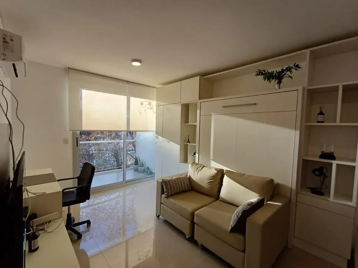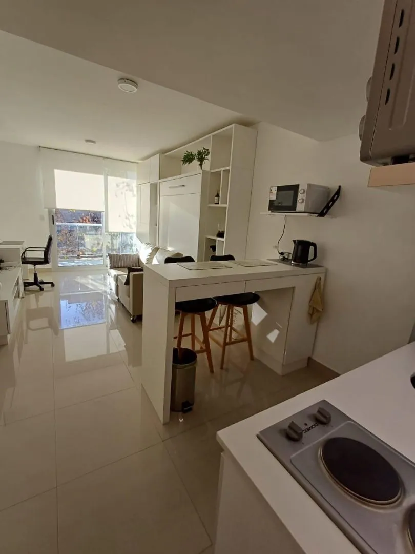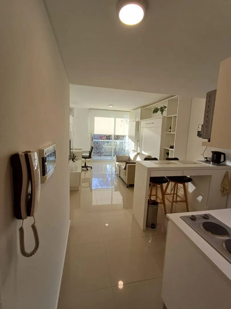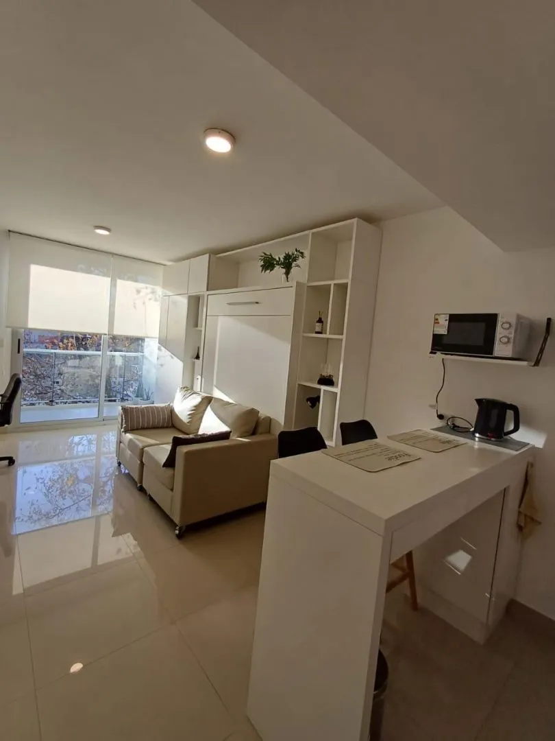 Квартира-студия в Saavedra, 2-й этаж, окна на улицу. Жилая зона с выходом на балкон, интегрированная кухня, совмещённый санузел. В квартире с мебелью и техникой: холодильник, стиральная машина; на кухне микроволновая печь, электрическая духовка, кофеварка и электрочайник. Есть доступная терраса, зона гриля и общая гостиная для жильцов. Аренда: USD 650 плюс коммунальные платежи здания ($ 80.000) и налоги; интернет установлен. Без домашних животных; срок аренды от 12 месяцев, доступна с 1 июня.