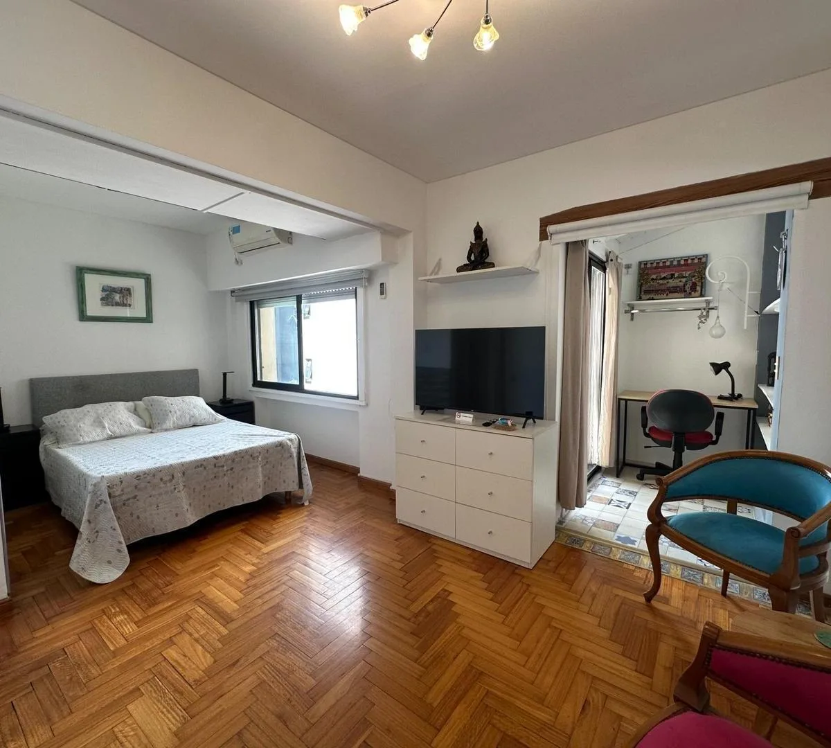 Квартира-студия с мебелью и полностью оборудованной кухней. Есть ванная и рабочее место для home office. Указано местоположение: Av. Independencia 2575, CABA, San Cristóbal. В описании указано подключение: Subte Líneas H и E; автобусы и основные магистрали Av. Independencia, Av. Entre Ríos и Av. San Juan.