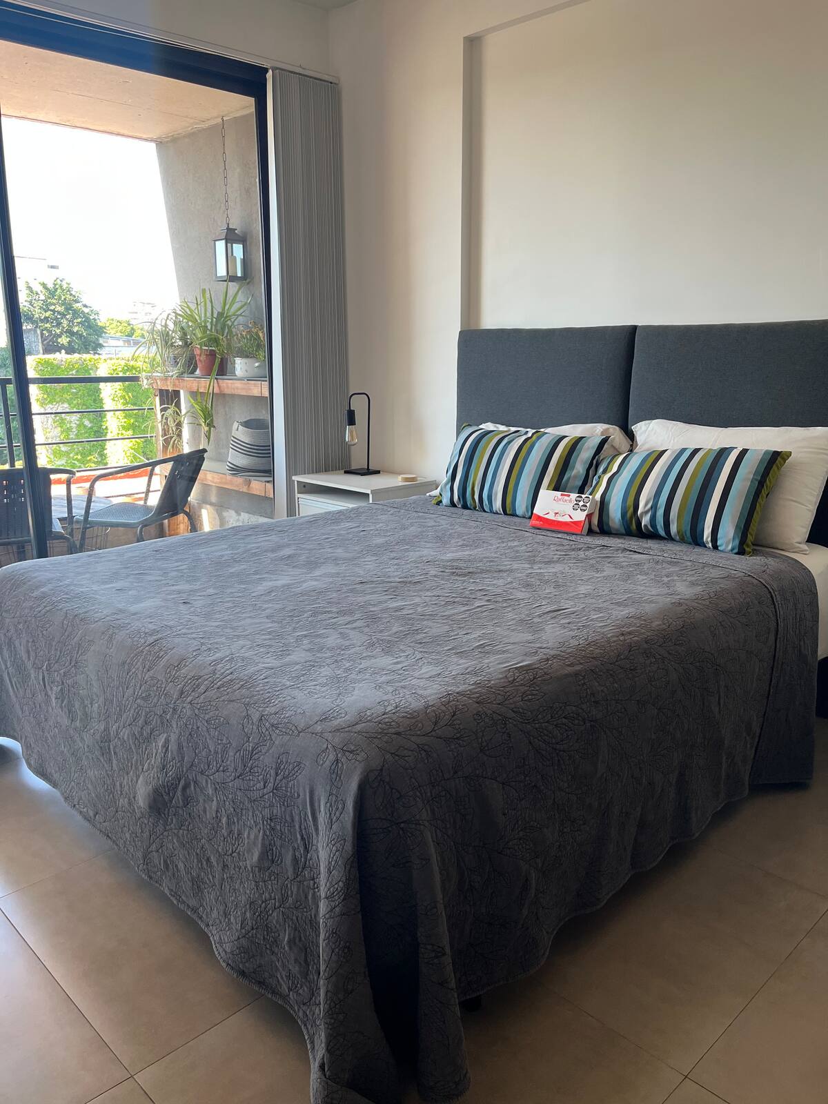 Квартира-студия площадью 36 m² в San Cristóbal, в доме примерно 6-летней давности. Окна обеспечивают дневной свет; планировка разделена на 3 зоны. Есть балкон, стиральная машина и сушилка установлены на балконе. В студии кондиционер (обогрев/охлаждение) и керамический обогреватель; кухня полностью оборудована, есть телевизор с диагональю 55 дюймов. Ванная комната с ванной, душем, биде и феном. Меблировка включает кровать с матрасами Premium 1,60×1,90, которую можно разделить на 2 спальных места