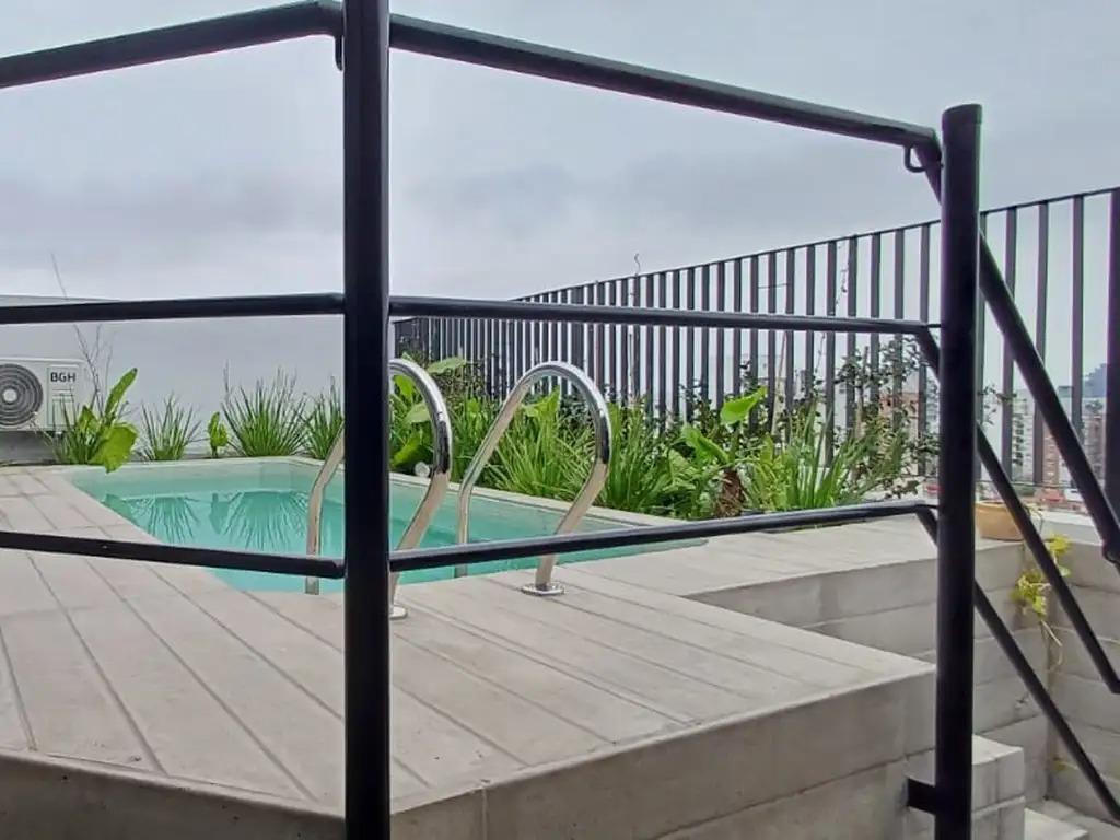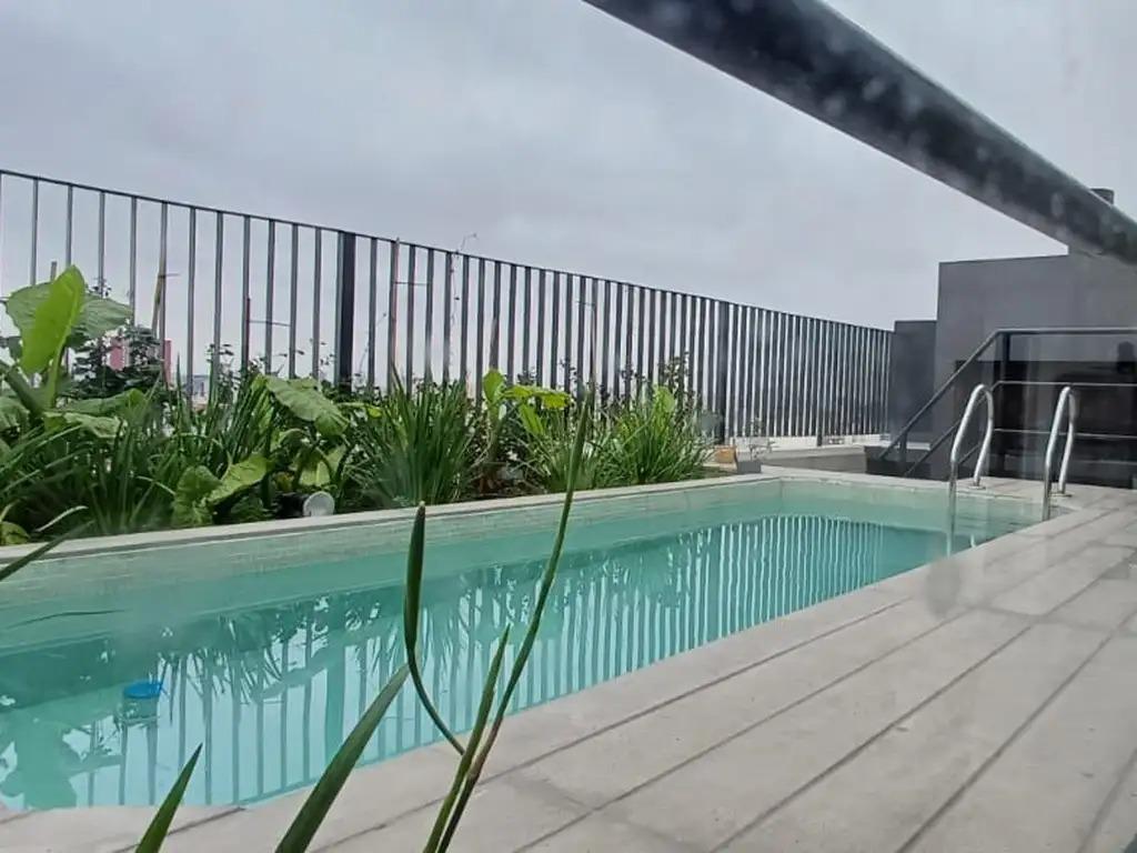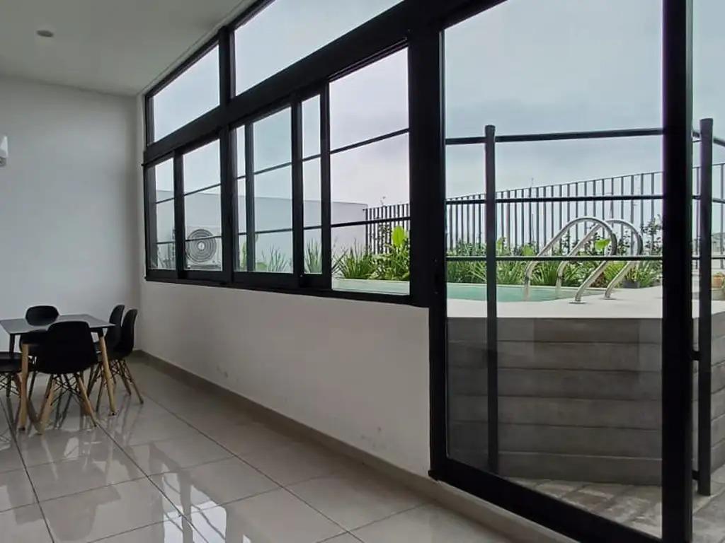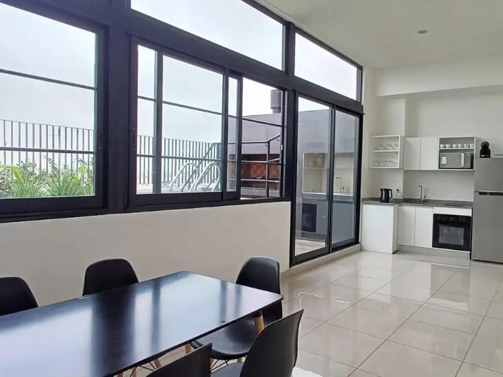 Квартира-студия площадью 22,50 m² с общей площадью 6 m² (открытая часть) на 7-м этаже, окна на Av. Jujuy и Humberto Primo. В комнате зона с интегрированной кухней 6,00x3,00 м с барной стойкой, верхними шкафами и нижними ящиками; предусмотрен распределительный холл 3,00x1,00 м. Ванная 1,50x2,50 м с тумбой, балкон 3,00x2,00 м, пол из керамогранита. В здании есть общая гостиная для жильцов с бассейном на крыше и зоной гриля, прачечная (Laundry) и помещение для велосипедов, установлен цифровой замок