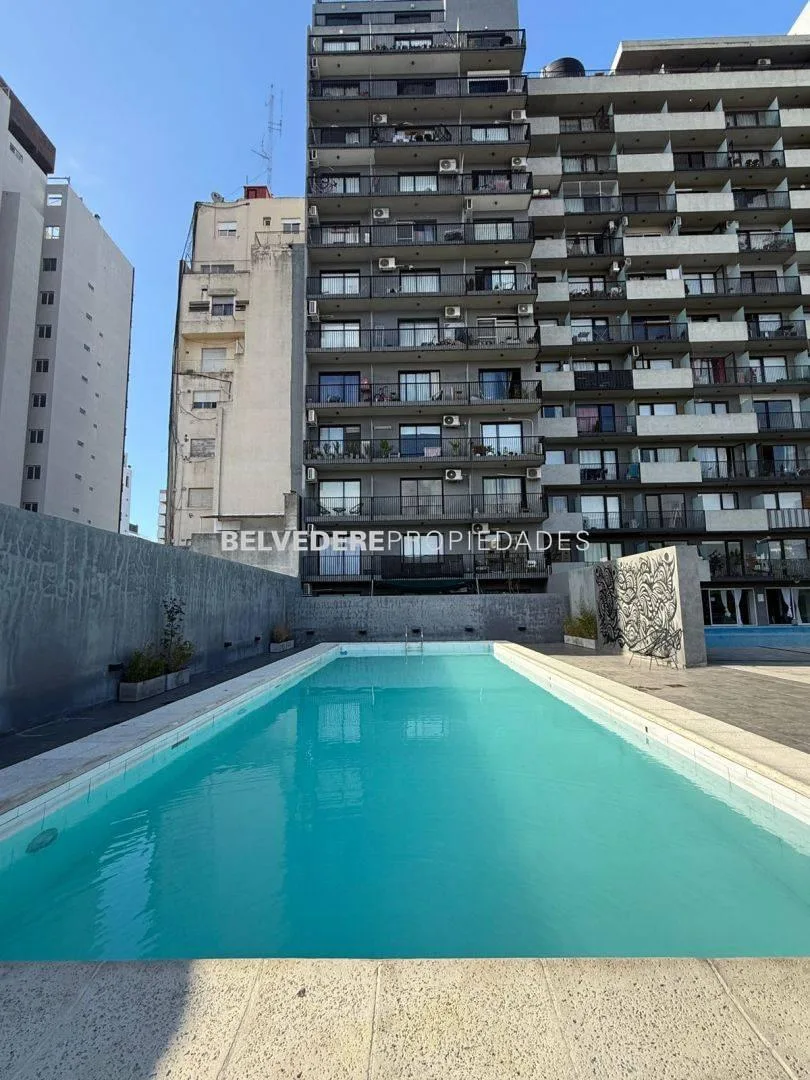Квартира-студия площадью не указана, окна на улицу, с балконом. В здании предусмотрены 2 бассейна и тренажёрный зал. Дом расположен на Calle Independencia al 3300. В описании указано, что коммунальные платежи и площади приведены как ориентировочные.