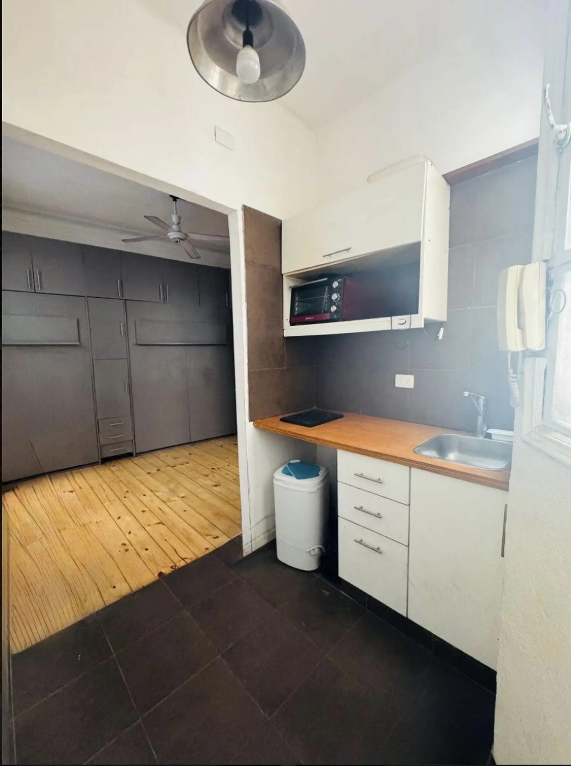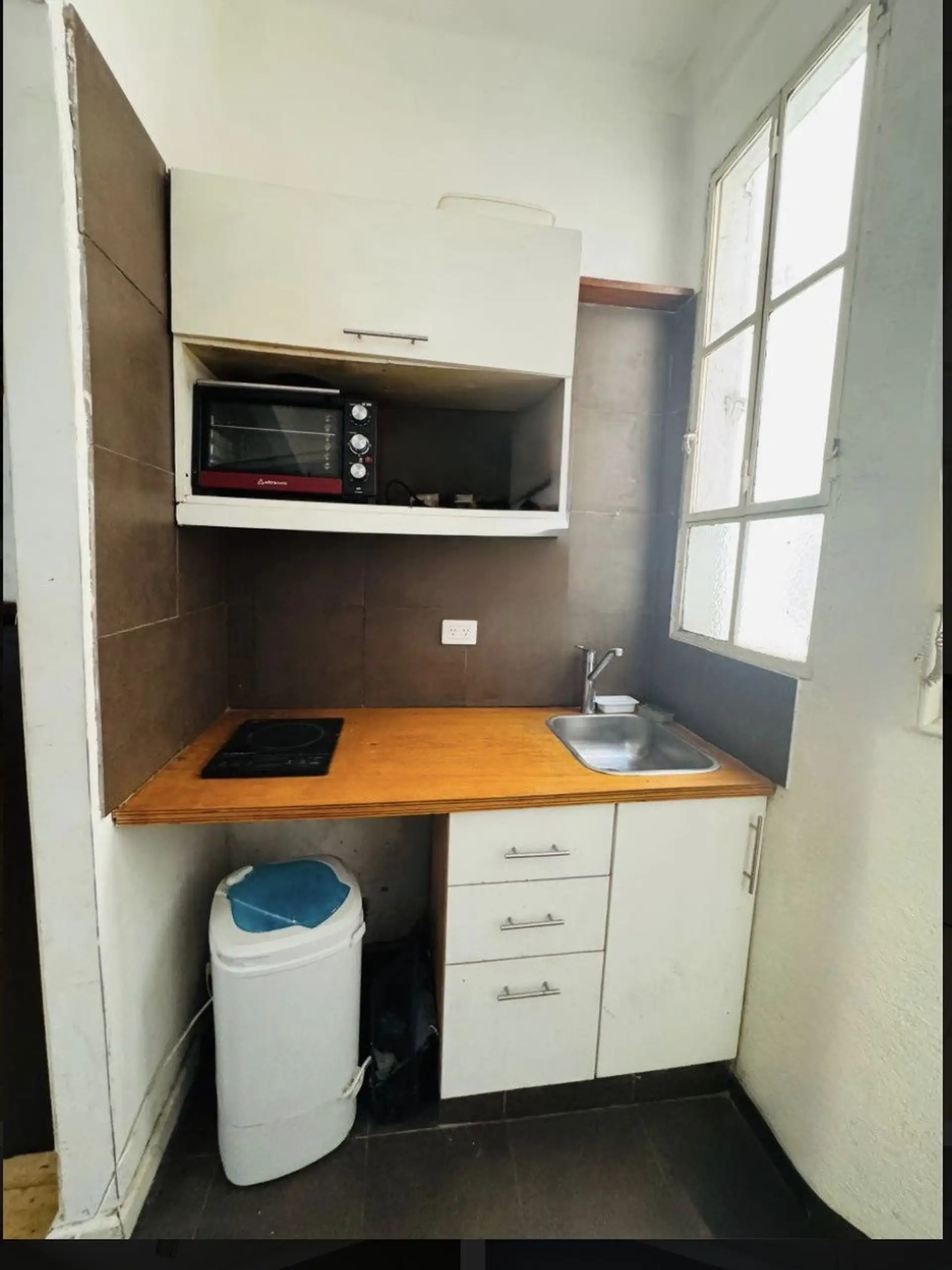 Квартира-студия площадью 20 m² в San Cristóbal на первом этаже по лестнице, окна выходят на угол Av. San Juan. В помещении есть основная зона с двумя раскладными кроватями и встроенной мебелью для хранения, оборудованная кухня и просторная ванная комната. Электрика и сантехника заменены, полы и облицовка из современного керамогранита. В здании есть кладовая и общая терраса. Коммунальные платежи здания — $80.000. Сдаётся на 1 год с мебелью; требуется залог-страховка аренды или гарантия собственни