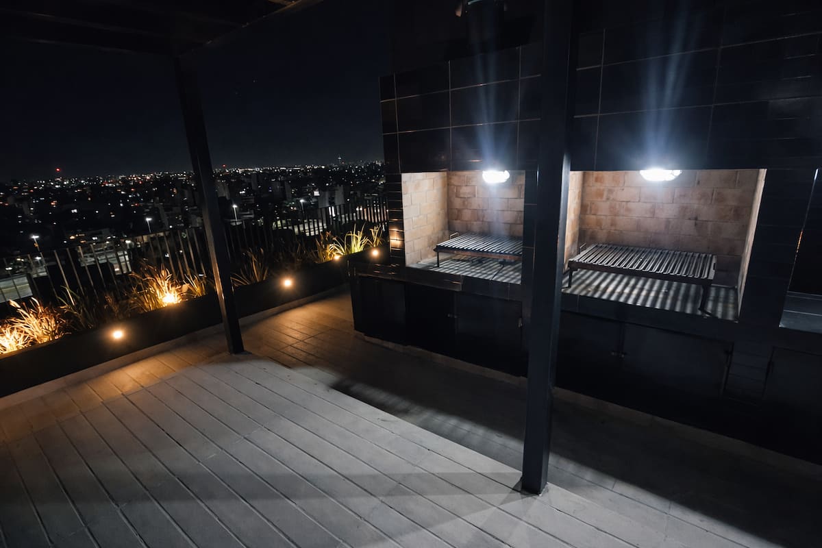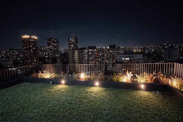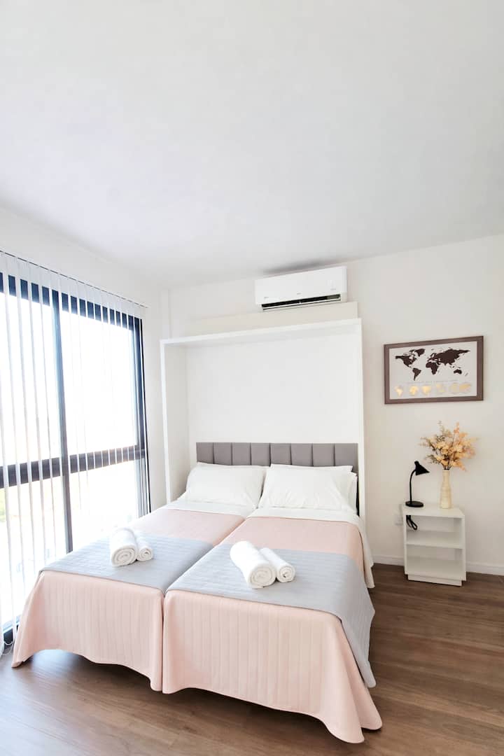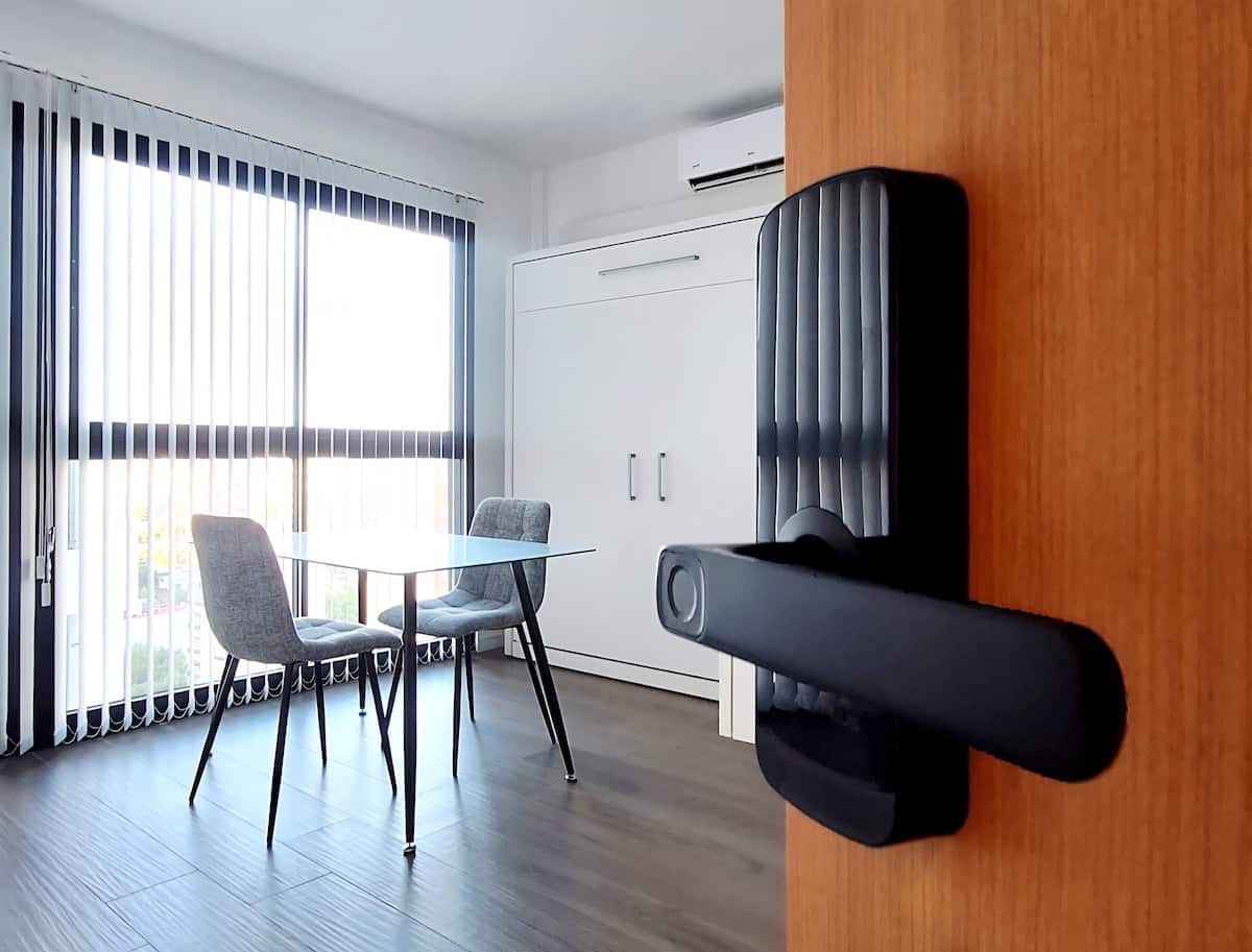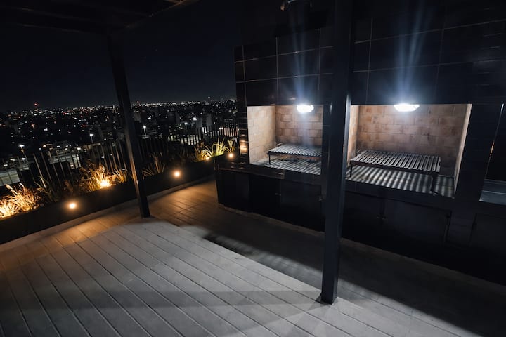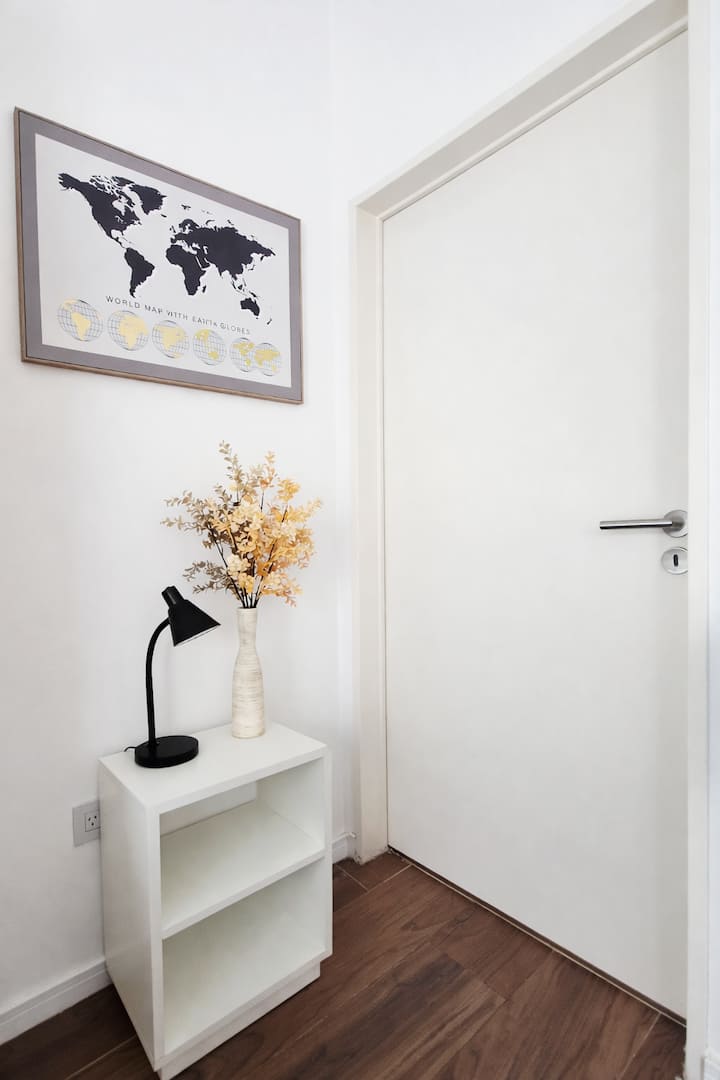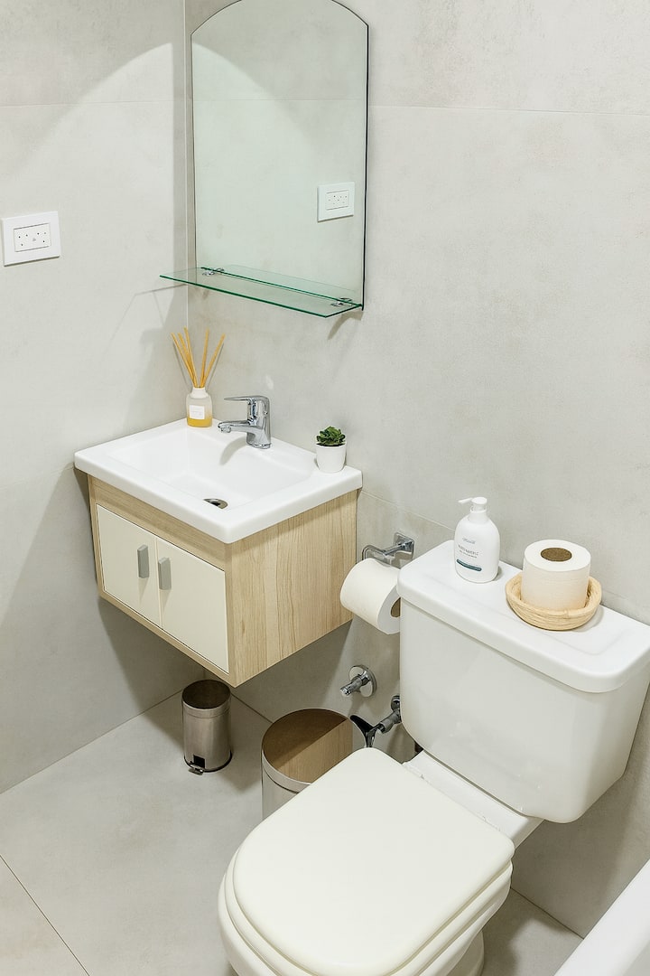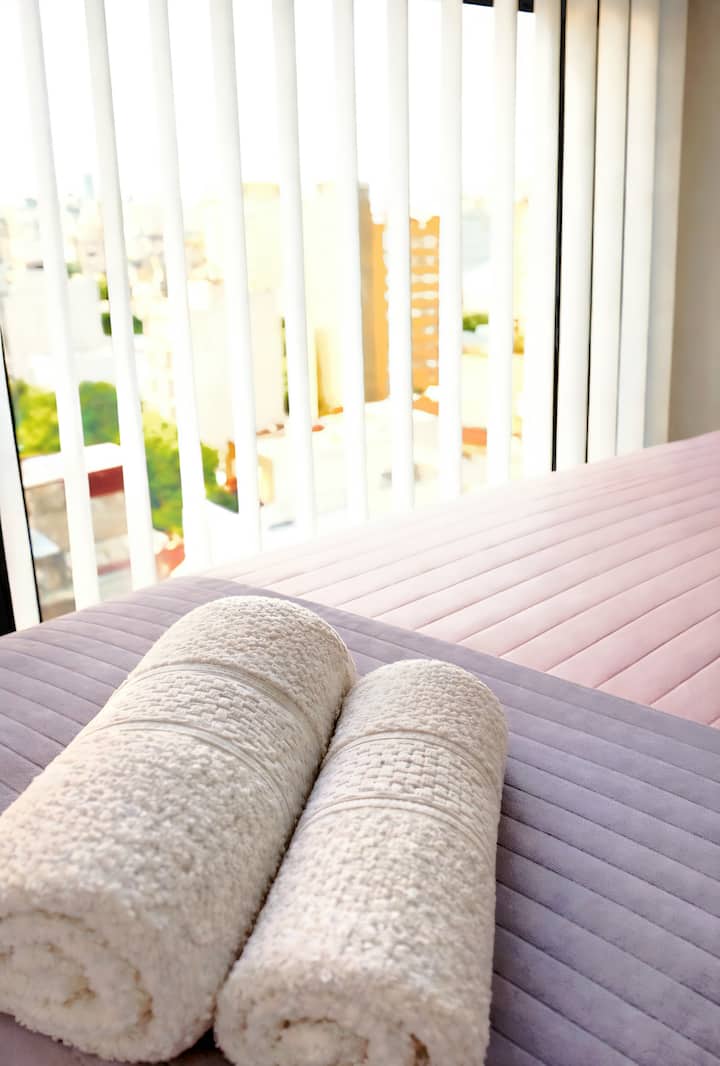 Квартира-студия (одна комната) в новом доме на Av. San Juan в San Cristóbal. Помещение полностью меблировано и оборудовано для проживания 1 или 2 человек. Есть цифровой доступ в здание и квартиру, центральное горячее водоснабжение, высокоскоростной Wi‑Fi и сплит-кондиционер (охлаждение и обогрев). Установлен телевизор Smart TV 43 дюйма; предусмотрены Netflix и YouTube, доступ к остальным сервисам осуществляется с личными учётными данными. В комнате раскладная кровать с комплектом постельного бел