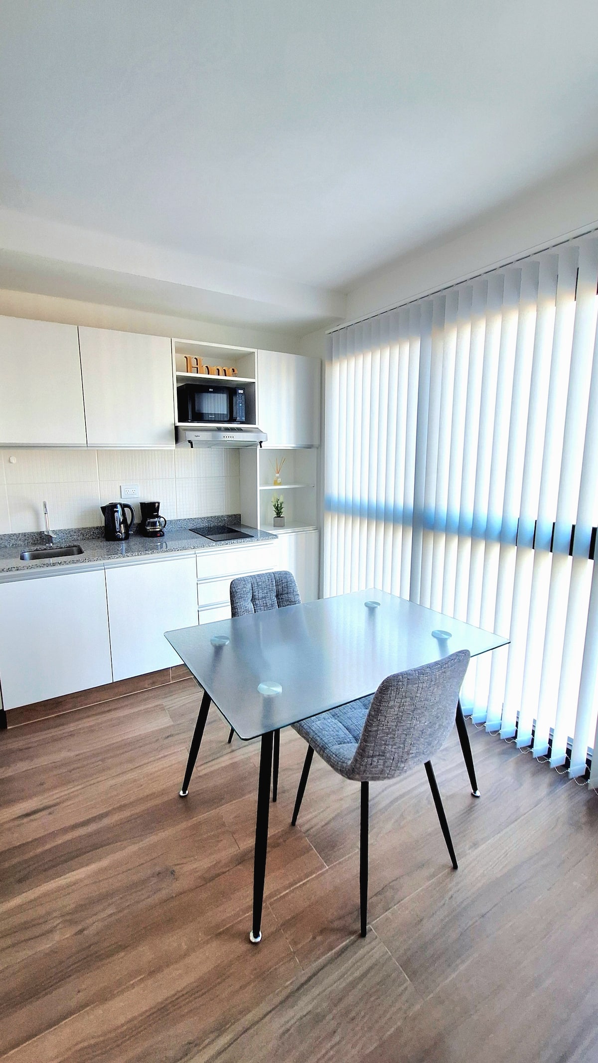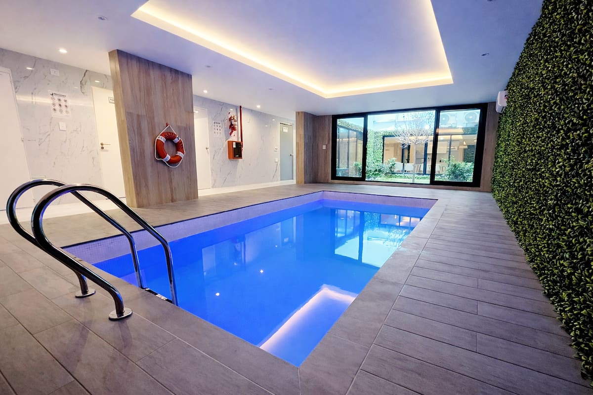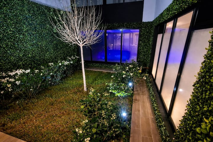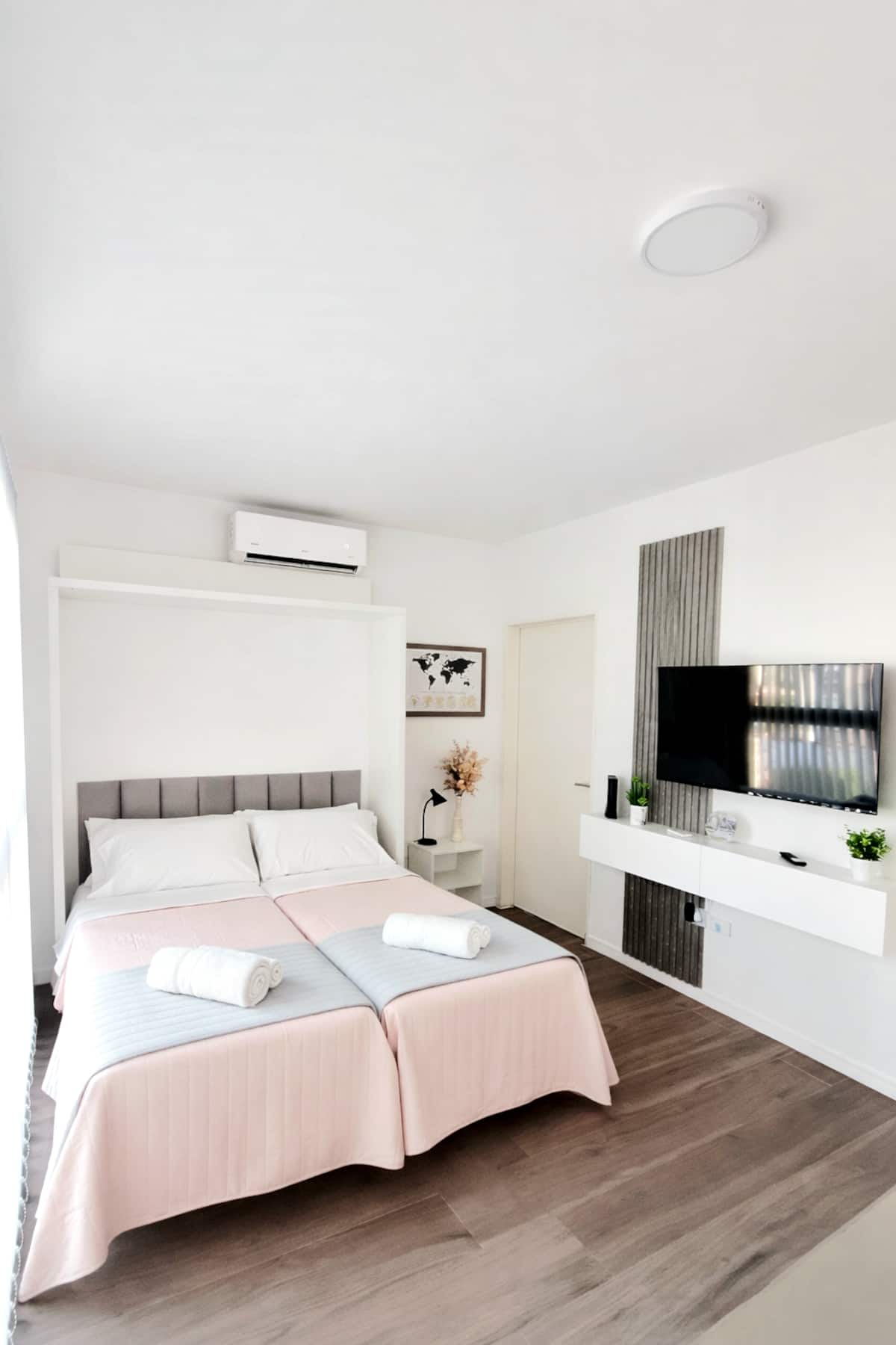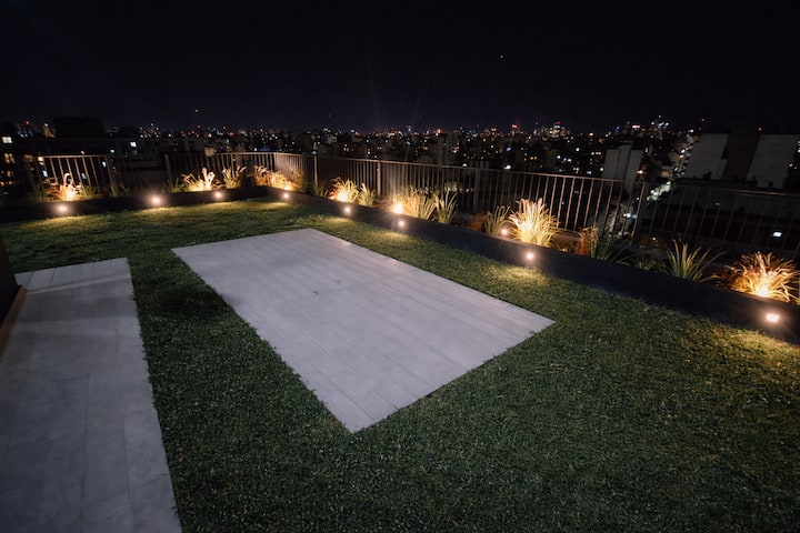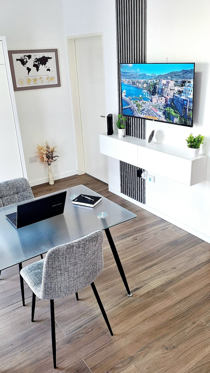 Квартира-студия (одна комната) в новом доме на Av. San Juan в San Cristóbal. Помещение полностью меблировано и оборудовано для проживания 1 или 2 человек. Есть цифровой доступ в здание и квартиру, центральное горячее водоснабжение, высокоскоростной Wi‑Fi и сплит-кондиционер (охлаждение и обогрев). Установлен телевизор Smart TV 43 дюйма; предусмотрены Netflix и YouTube, доступ к остальным сервисам осуществляется с личными учётными данными. В комнате раскладная кровать с комплектом постельного бел