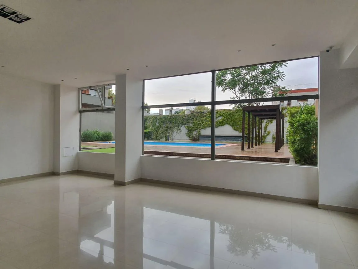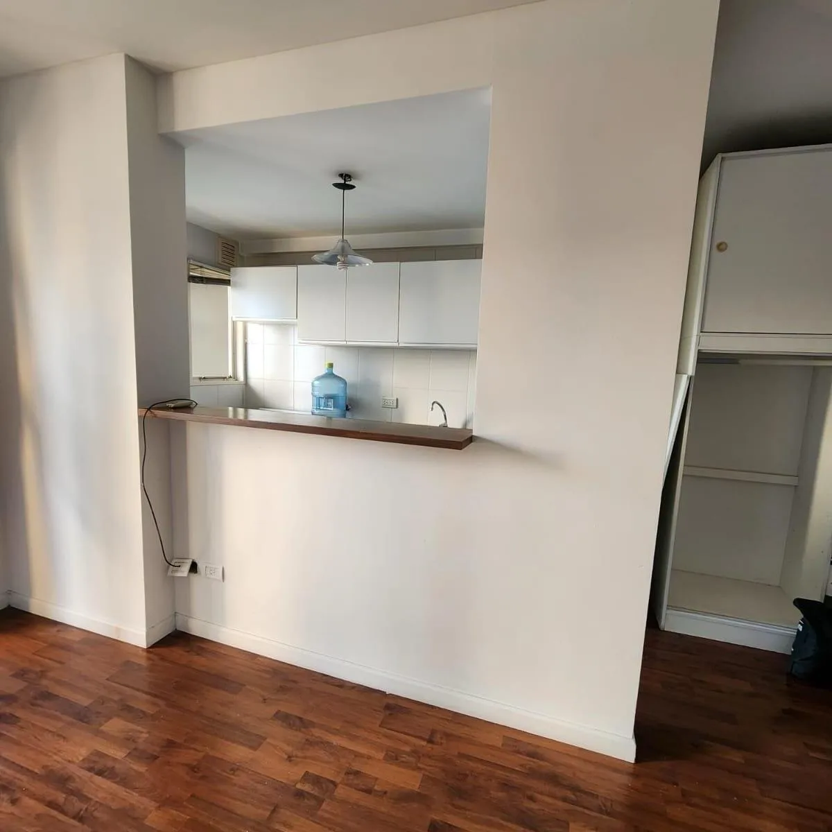 Квартира-студия в Edificio Jacarandá, с жилой зоной и выходом на балкон. Кухня интегрирована с навесными шкафами и тумбой под мойкой, отдельная прачечная. Полная ванная комната. В здании круглосуточная охрана, бассейн, отопление через лучистый пол (losa radiante). Размещение: в 1 квартале от Libertador, в 20 м от Av perón и в 3 кварталах от Ferrocarril Mitre. В объявлении указано, что арендаторам с детьми и с домашними животными не принимают. Требуется оформить страховку от пожара.