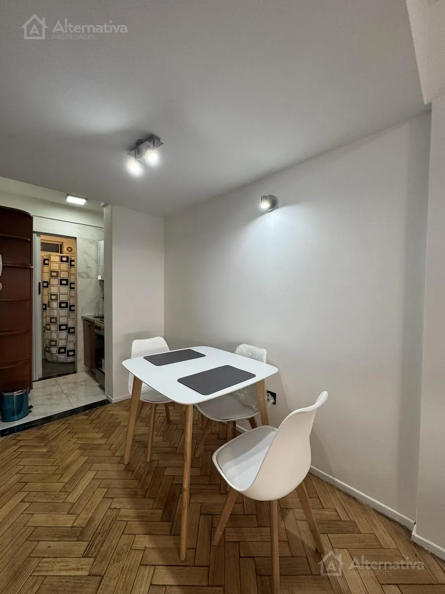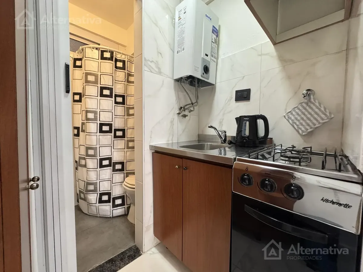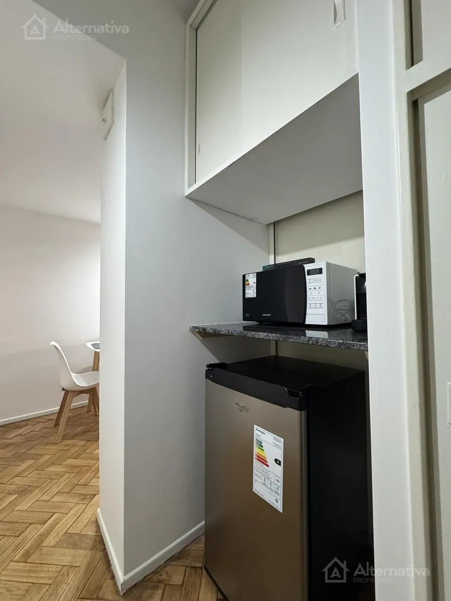 Квартира-студия в San Nicolás, с минимальным сроком аренды 3 месяца и до 1 года, с возможностью продления. В студии есть зона с столом, 3 стулами и письменным столом. Кухня полуотдельная, оборудована газовой плитой на 2 конфорки, газовой духовкой, электрическим чайником, холодильником с морозильной камерой, капсульной кофеваркой, микроволновой печью и набором посуды. Полная ванная с душем, спальня с двуспальной кроватью (sommier), раздвижные панорамные двери с выходом на балкон и окнами на улицу