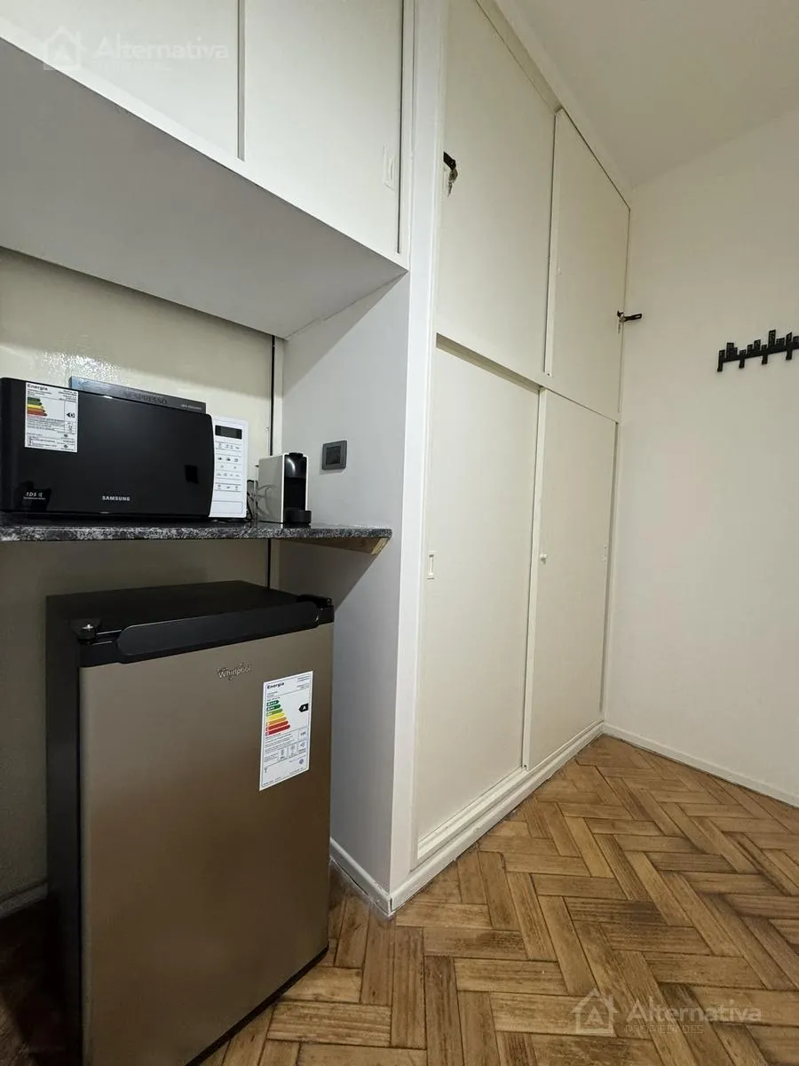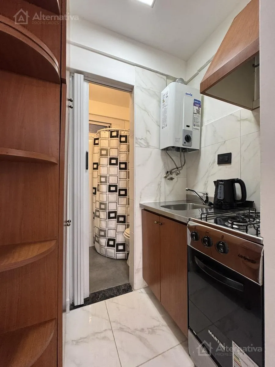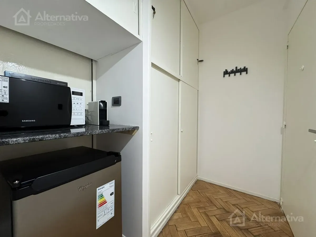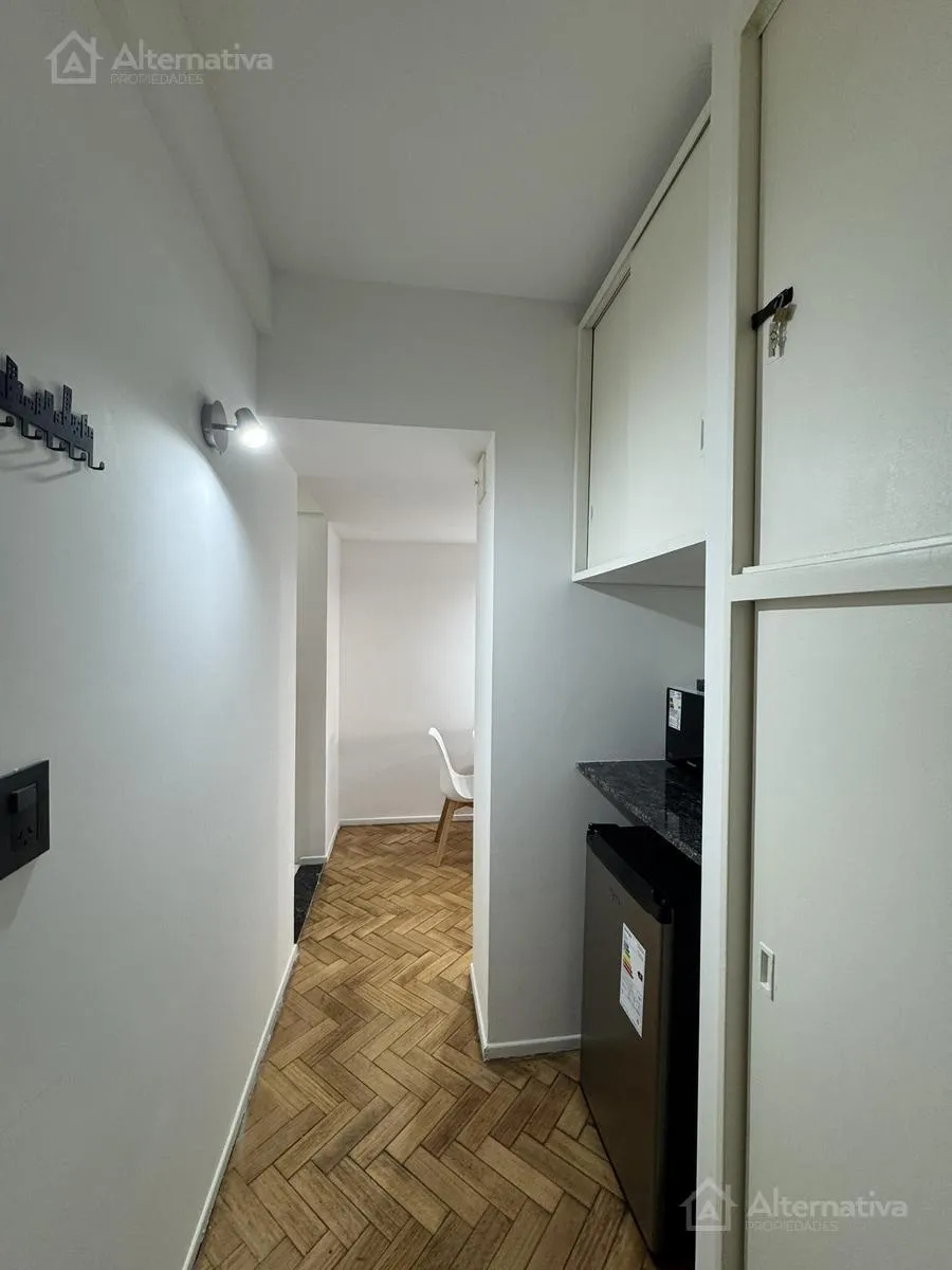 Квартира-студия в San Nicolás, с минимальным сроком аренды 3 месяца и до 1 года, с возможностью продления. В студии есть зона с столом, 3 стулами и письменным столом. Кухня полуотдельная, оборудована газовой плитой на 2 конфорки, газовой духовкой, электрическим чайником, холодильником с морозильной камерой, капсульной кофеваркой, микроволновой печью и набором посуды. Полная ванная с душем, спальня с двуспальной кроватью (sommier), раздвижные панорамные двери с выходом на балкон и окнами на улицу