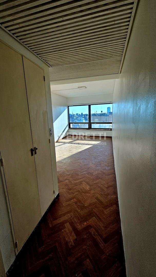 Квартира-студия площадью 23 m² находится на 16-м этаже, с окнами на Av. Corrientes и видом. В помещении есть встроенный шкаф, кондиционер и центральное отопление. Мини-кухня и отдельная полностью оборудованная ванная комната, горячая вода центральная. В здании есть прачечная, круглосуточная охрана и резервное электроснабжение (генератор); жильё полностью электрическое. Цена включает коммунальные платежи здания (expensas); отдельно оплачиваются ABL, AYSA и электричество. Не допускаются домашние ж