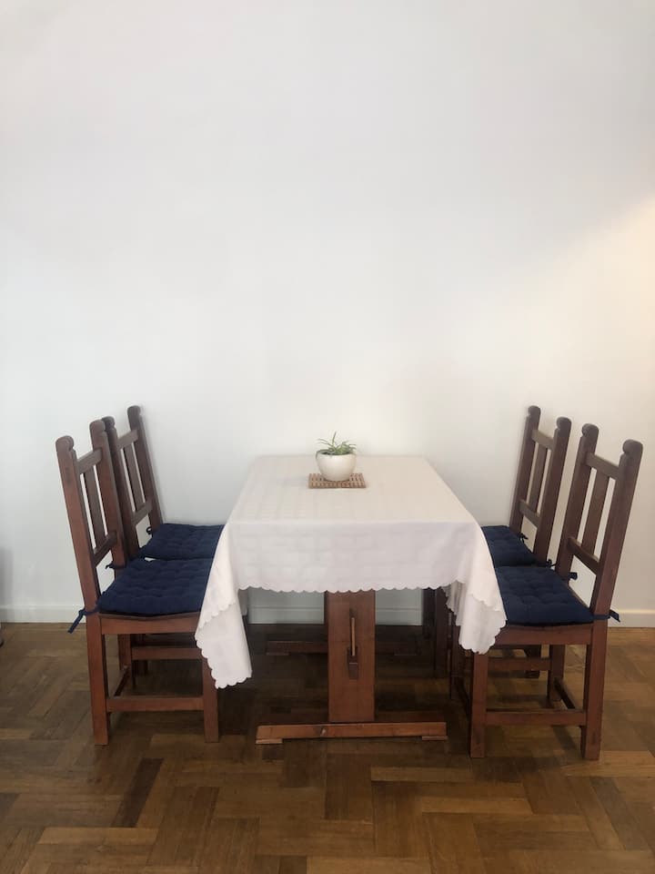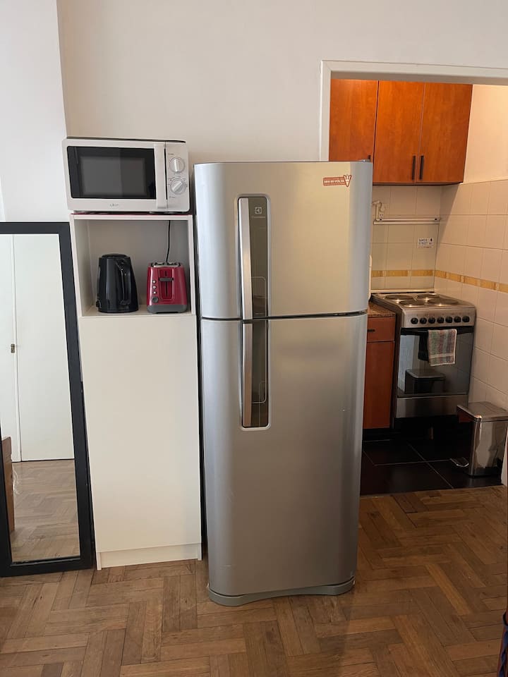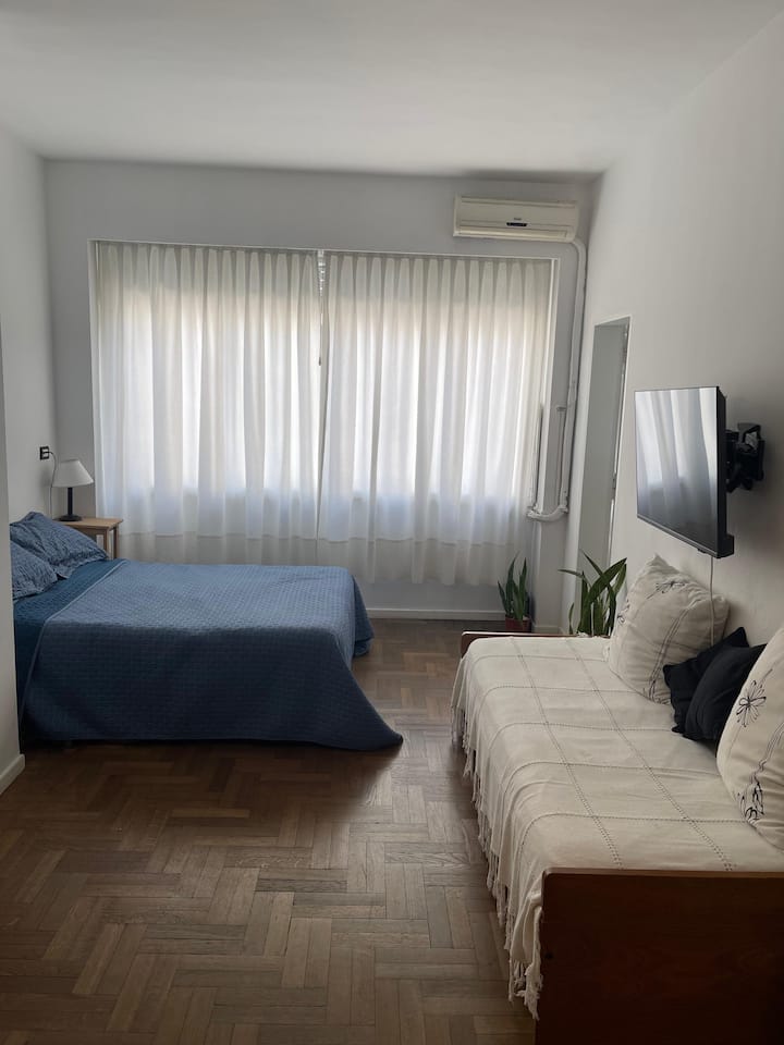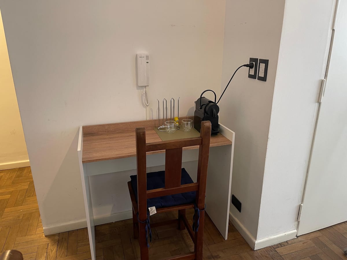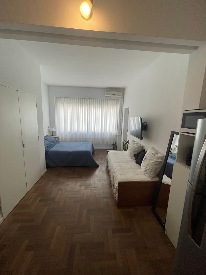 Квартира-студия площадью не указана, восстановлена изначально в 1930-х годах. В студии двуспальная кровать и односпальная кровать, полностью оборудованная кухня, ванная комната и места для хранения. В здании есть лифт и консьерж с доступностью в рабочие часы. Расположена в San Nicolás: 100 м от Calle Florida и 350 м от Obelisco.