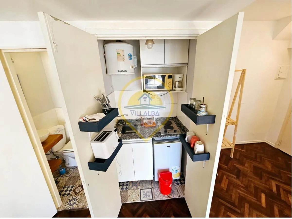 Квартира-студия площадью 27 m² в San Nicolás, окна на улицу, в районе Maipú 600. Кухня kitchenette встроена в основное помещение. Ванная комната с душем. Условия аренды: договор на 2 года, квартальная индексация по IPC, залог-страховка (caución).