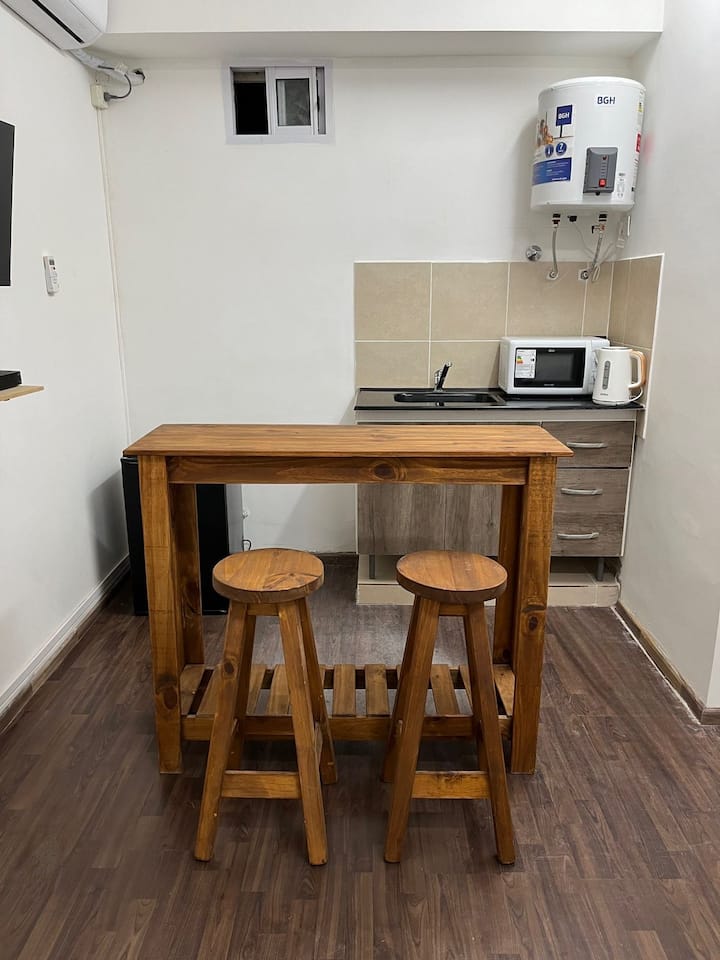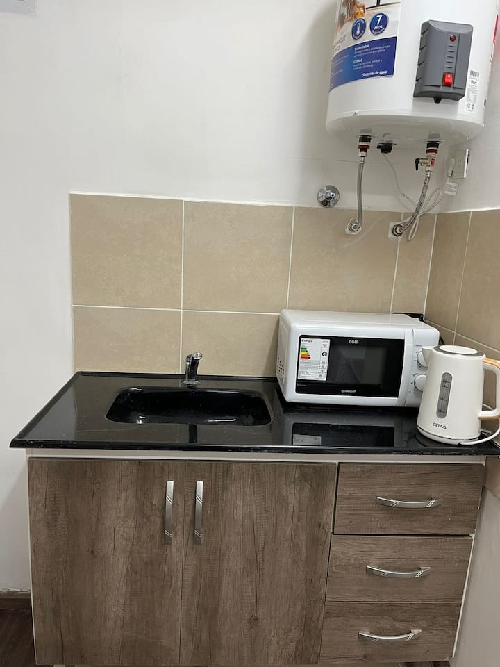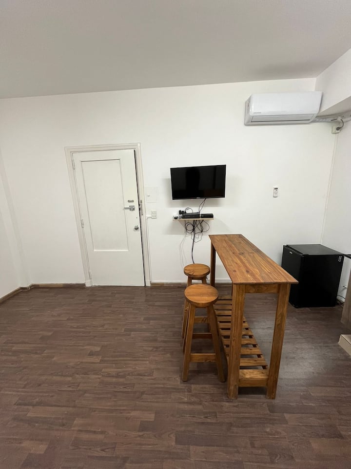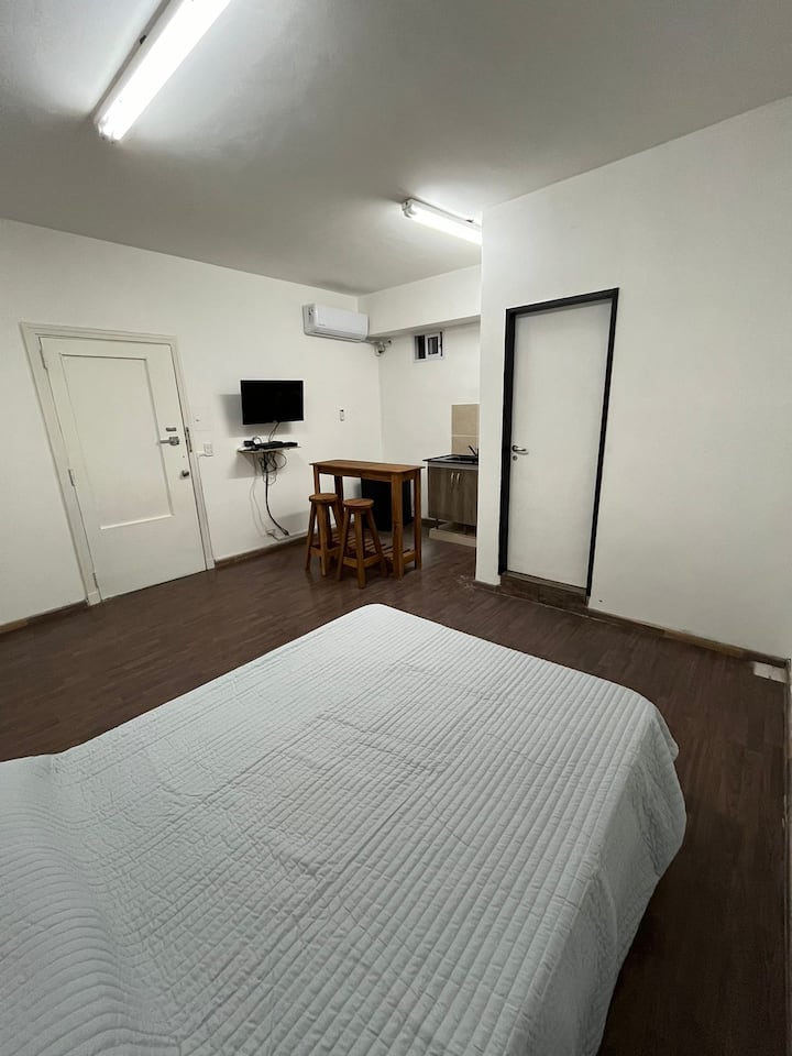 Квартира-студия в San Nicolás. Бытовая техника и кухонные принадлежности включают микроволновую печь, холодильник и электрический чайник. В квартире нет кухни, используется зона для базового приготовления. В описании указаны TV и кровать. Avenida Corrientes — в 100 метрах, Obelisco — в 300 метрах, пешеходная улица — в 200 метрах.
