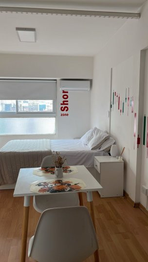 Квартира-студия площадью 30 m² на 8 этаже в San Nicolás, с окнами на улицу. Квартира с мебелью и укомплектована спальным местом на двуспальной кровати, постельными принадлежностями и кухонной утварью. Кухня оборудована электрической плитой и духовкой, холодильником с морозильной камерой, микроволновой печью и электрочайником. Ванная с окном. Кондиционирования не указано. Здание с охраной и тремя лифтами. Отдельные услуги. Временная аренда: u$s 450 + коммунальные платежи здания; в ноябре 2025 ком