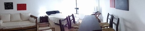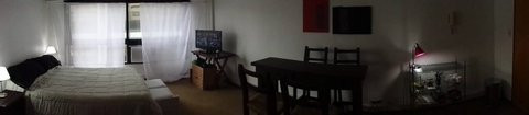 Квартира-студия площадью 40 m² на 9-м этаже, окна в сторону улицы. Двуспальная кровать, полностью оборудованная ванная комната, мини-кухня. В зоне гостиной стол и 4 стула, телевизор LED 32’, диван на два корпуса. Арендная плата u$s 500, кроме коммунальных платежей здания и услуг.