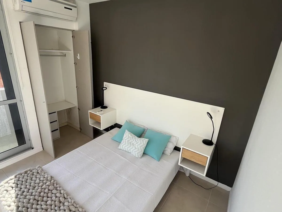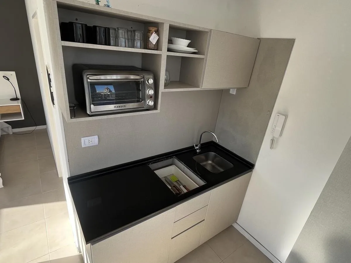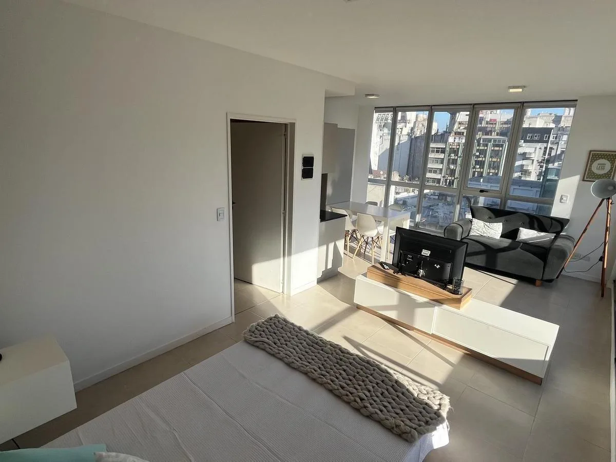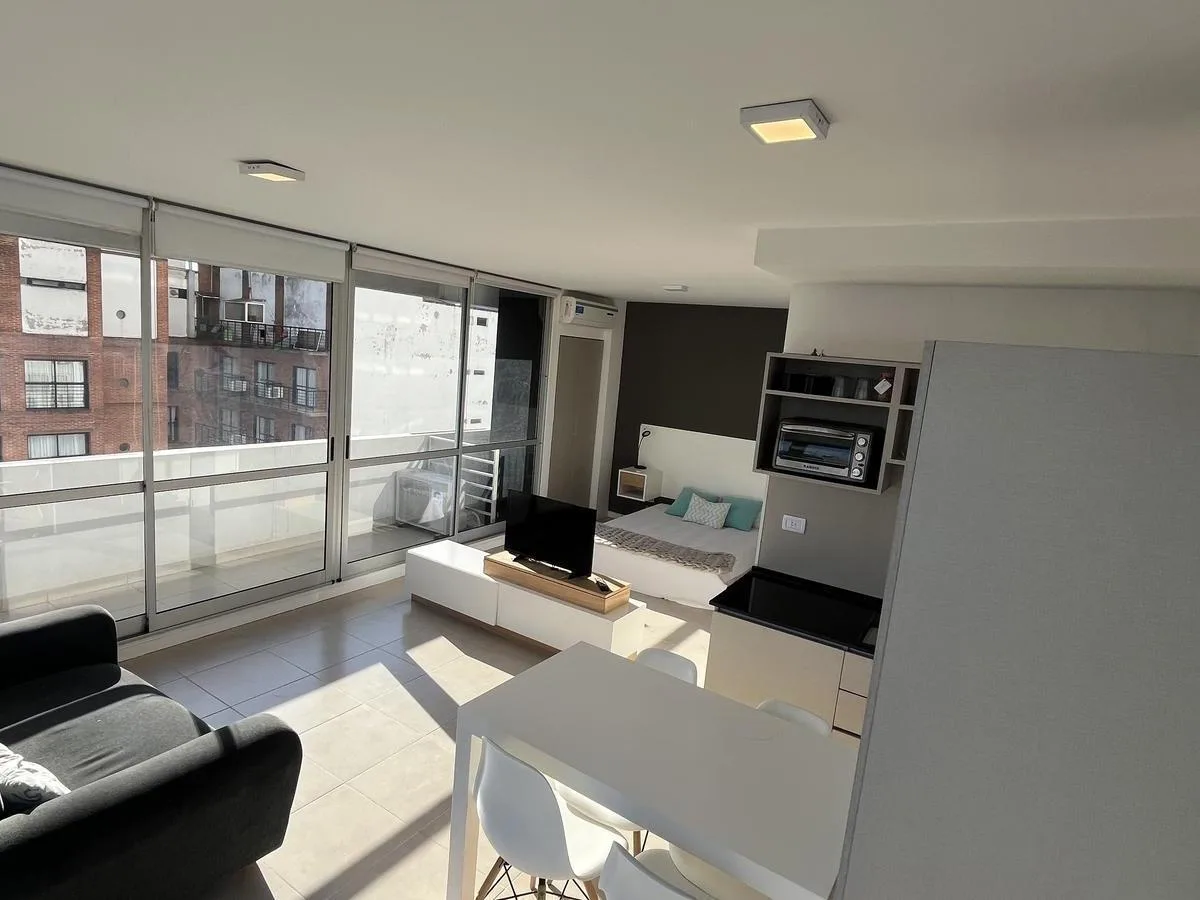 Квартира-студия в San Nicolás на улице Bartolomé Mitre, между Calle Uruguay и Calle Paraná. Полностью оборудована: холодильник с морозильной камерой, электрическая плита, духовка, посуда на 2 персоны, двуспальная кровать (sommier 2 plazas), прикроватные тумбы, двухместный диван, напольная лампа, постельные принадлежности, светильники и затемняющие шторы black out по всей квартире. В квартире установлен кондиционер «холод/тепло». В здании есть SUM, бассейн, солярий, пространство cowork, кафе и пр