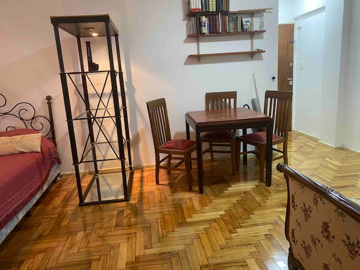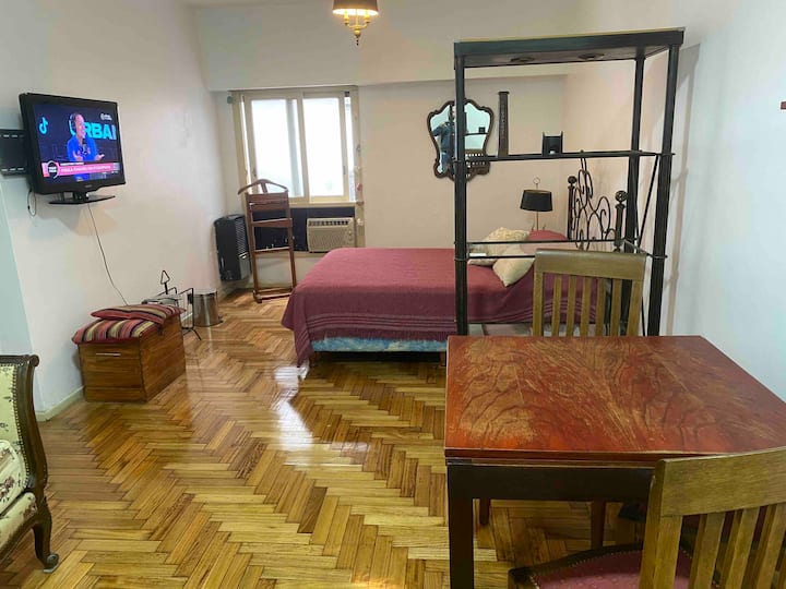 Квартира-студия в San Nicolás, с мебелью. В квартире есть новая кровать, новая духовка и стиральная машина. В описании указано, что для проживания требуется соблюдение тишины и бережное отношение к мебели и имуществу.
