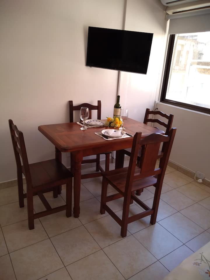 Квартира-студия в San Nicolás, Esmeralda между Lavalle и Corrientes. Расположена в 2 кварталах от Obelisco и Teatro Colón, а также рядом с Florida, Galerías Pacífico, Puerto Madero и Plaza de Mayo. В квартире установлен кондиционер холод/тепло, есть окна с шумоизоляцией и плотные шторы blackout. В студии есть душевая, раковина, персональная ванная комната.