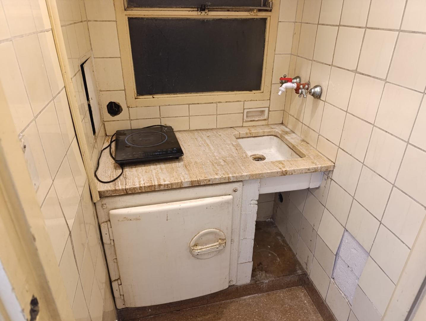 Квартира-студия с окнами на улицу, площадью не указана, на Av Corrientes в San Nicolás. Есть мини-кухня и полностью оборудованная ванная. Подходит для профессионального использования. Рядом с Av Rivadavia и Av 9 de Julio; указываются линии метро и маршруты colectivos.
