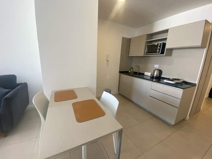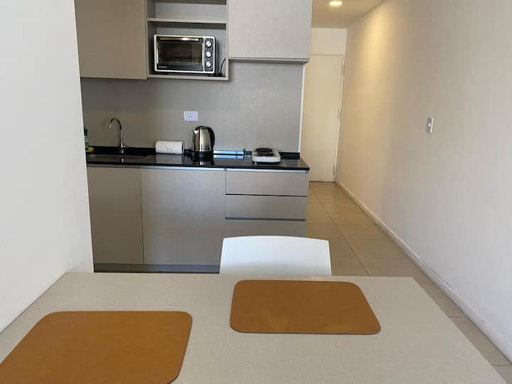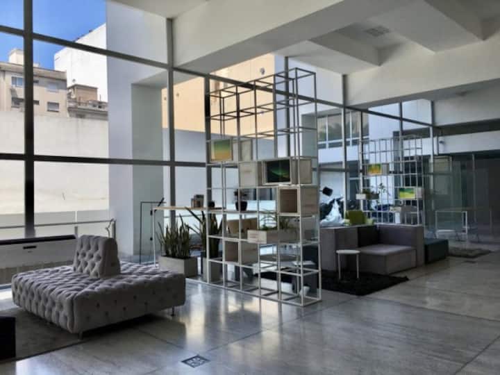 Квартира-студия площадью не указана в San Nicolás, с балконом. В здании, открывшемся в марте 2018 года, размещение до 2 человек: двуспальная кровать, стол/рабочее место, стулья, кухонные принадлежности и посуда. На кухне есть холодильник под столом, отдельная ванная комната с ванной. Указано, что станции Subte линий A, B, C и H находятся в нескольких метрах от Bartolomé Mitre 1444. Avenida de Mayo находится в 150 метрах, Starbucks — в 200 метрах, Plaza de Mayo и Cabildo — в 900 метрах, Café Tort