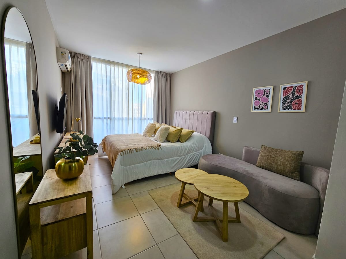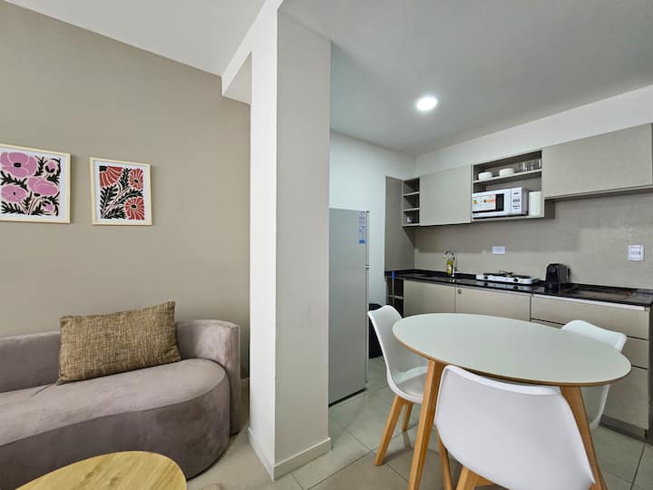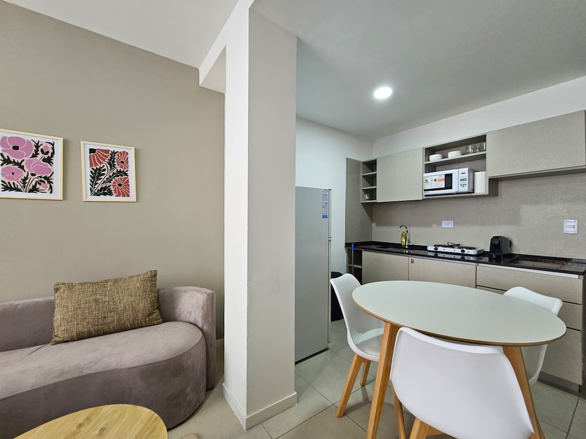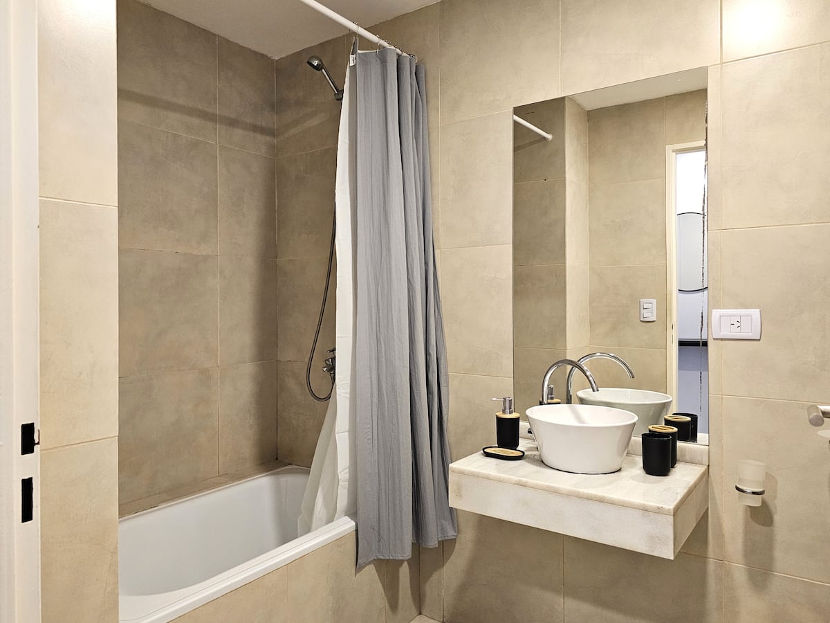 Квартира-студия в San Nicolás полностью меблирована и оборудована. Имеются кухонный уголок, отдельная ванная комната с ванной, кровать Queen и LED Smart TV. В помещении установлен кондиционер. На 19-м этаже находится бассейн на террасе, круглосуточные консьерж и охрана. В описании указано близкое расположение к транспортным узлам: рядом метро и Metrobus, а также станция метро Line A в 2 кварталах.