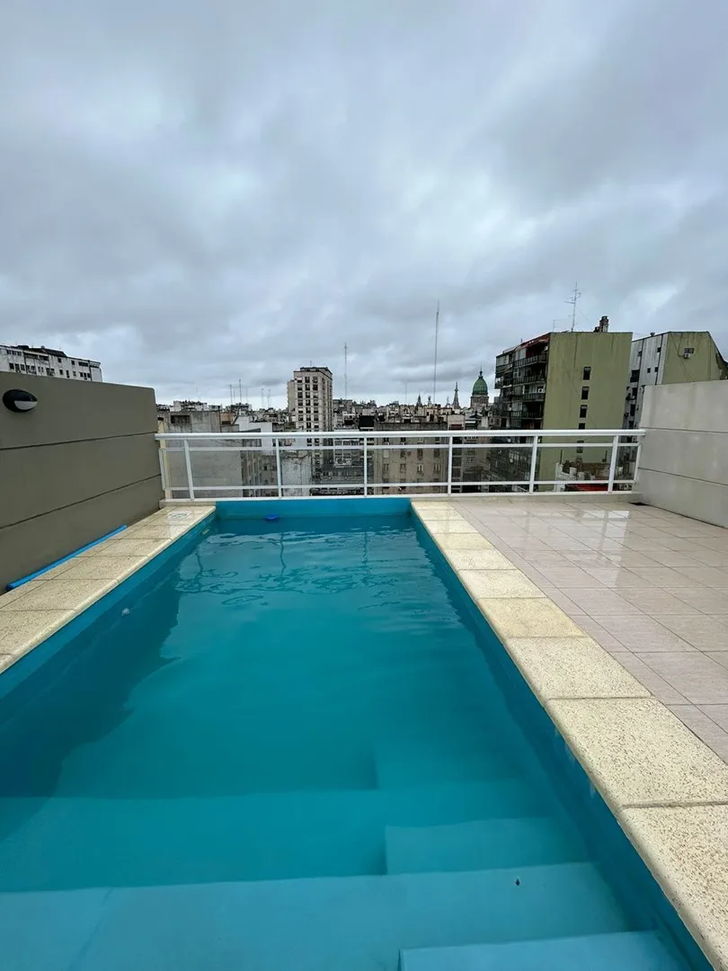 Квартира-студия в San Nicolás в здании до 1 года с балконом. Помещение с возможностью зонирования под спальную зону, выход на балкон; кухня интегрирована с барной стойкой, есть полноценная ванная комната. В доме предусмотрены бассейн, общая гостиная для жильцов (SUM), прачечная и общая терраса. Доступность для людей с ограниченной подвижностью соответствует требованиям Ley 5115. В районе Av. Callao и Av. Corrientes; рядом станции Subte Línea B Callao и Uruguay, а также Subte Línea A Congreso.