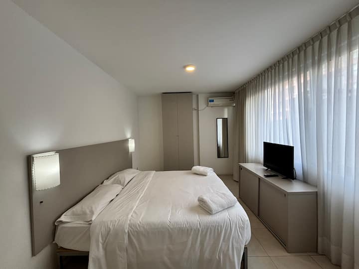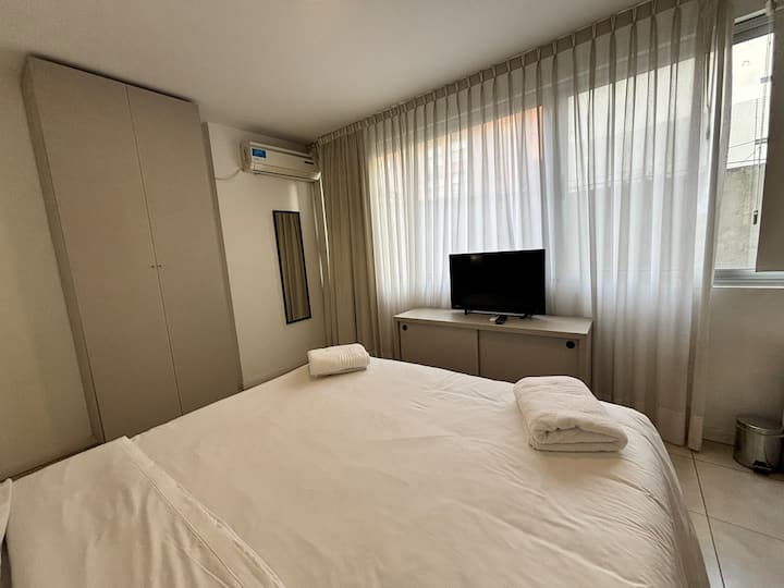Квартира-студия площадью B19 находится в здании, открытом в марте 2018 года. Размещение до 2 человек: двуспальная кровать, стол с рабочей зоной и стулья, кухонные принадлежности и посуда, собственная ванная комната.