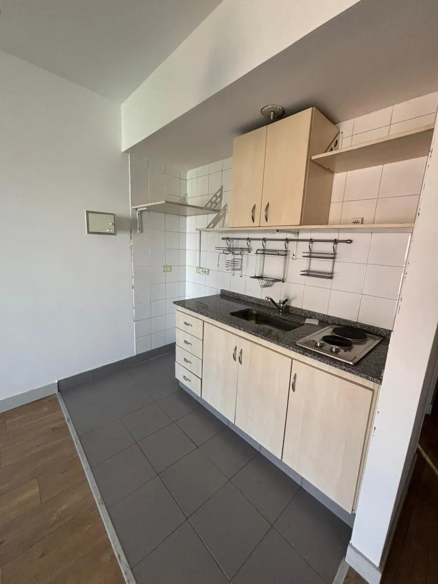 Квартира-студия на первом плане, окна на улицу, с видом на Río и Puerto Madero. Площадь не указана. Кухня американского типа полностью оборудована. В ванной установлена ванна. В помещении есть встроенный шкаф по индивидуальному проекту. Угловое здание.