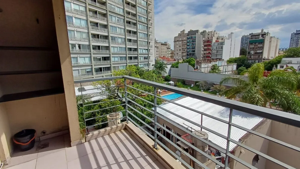 Квартира-студия площадью 41 m² общих, с окнами во двор и выходом на балкон-террасу. Встроенная кухня с электрической духовкой и индукционной варочной панелью, предусмотрены места для хранения. Полноценная ванная с внешней вентиляцией, установлен встроенный шкаф при входе и дополнительная мебель для хранения, есть кладовая. В здании работает encargado, на крыше предусмотрена зона гриля.