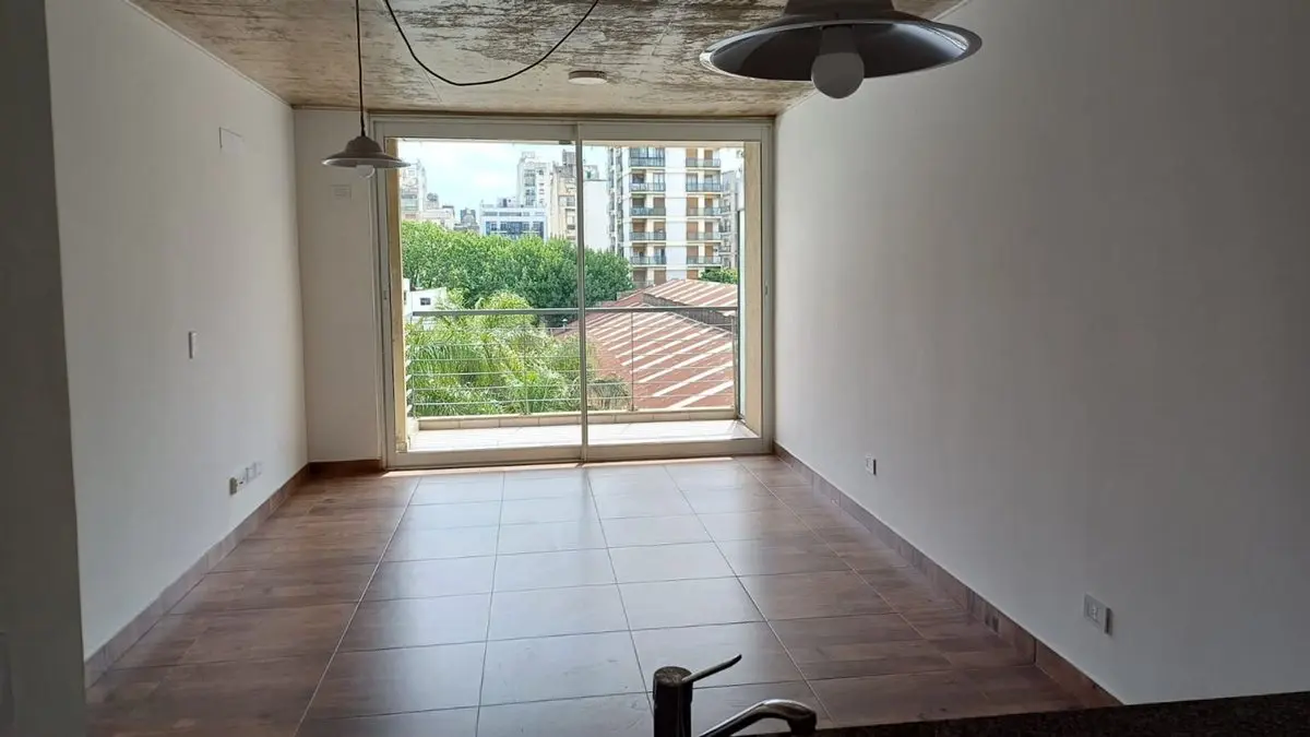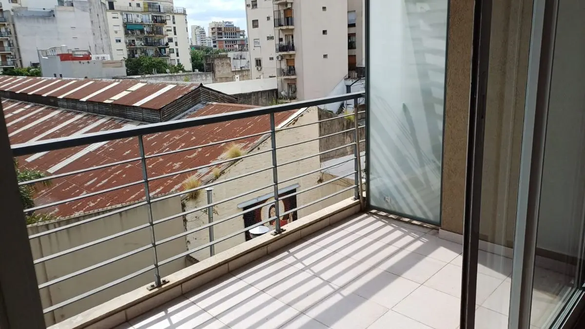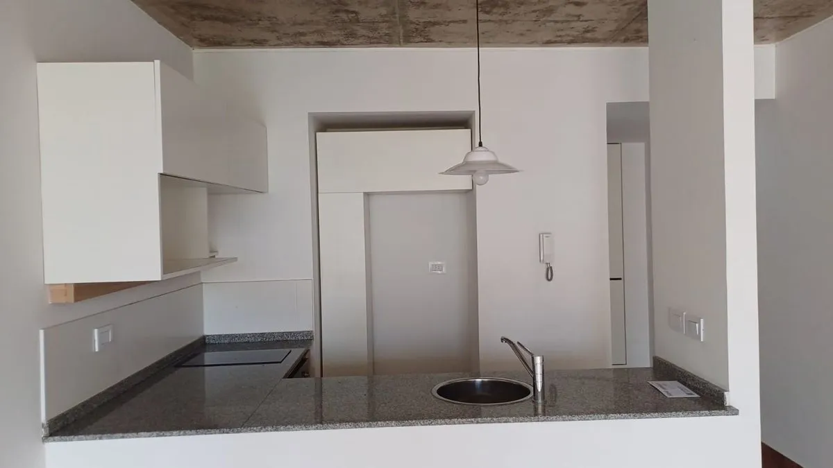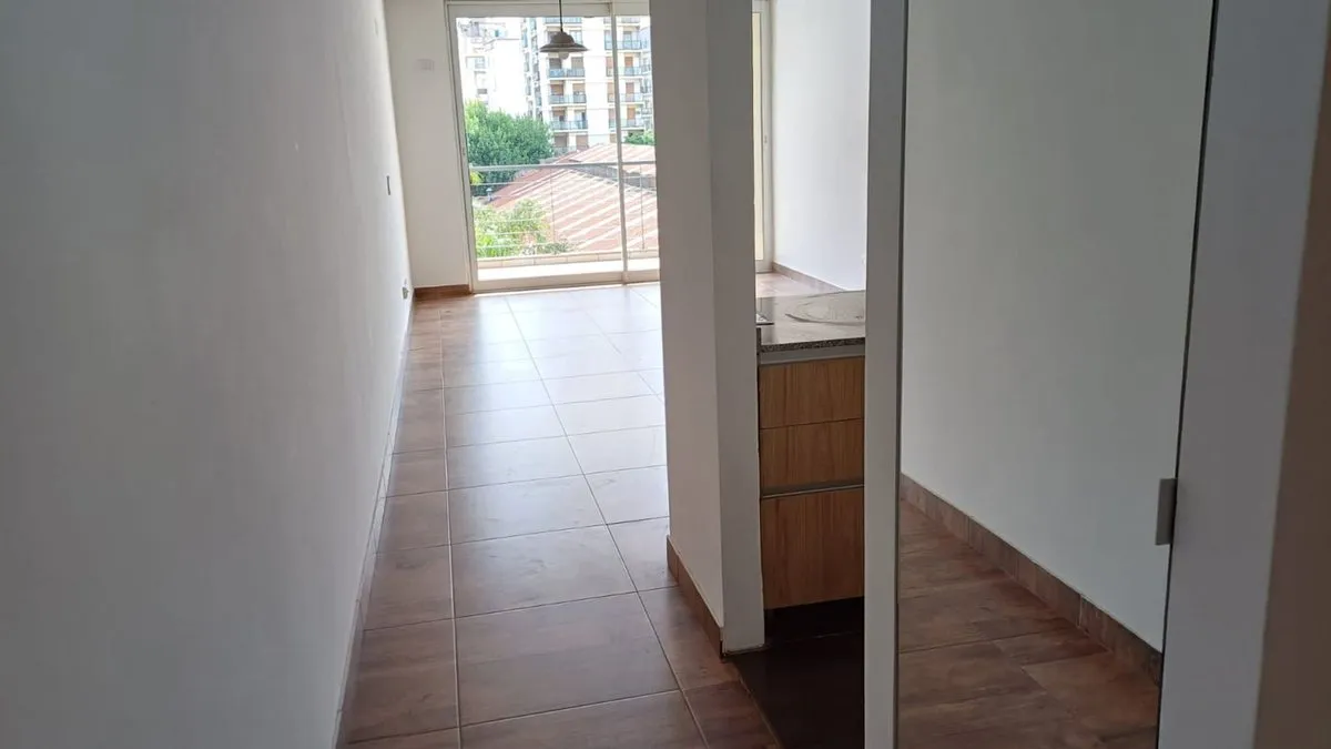 Квартира-студия площадью 41 m², окна во двор (contrafrente). Кухня интегрирована, с электрической духовкой и варочной панелью vitrocerámica, есть системы хранения в верхних и нижних шкафах. Жилая зона выходит на балкон с видом на открытое пространство, санузел полный с наружной вентиляцией; при входе предусмотрен шкаф-купе. На террасе здания есть зона гриля (parrilla). В здании работает enкаргадо.