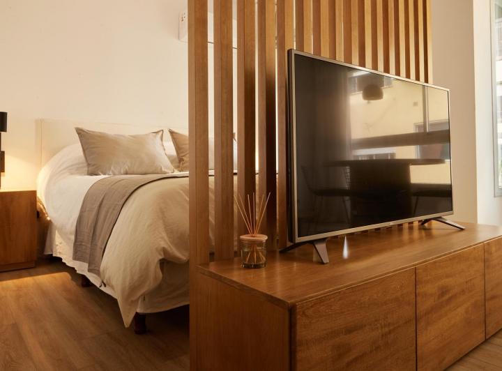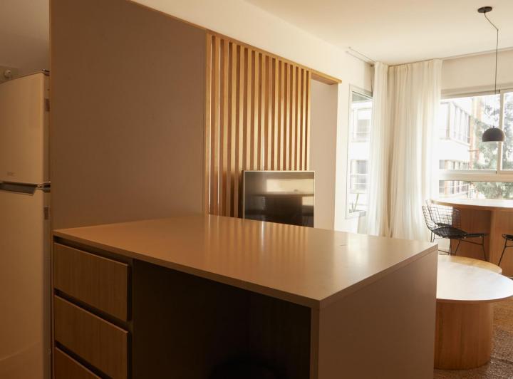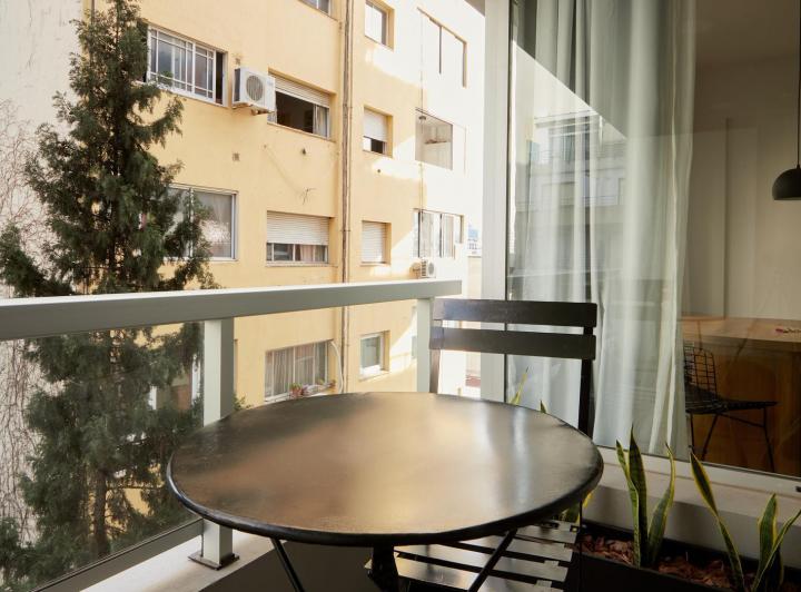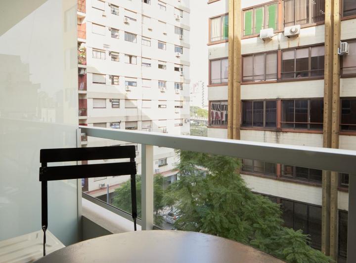 Квартира-студия в San Telmo, полностью оборудована: кухня, холодильник, Smart TV, стиральная машина, кухонная утварь. В квартире есть совмещённая ванная и встроенный шкаф. Большой балкон, вид на зелёные пространства. В здании предусмотрены общий бассейн и общий тренажёрный зал. Стоимость включает электричество, воду, ABL и Wi‑Fi, коммунальные платежи здания (expensas) не включены.