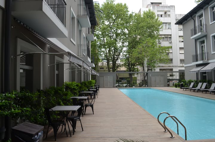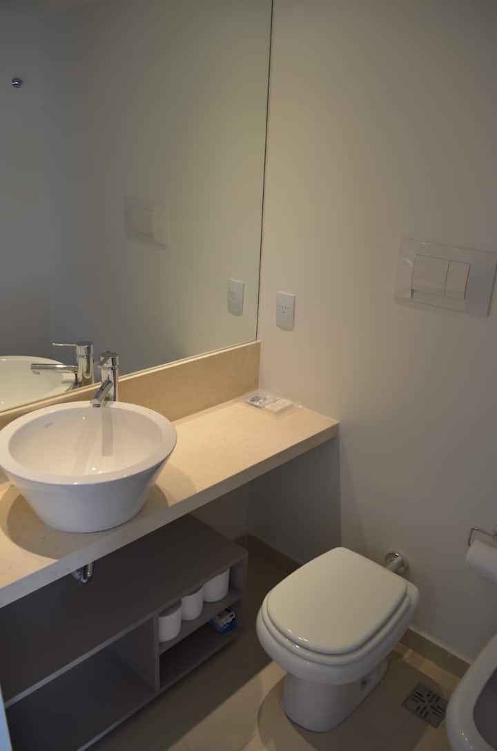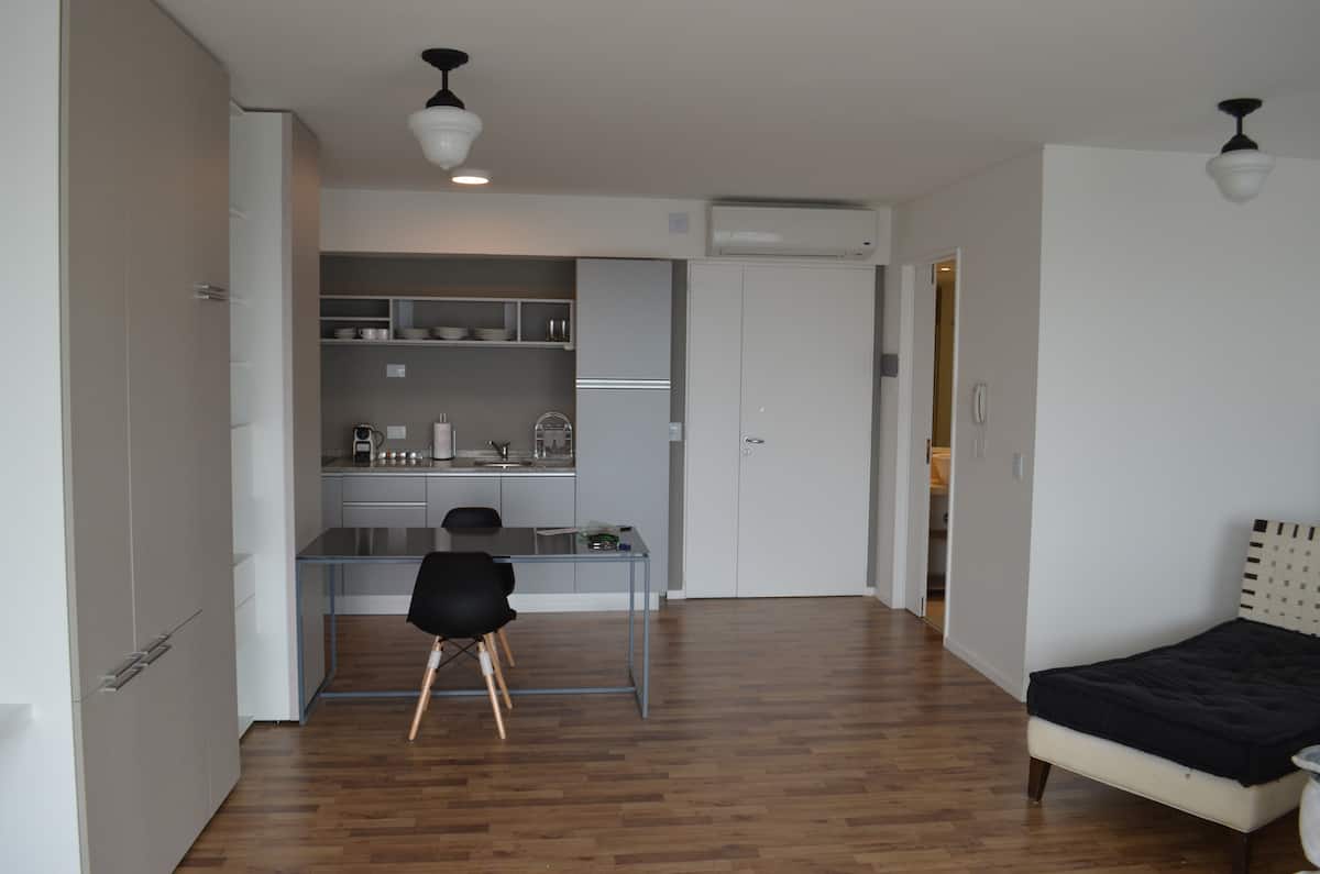 Квартира-студия в новом доме на 21-м этаже, с видом на реку и город. Квартира с полной комплектацией и расположена в районе San Telmo, рядом с Puerto Madero. В здании работает круглосуточная охрана, есть спортзал и спа. Отдельная плата за сервисы типа resort fees не предусмотрена.