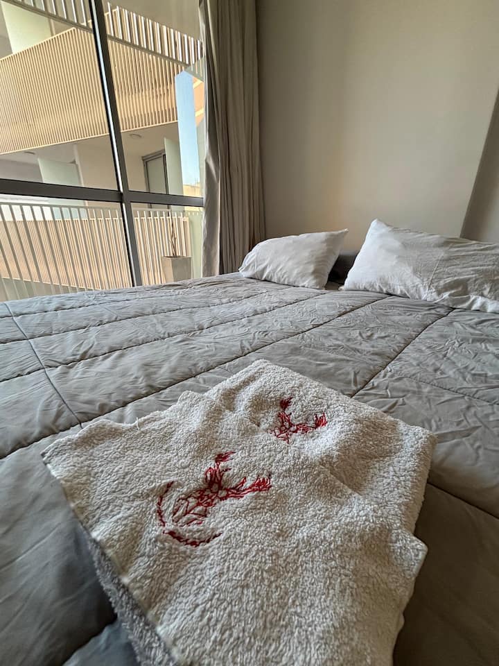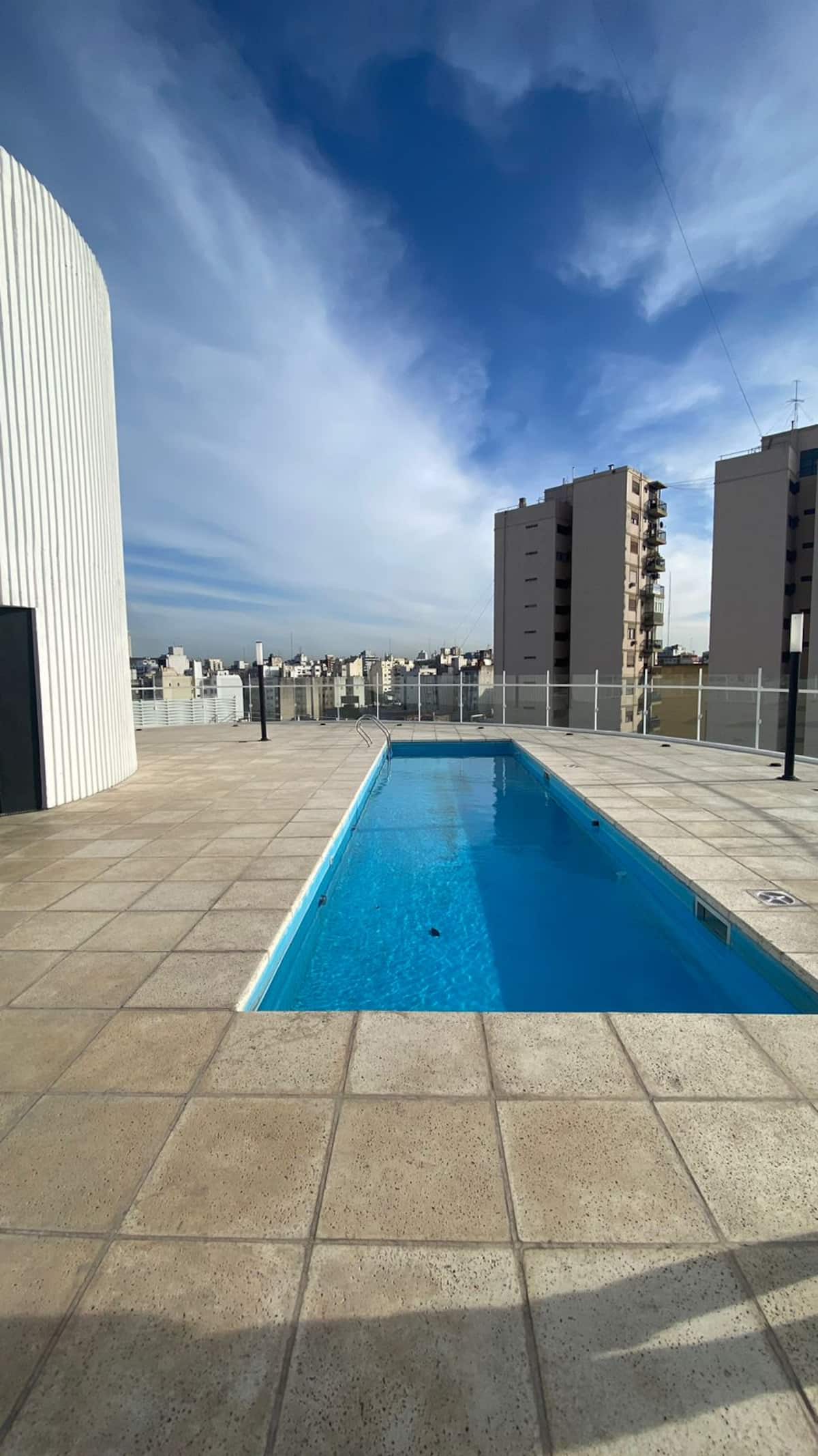 Квартира-студия в San Telmo. В здании есть прачечная, круглосуточная охрана и бассейн на террасе с видом на город. Кровать может использоваться отдельно. Указаны штрафы за курение: $80, а также $100.