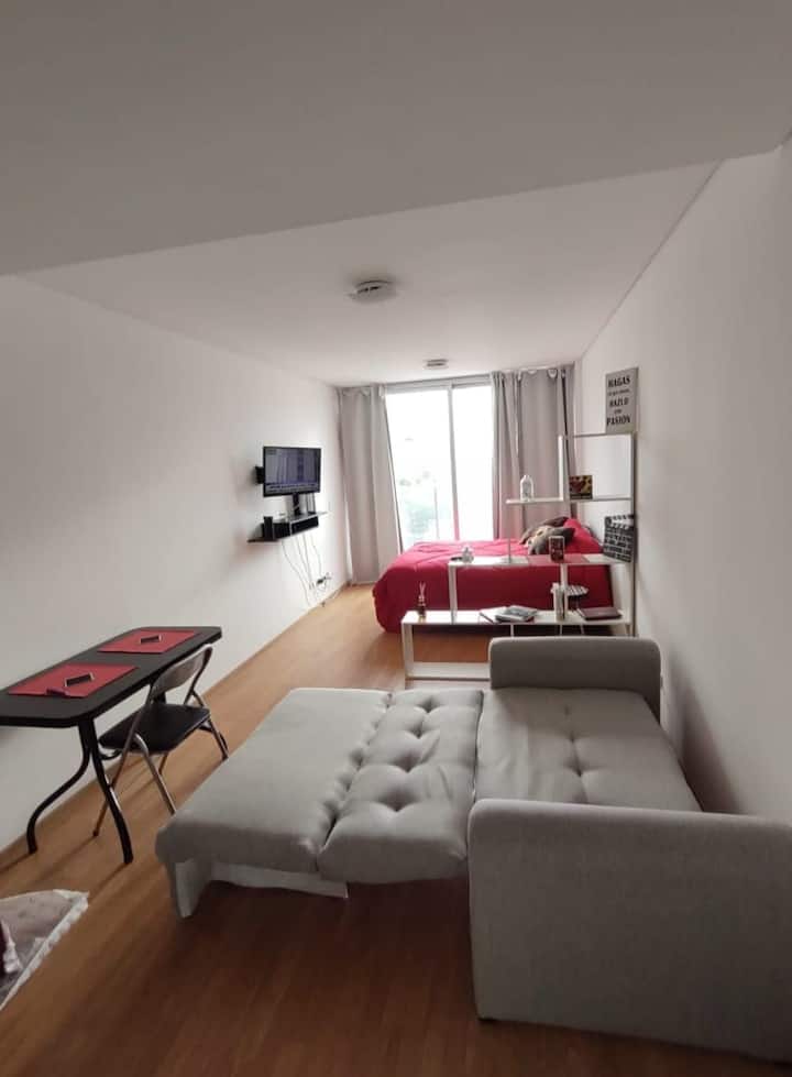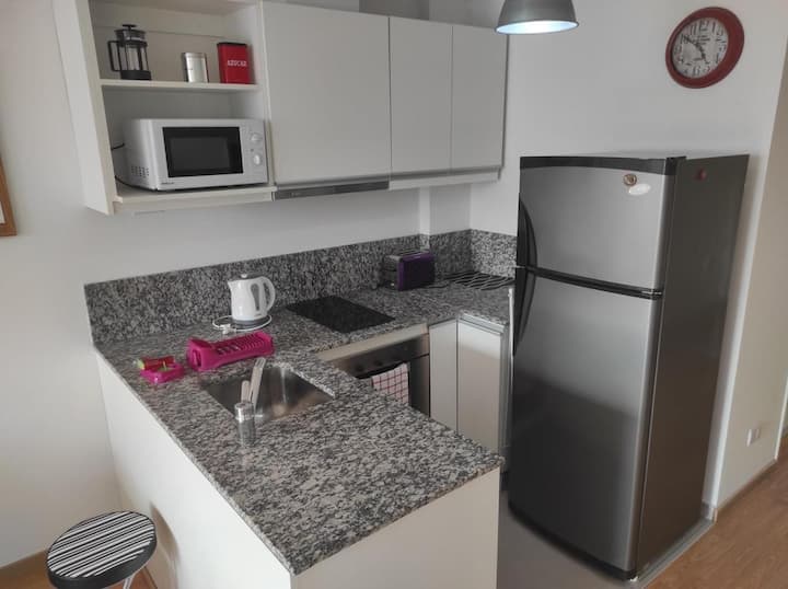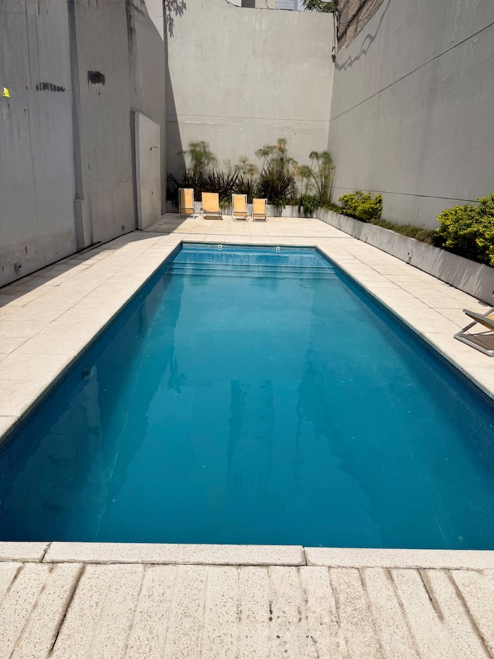 Квартира-студия в San Telmo. В наличии Wi‑Fi, кондиционер, Smart TV, круглосуточный персонал охраны и приём посылок. На территории есть прачечная с стиральной машиной и сушилкой, фитнес-зал, а также сезонный бассейн.