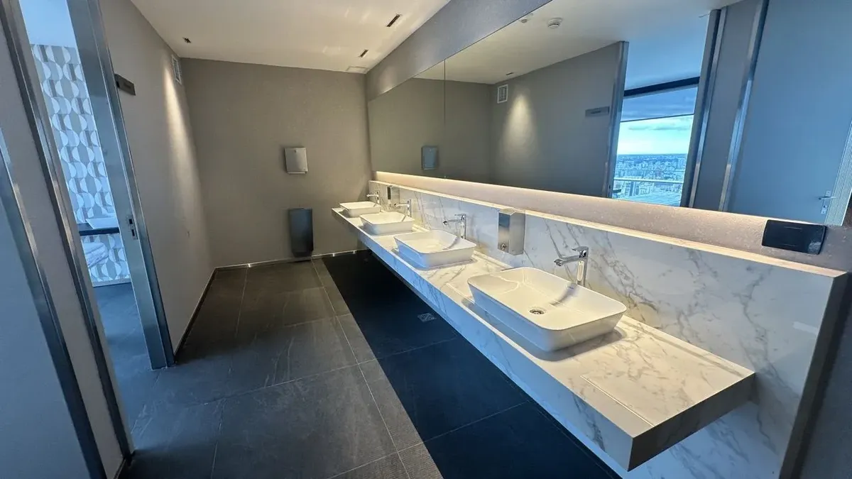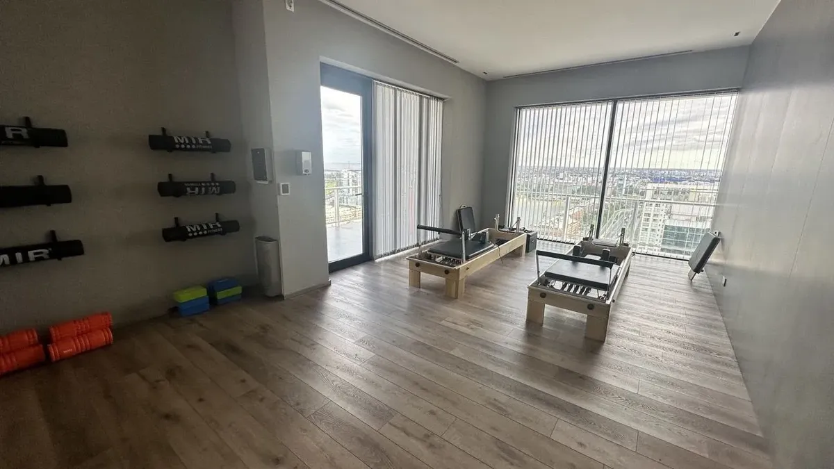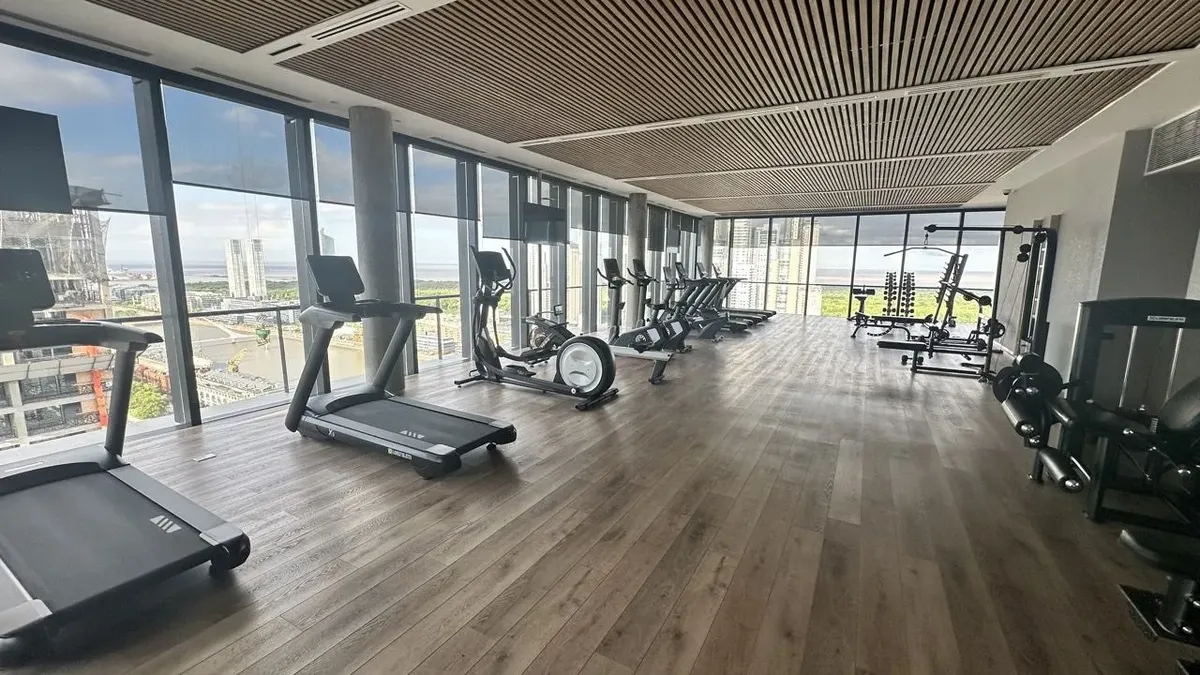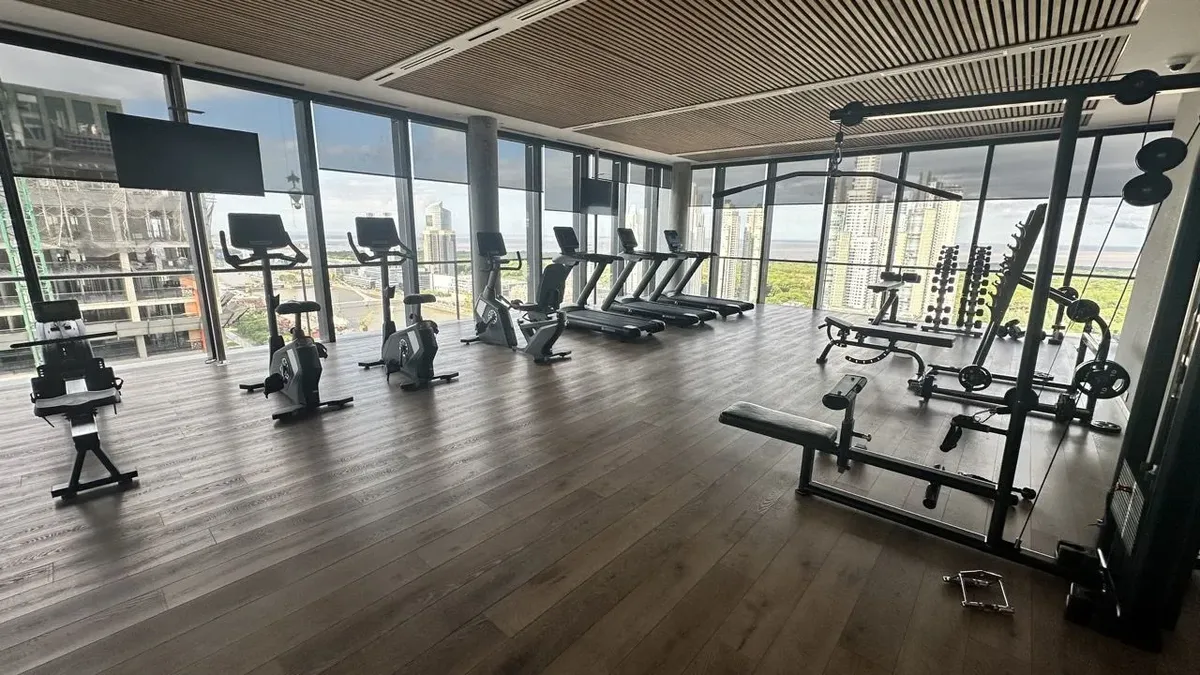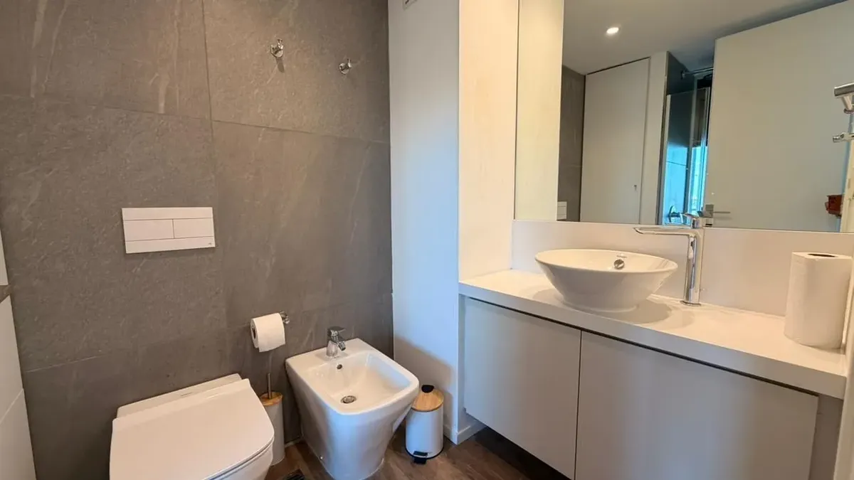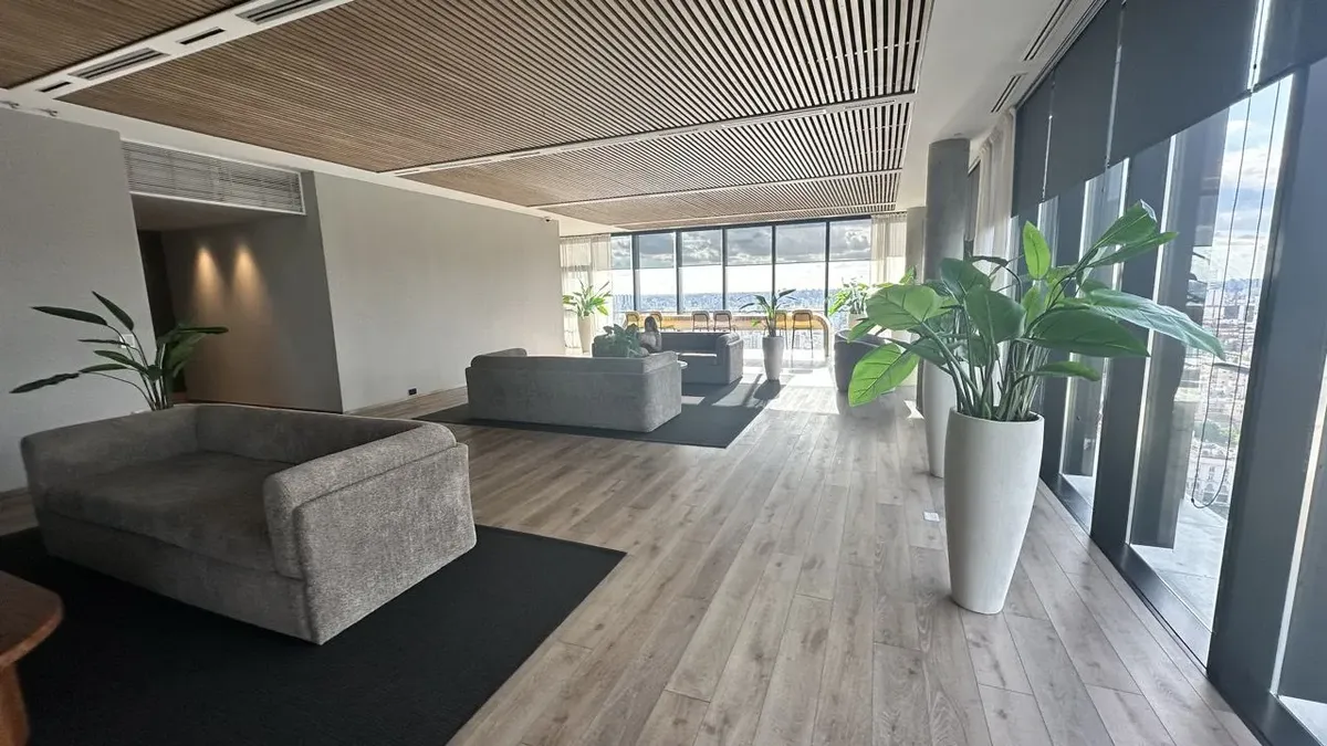 Квартира-студия с мебелью в San Telmo, Quartier del Bajo, площадь и этаж не указаны. Окна на балкон, панорамный вид на город и Puerto Madero. Кухня оборудована анэфе электрическим, холодильником с морозильной камерой (frigobar), микроволновой печью, есть обеденный стол на 4 человека. В ванной с душем установлена мебель для хранения. В студии гардероб, кровать Queen Size, Smart TV, кондиционер холод-горячий и затемняющие шторы. Есть бассейн с подогревом, SUM, зона гриля, тренажёрный зал, сауна, м