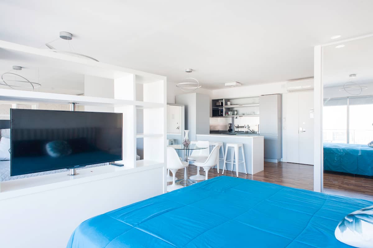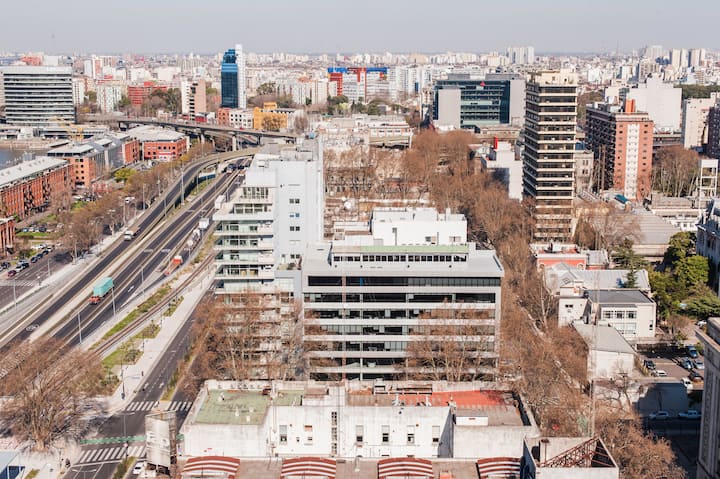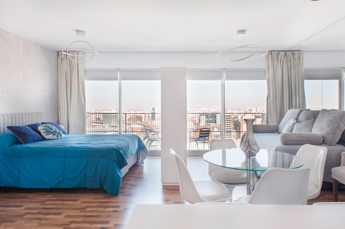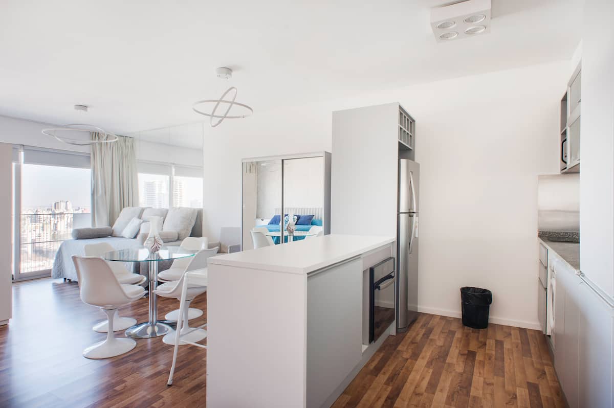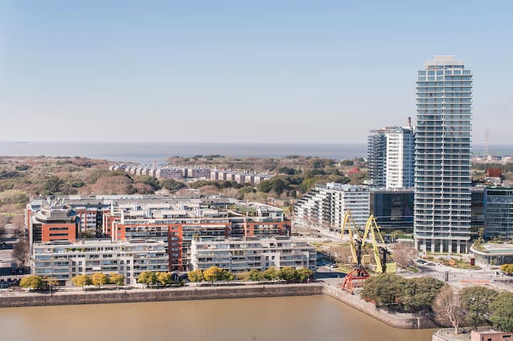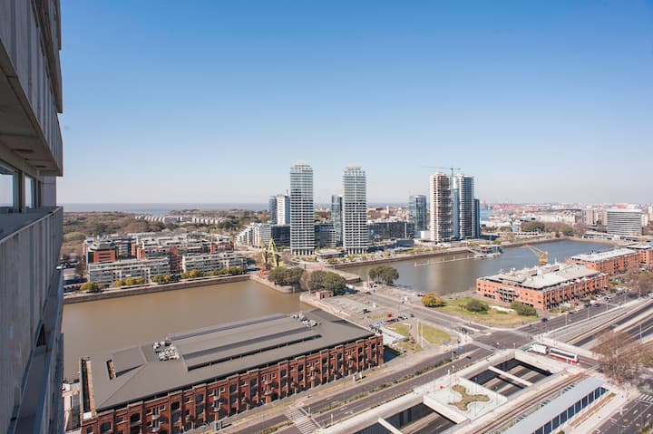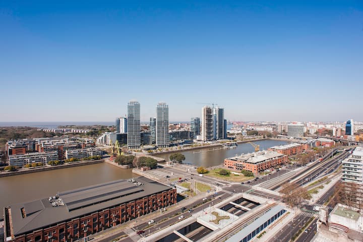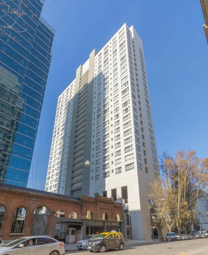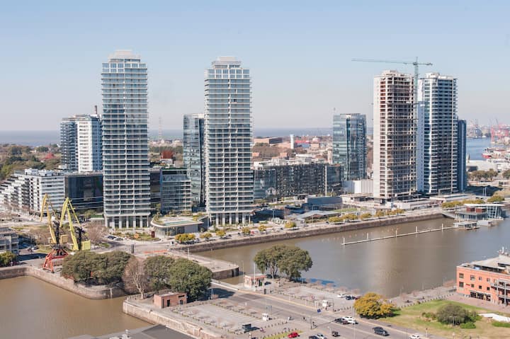Квартира-студия 47 m² в здании Quartier Madero Urban в San Telmo, 19-й этаж, вид на Puerto Madero и город. В студии установлены кровать queen size, диван с 2 односпальными местами, LED-телевизор 43 дюйма, оборудованная кухня с духовкой и электрической плитой, кофеварка, холодильник с морозильной камерой, микроволновая печь и тостер, стиральная машина. В ванной комнате фильтрованная вода. Интернет 500 MB по оптоволоконной сети, парковка организована через систему valet parking; в здании круглосут